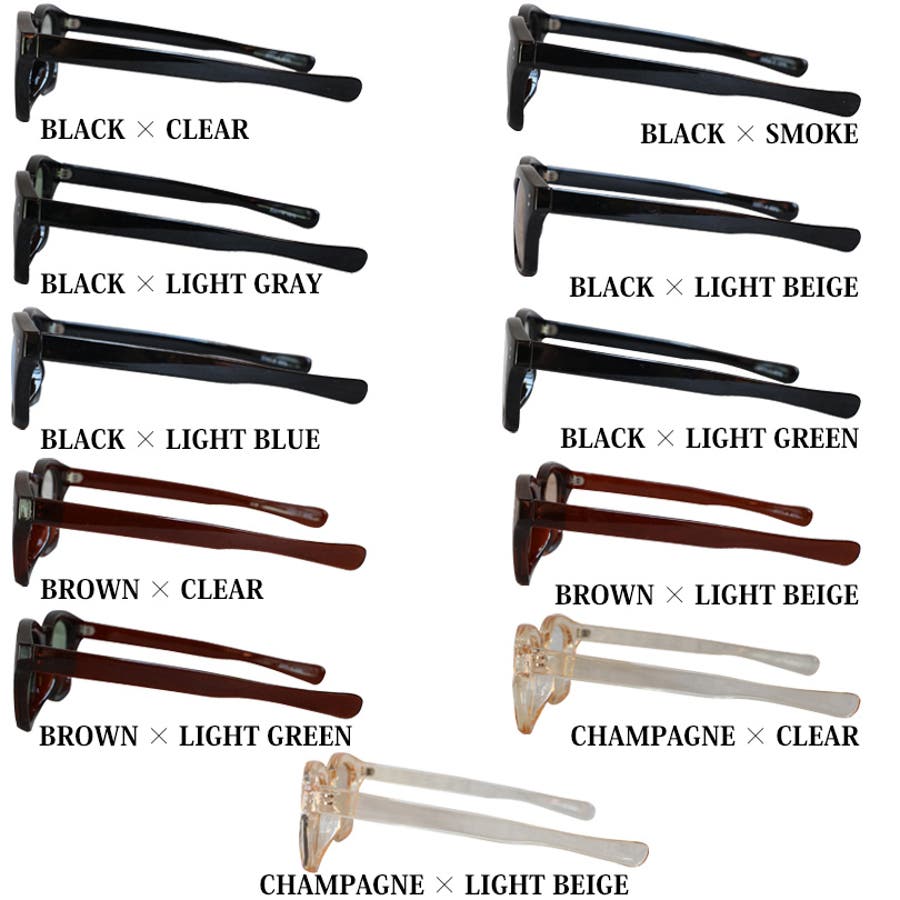 ブラック×クリア ブラック×スモーク ブラック×ライトグレー ブラック×ライトベージュ ブラック×ライトブルー ブラック×ライトグリーン ブラウン×クリア ブラウン×ライトベージュ ブラウン×ライトグリーン シャンパン×クリア シャンパン×ライトベージュ