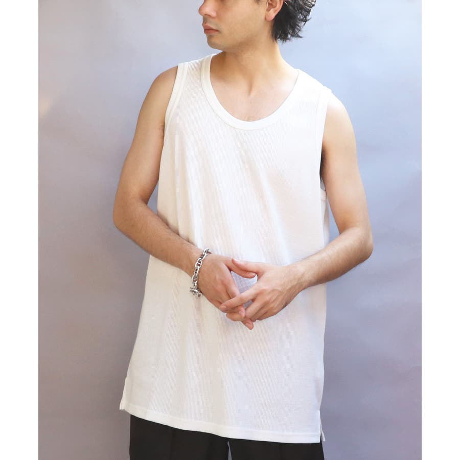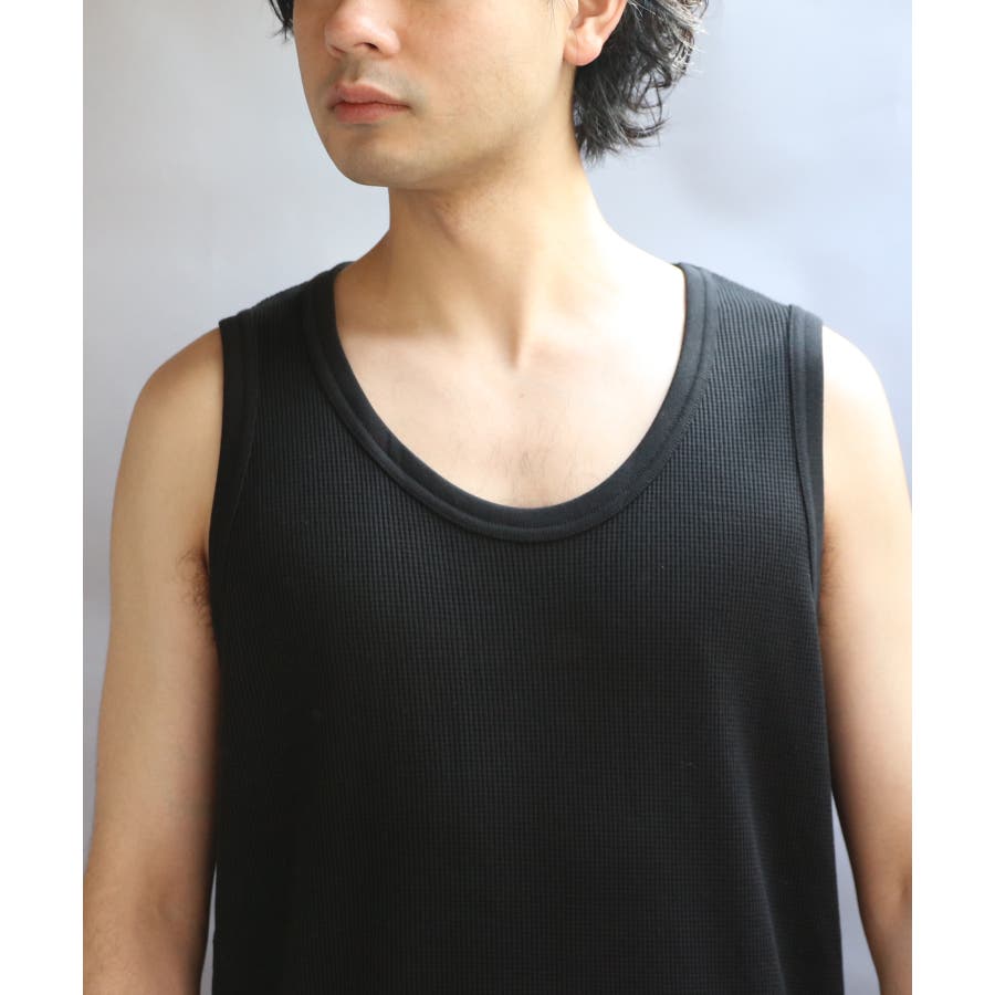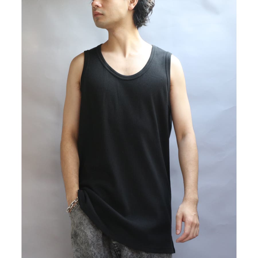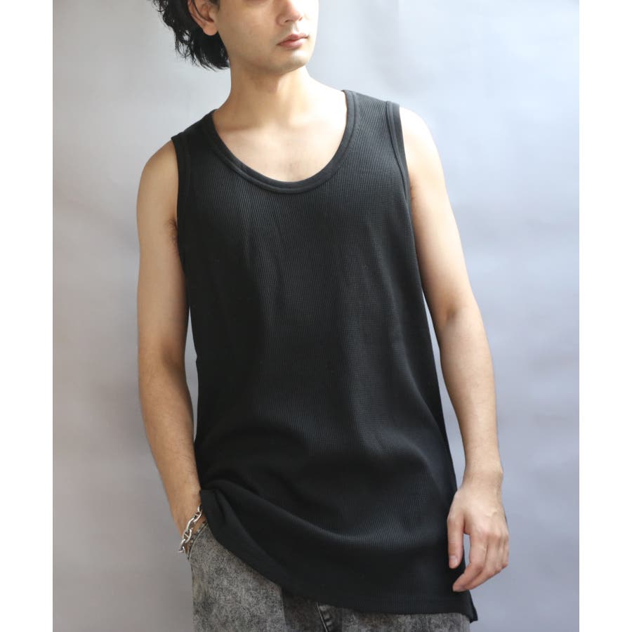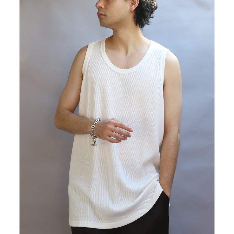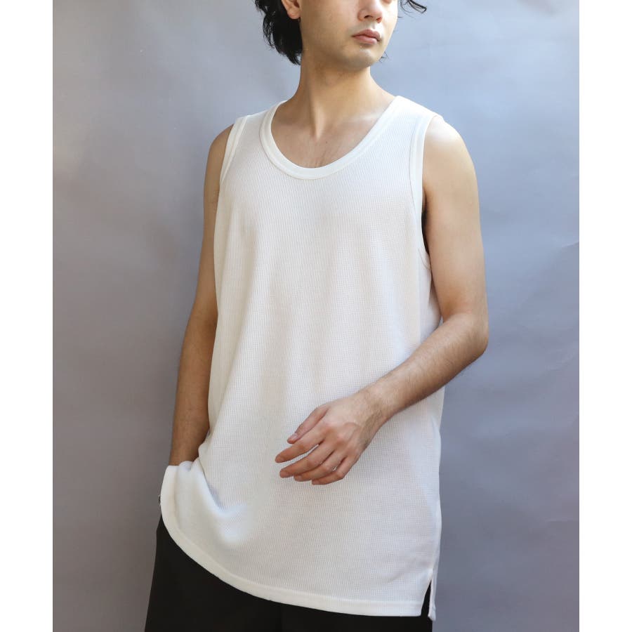 ストリート、アメカジスタイルにおすすめ『ワッフルタンクトップ』のご紹介です。トレンドのレイヤードスタイルに欠かせない無地ノースリーブが登場。無駄なデザインのないシンプルで肌触りの良い上質なコットン混紡素材で毎日のコーディネートに重宝します。生地表面には細かい凹凸のあるワッフル生地を採用。ルーズなシルエットで、オーバーサイズで着ていただけます。Tシャツ、ネルシャツとの重ね着として、またスウェットのインナーなど様々なスタイルに対応します。重ね着の下から裾を見せ、アクセントのあるレイヤードスタイルを楽しみたい方にオススメ。またレイヤードだけでなく、シャツのインナーや一枚着のような裾を見せないスタイルにも合わせやすく、幅広いシチュエーションで使えます。