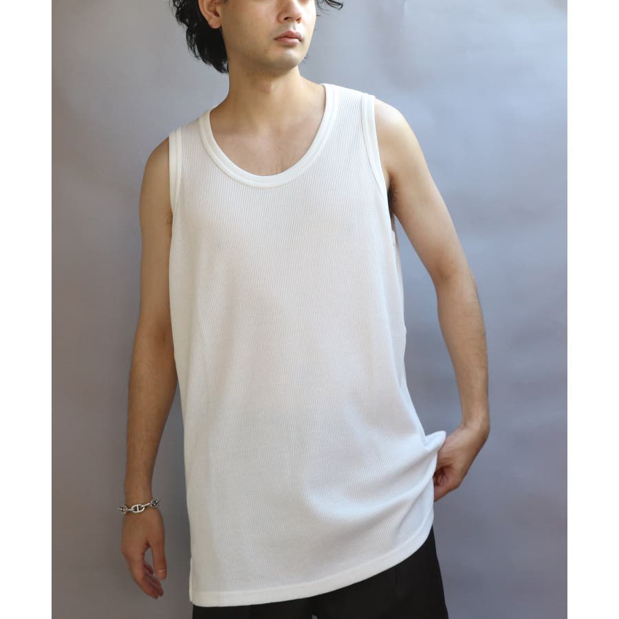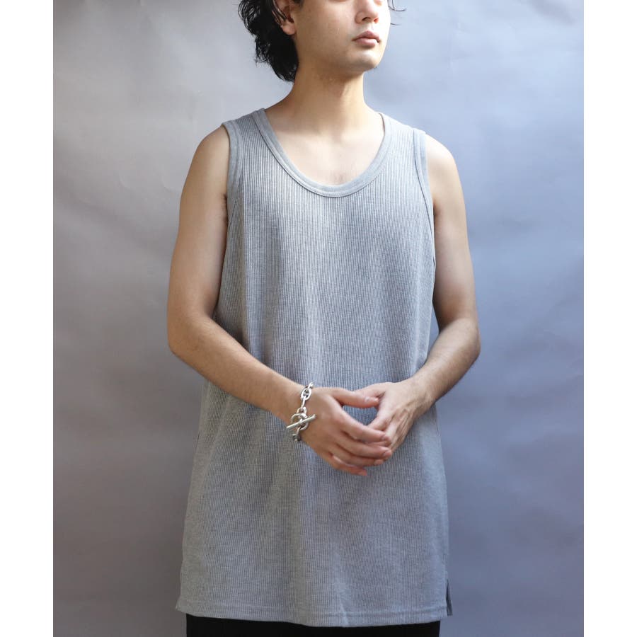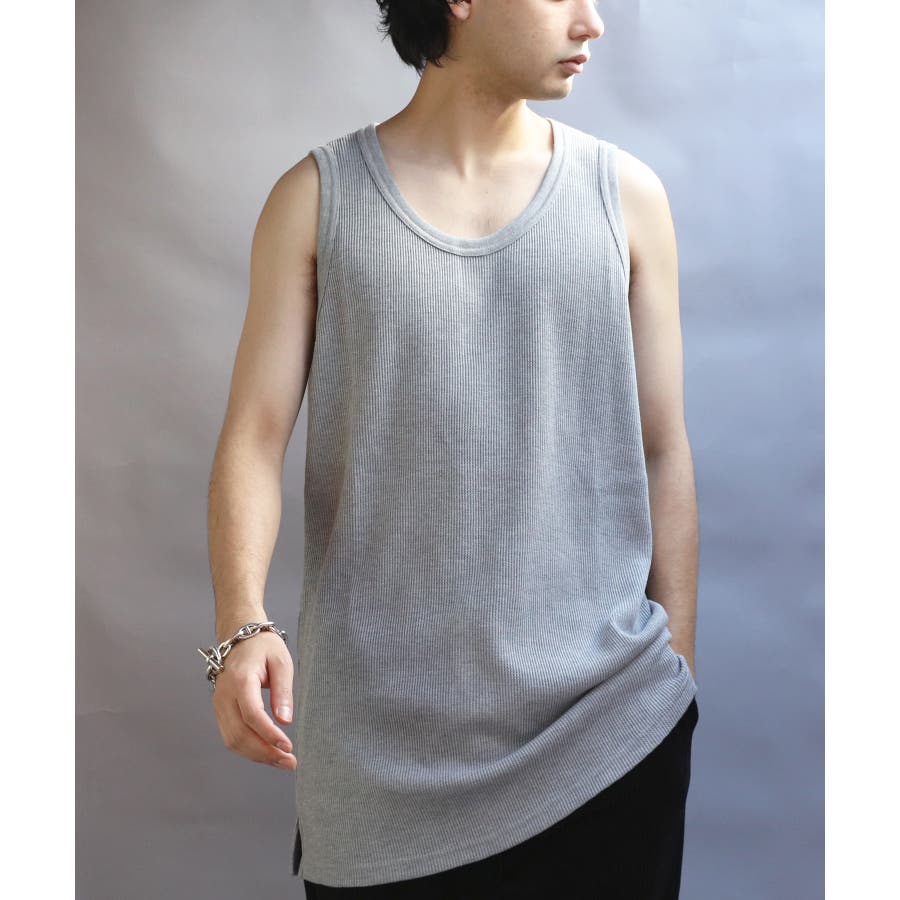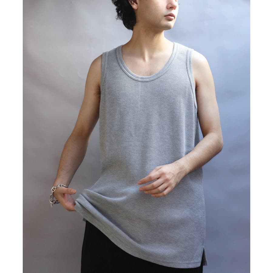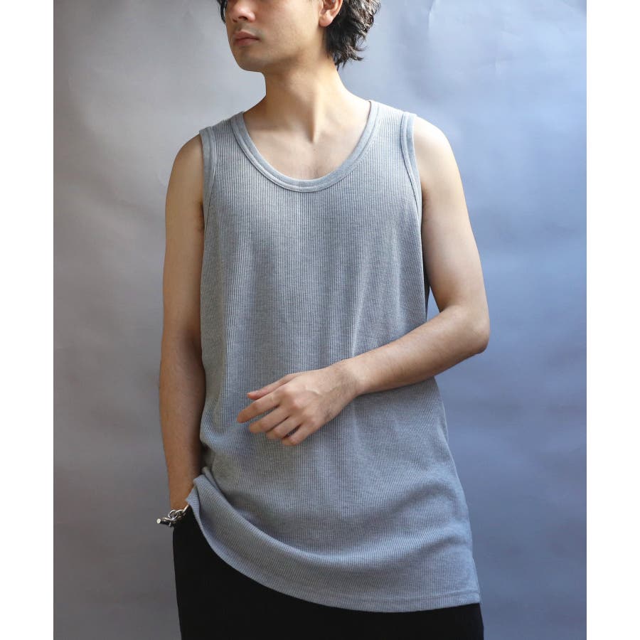 ストリート、アメカジスタイルにおすすめ『ワッフルタンクトップ』のご紹介です。トレンドのレイヤードスタイルに欠かせない無地ノースリーブが登場。無駄なデザインのないシンプルで肌触りの良い上質なコットン混紡素材で毎日のコーディネートに重宝します。生地表面には細かい凹凸のあるワッフル生地を採用。ルーズなシルエットで、オーバーサイズで着ていただけます。Tシャツ、ネルシャツとの重ね着として、またスウェットのインナーなど様々なスタイルに対応します。重ね着の下から裾を見せ、アクセントのあるレイヤードスタイルを楽しみたい方にオススメ。またレイヤードだけでなく、シャツのインナーや一枚着のような裾を見せないスタイルにも合わせやすく、幅広いシチュエーションで使えます。
