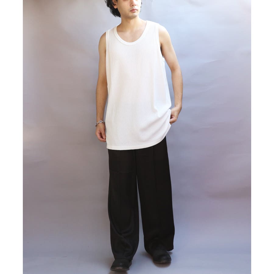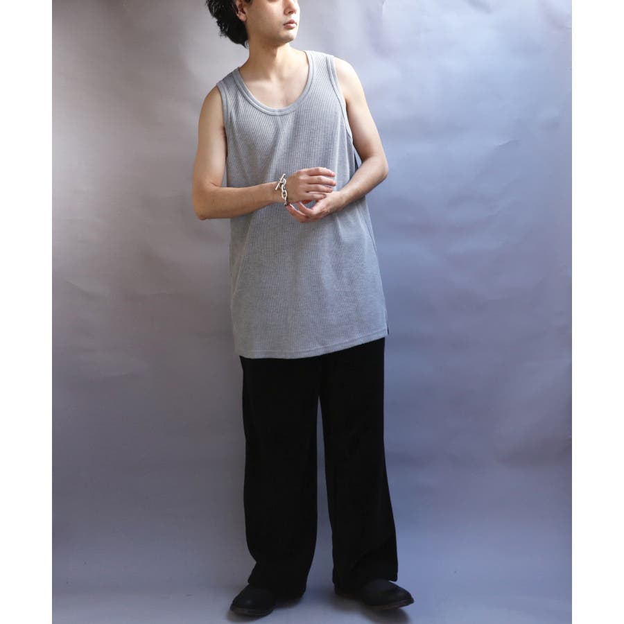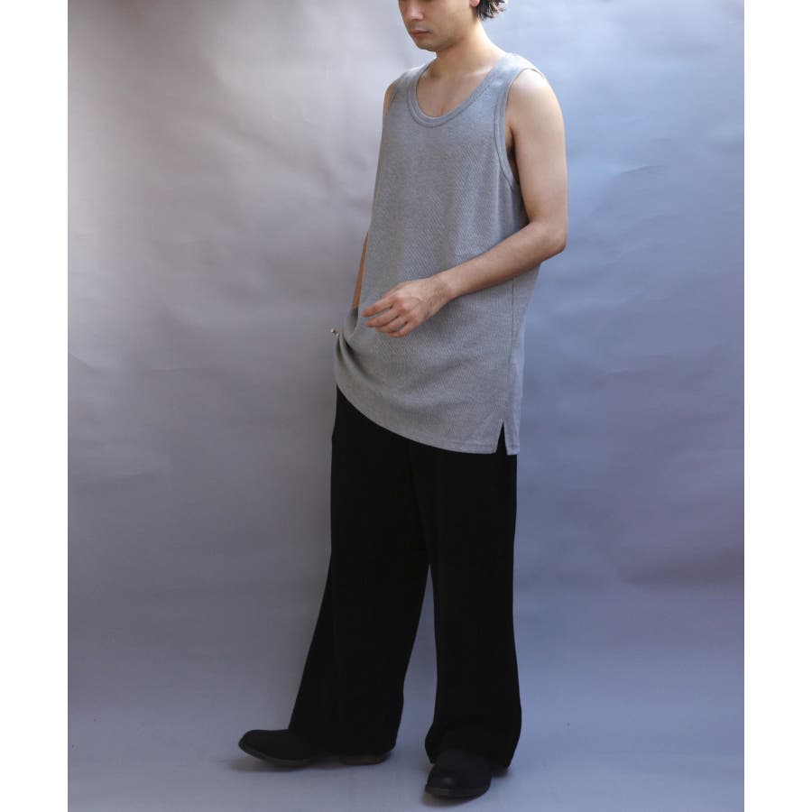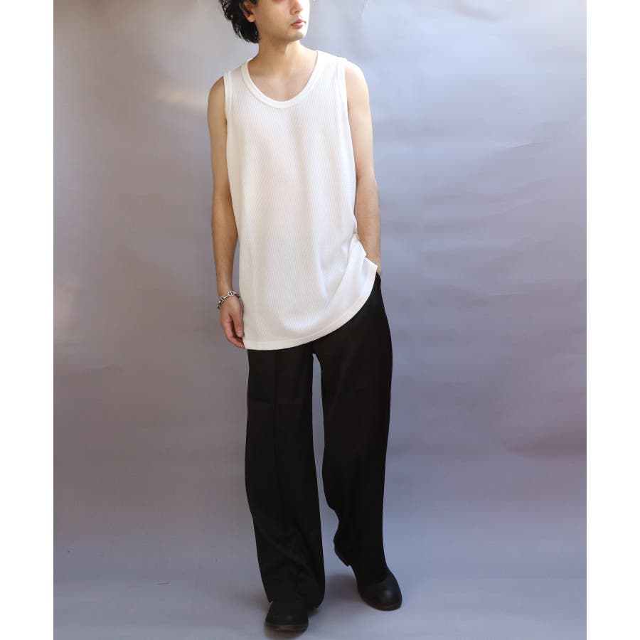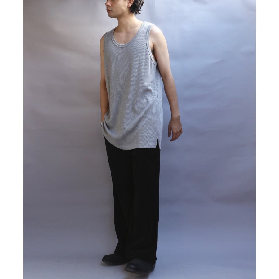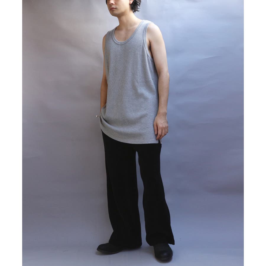 ストリート、アメカジスタイルにおすすめ『ワッフルタンクトップ』のご紹介です。トレンドのレイヤードスタイルに欠かせない無地ノースリーブが登場。無駄なデザインのないシンプルで肌触りの良い上質なコットン混紡素材で毎日のコーディネートに重宝します。生地表面には細かい凹凸のあるワッフル生地を採用。ルーズなシルエットで、オーバーサイズで着ていただけます。Tシャツ、ネルシャツとの重ね着として、またスウェットのインナーなど様々なスタイルに対応します。重ね着の下から裾を見せ、アクセントのあるレイヤードスタイルを楽しみたい方にオススメ。またレイヤードだけでなく、シャツのインナーや一枚着のような裾を見せないスタイルにも合わせやすく、幅広いシチュエーションで使えます。