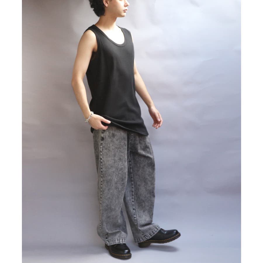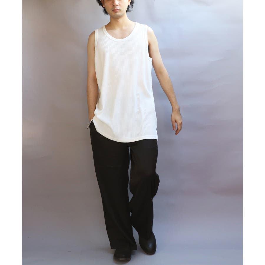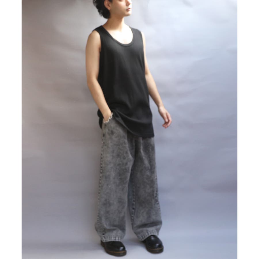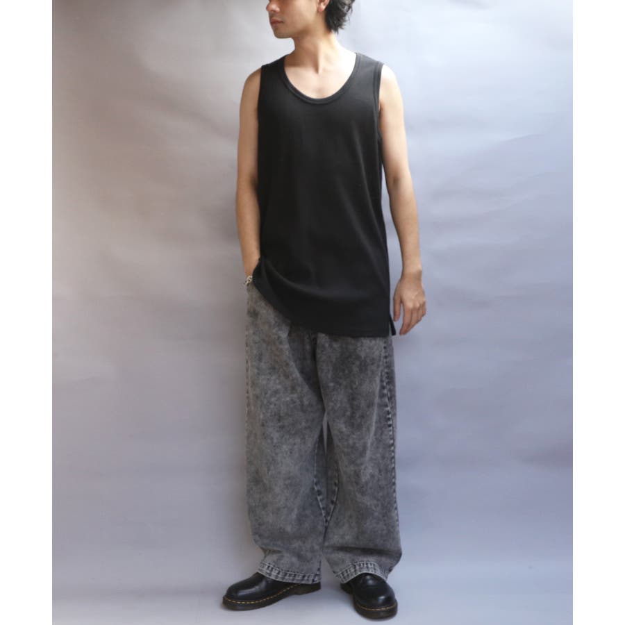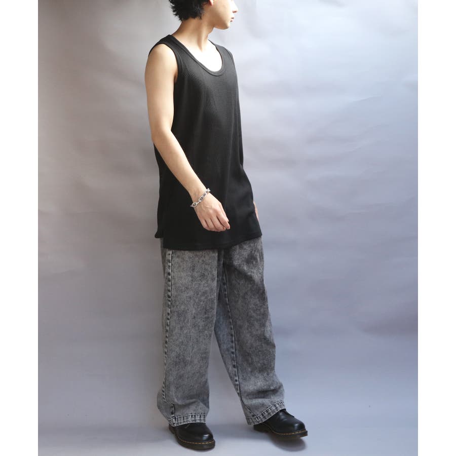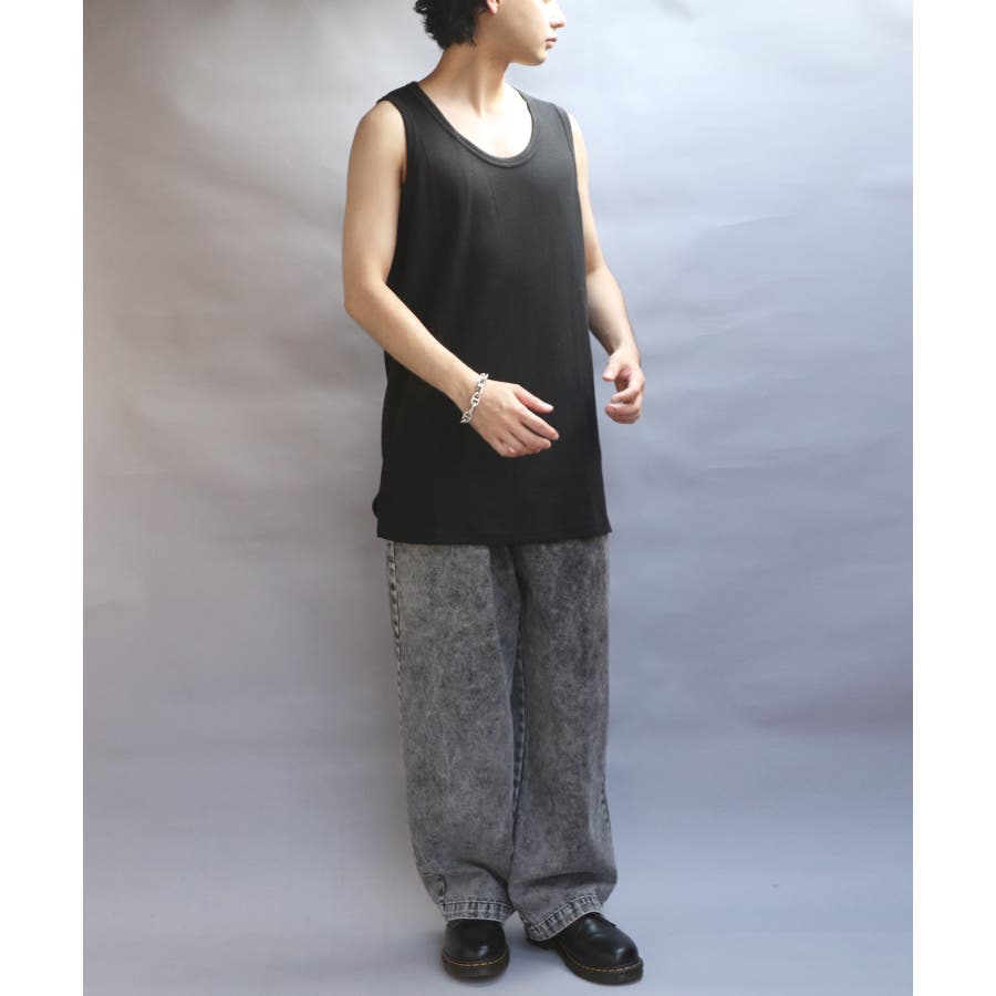 ストリート、アメカジスタイルにおすすめ『ワッフルタンクトップ』のご紹介です。トレンドのレイヤードスタイルに欠かせない無地ノースリーブが登場。無駄なデザインのないシンプルで肌触りの良い上質なコットン混紡素材で毎日のコーディネートに重宝します。生地表面には細かい凹凸のあるワッフル生地を採用。ルーズなシルエットで、オーバーサイズで着ていただけます。Tシャツ、ネルシャツとの重ね着として、またスウェットのインナーなど様々なスタイルに対応します。重ね着の下から裾を見せ、アクセントのあるレイヤードスタイルを楽しみたい方にオススメ。またレイヤードだけでなく、シャツのインナーや一枚着のような裾を見せないスタイルにも合わせやすく、幅広いシチュエーションで使えます。