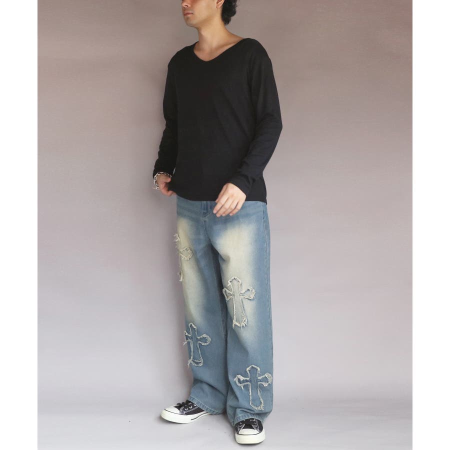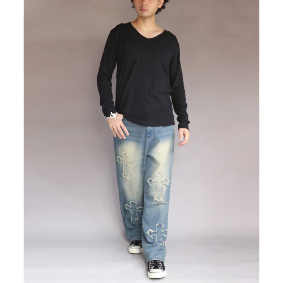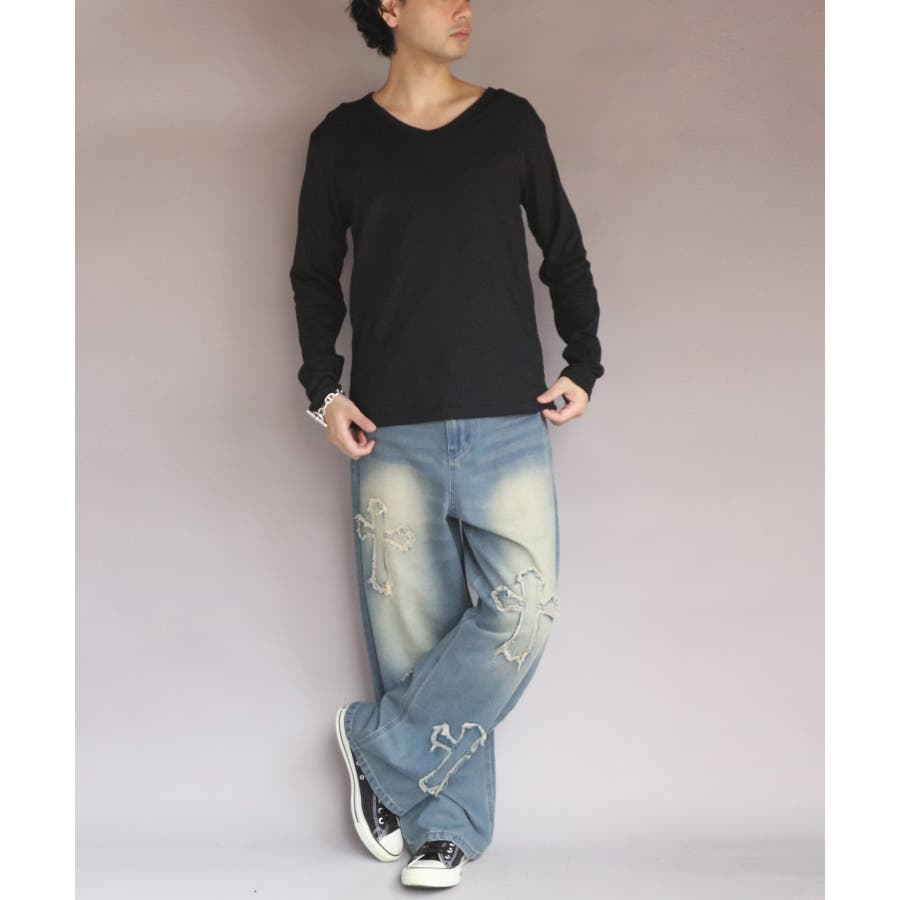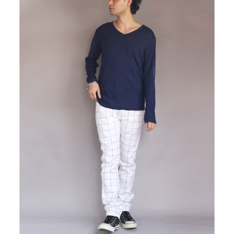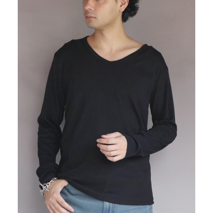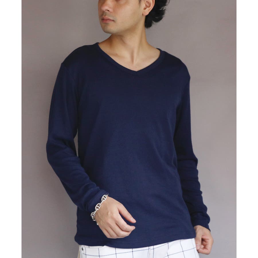 長袖Tシャツ Vネック メンズ ロングTシャツ ロンT インナー