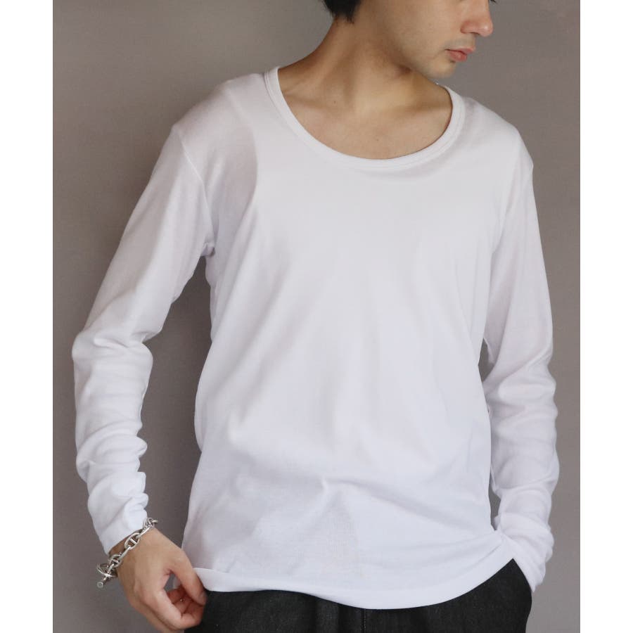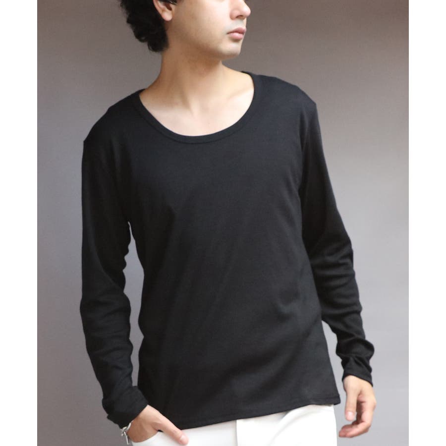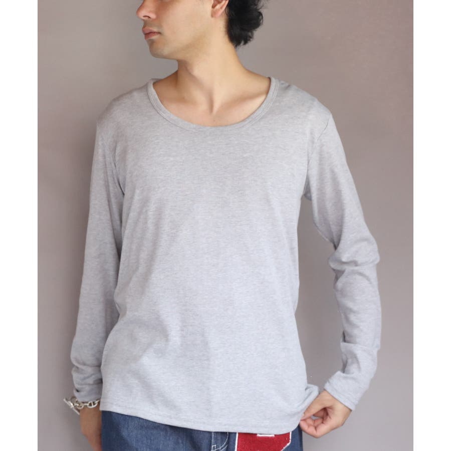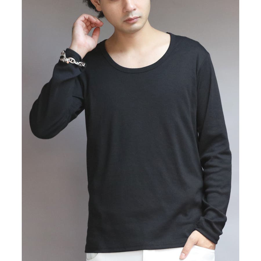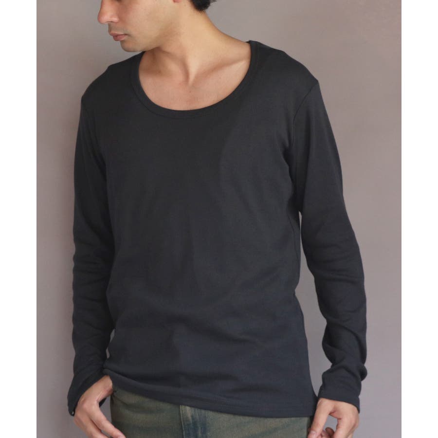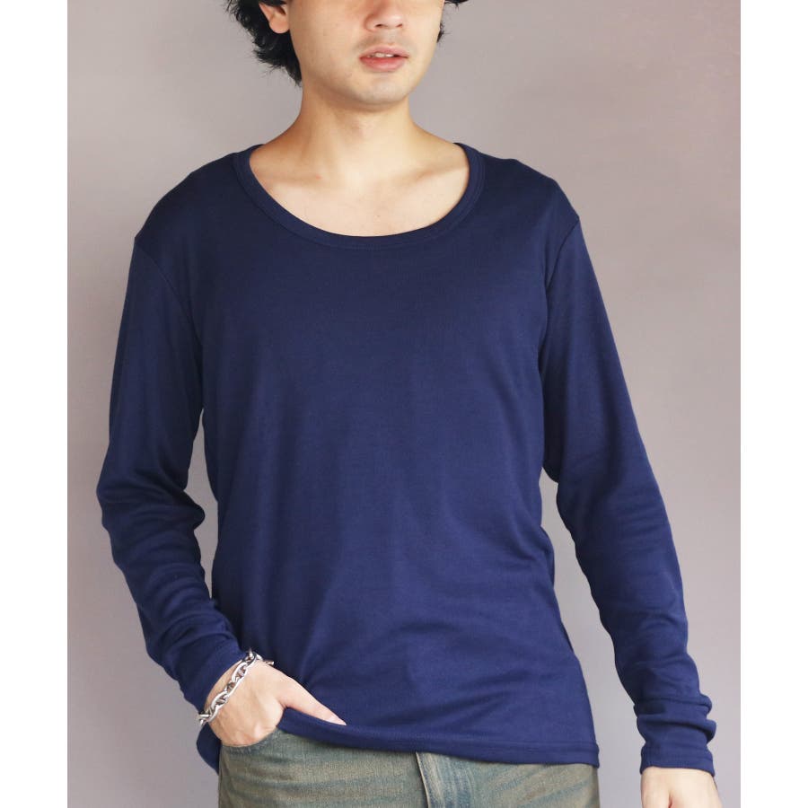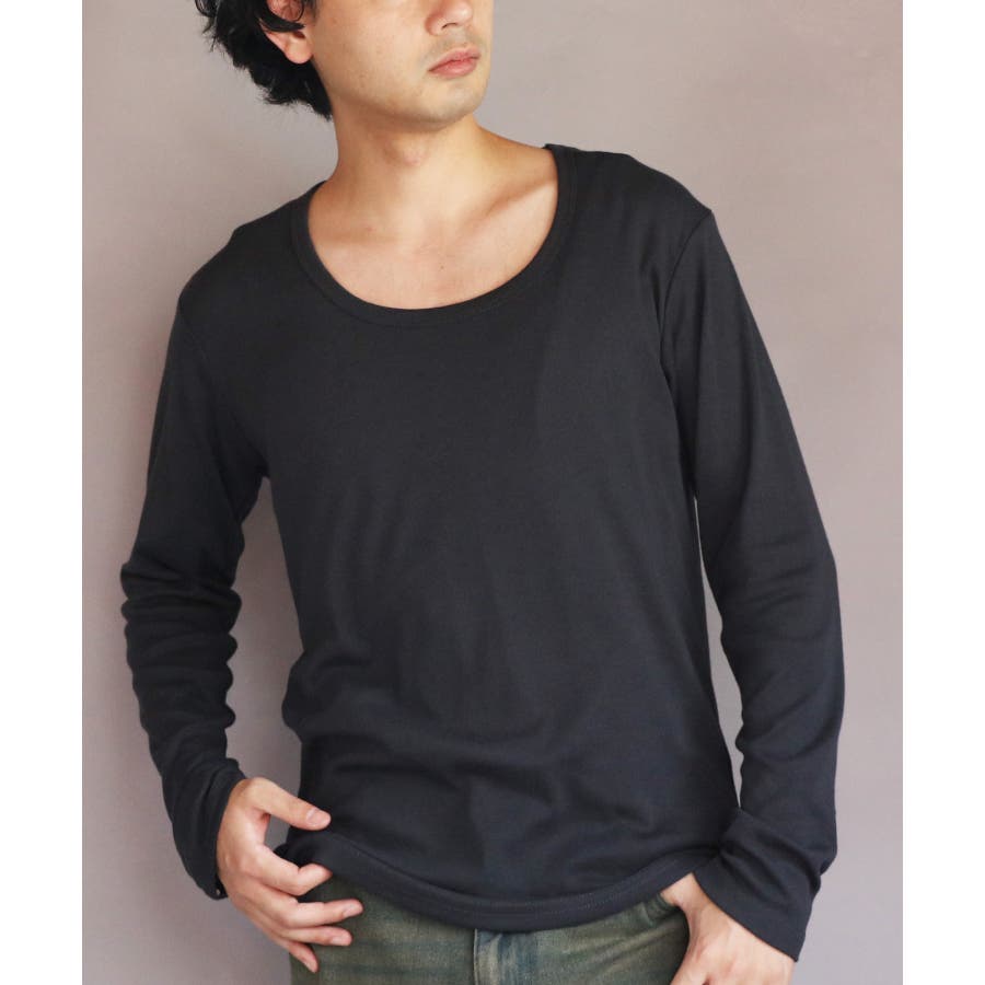 Uネック長袖Tシャツ メンズ ロングTシャツ ロンT インナー