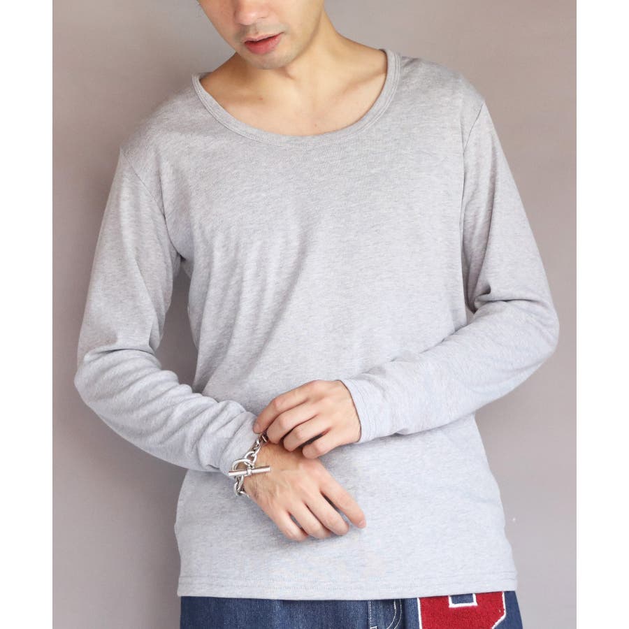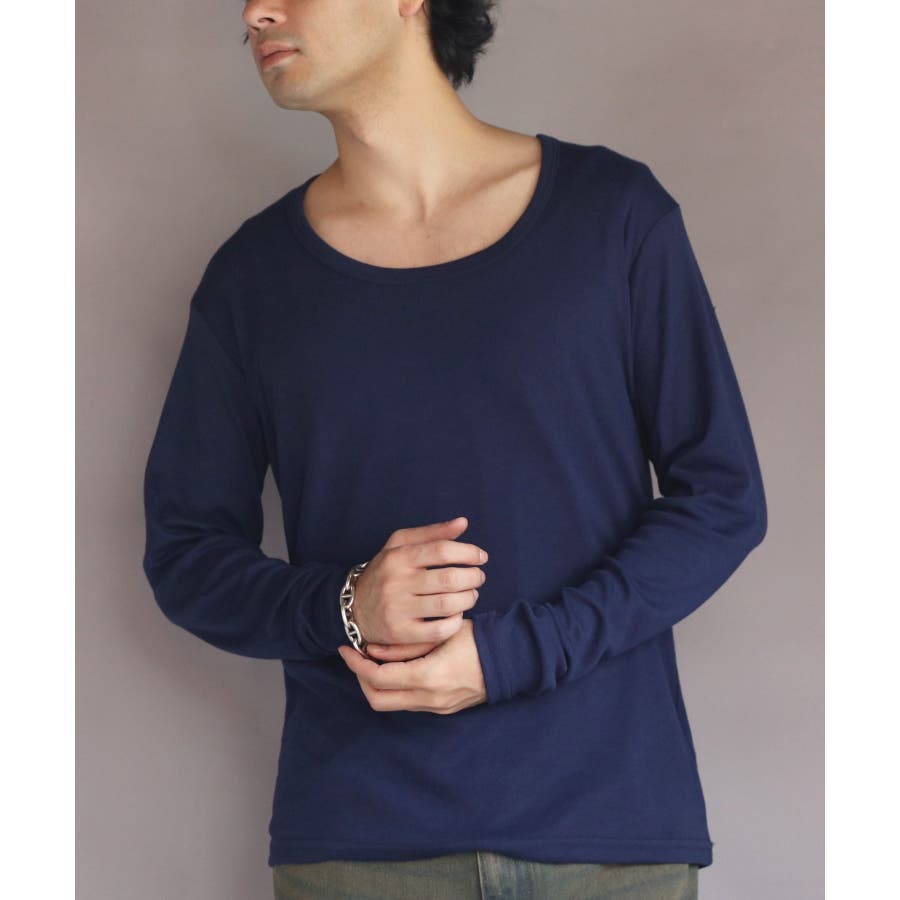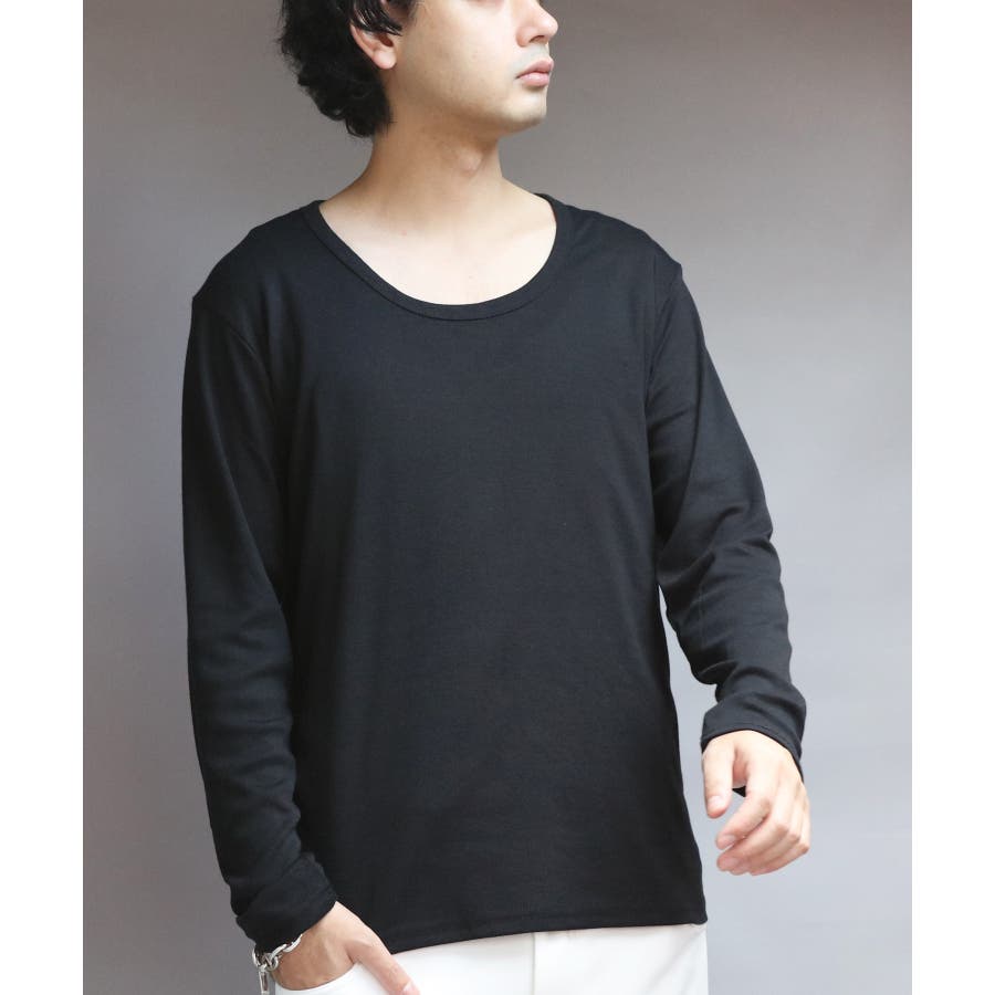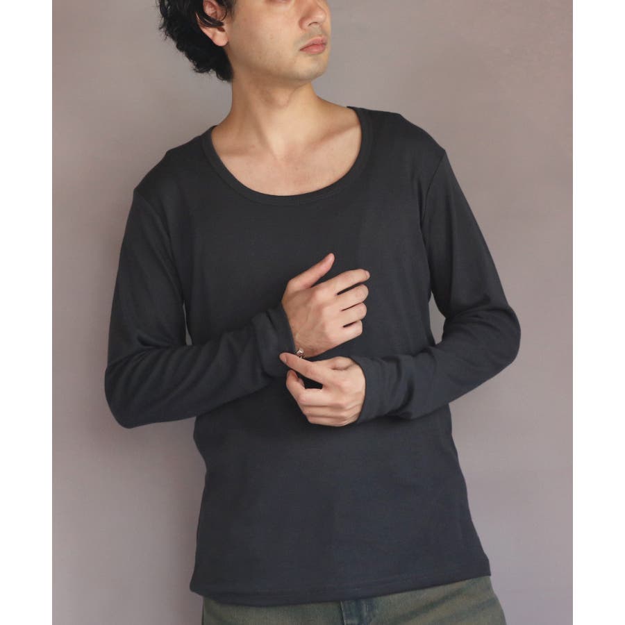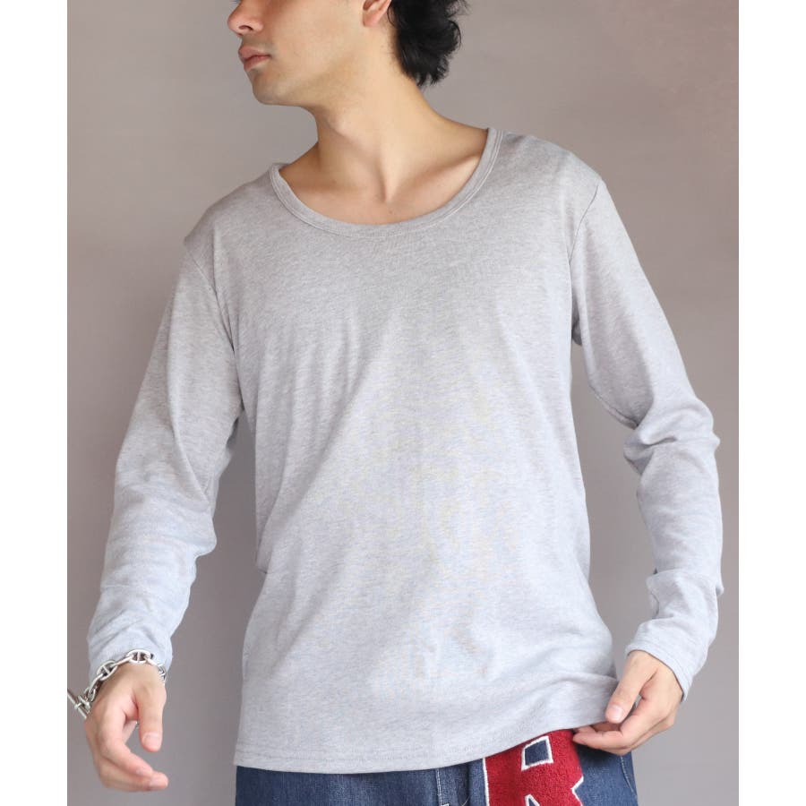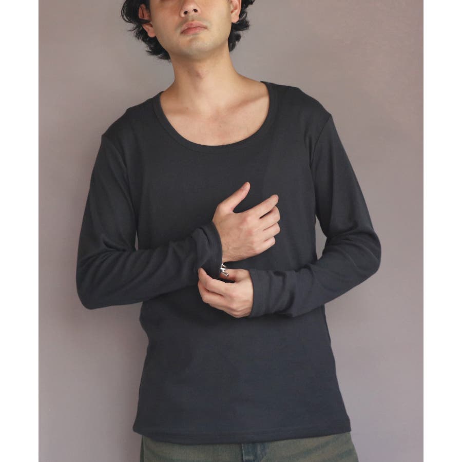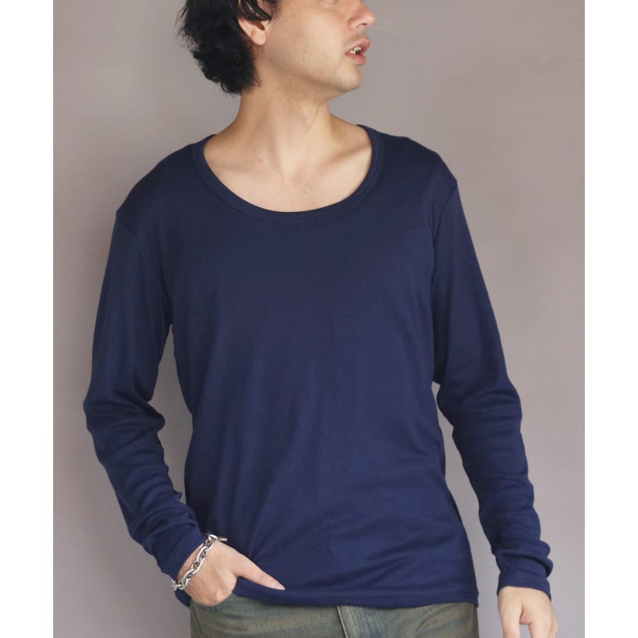 Uネック長袖Tシャツ メンズ ロングTシャツ ロンT インナー