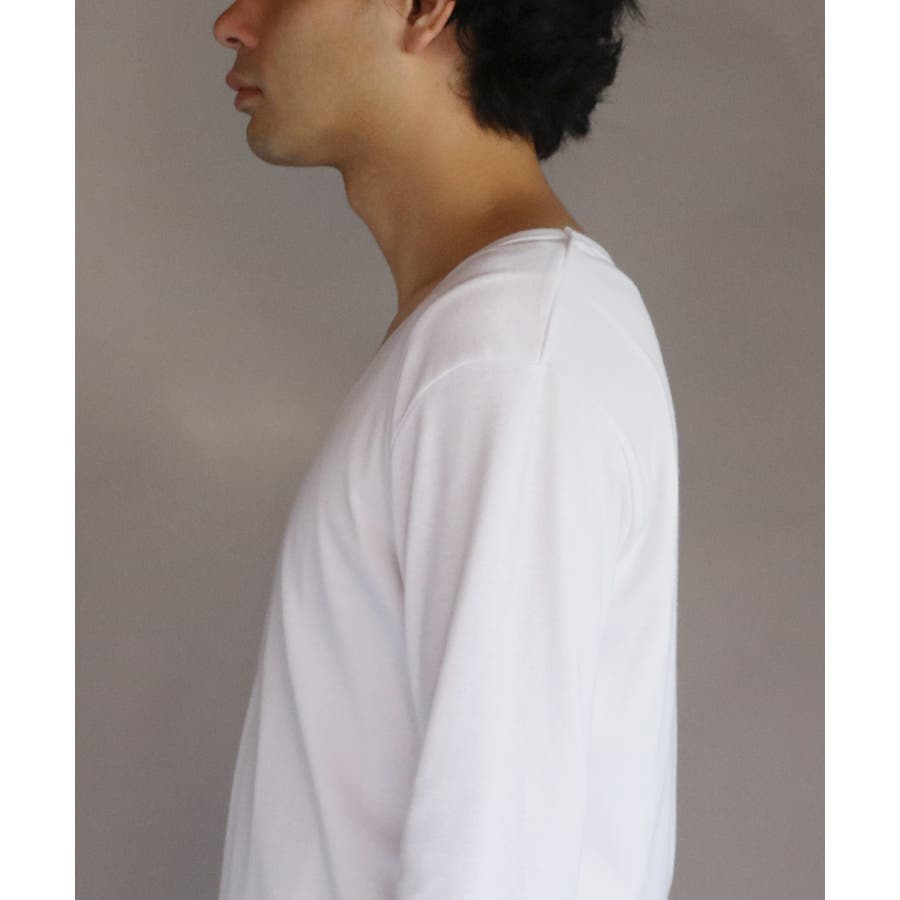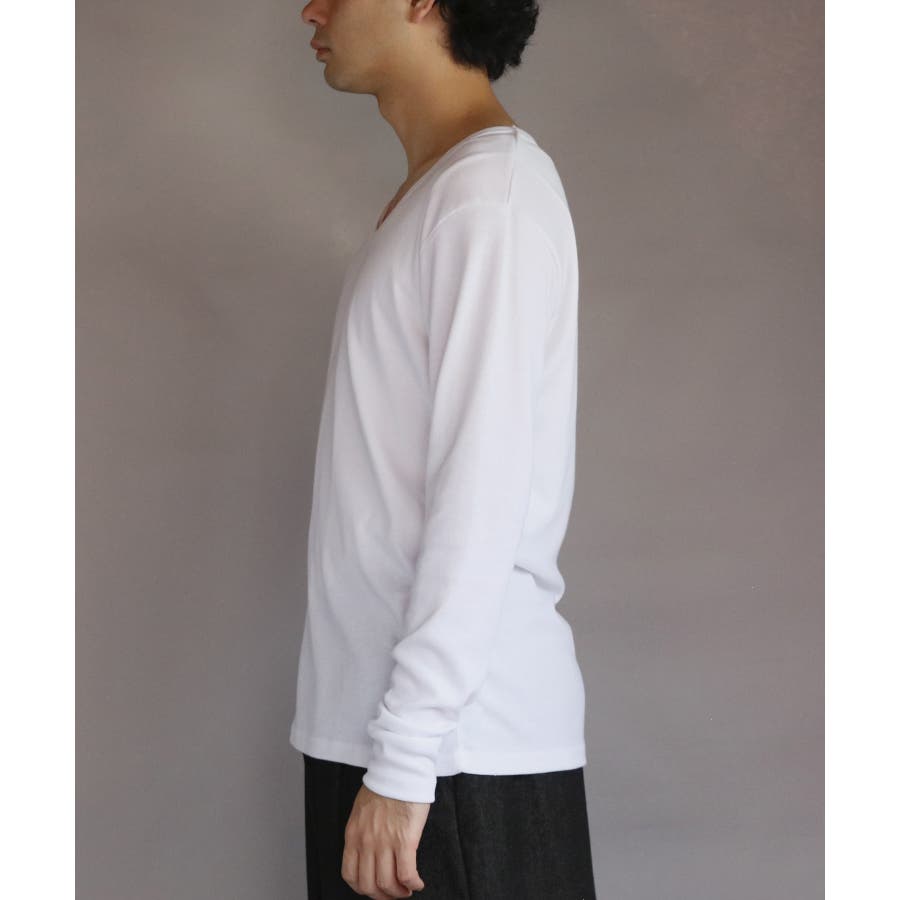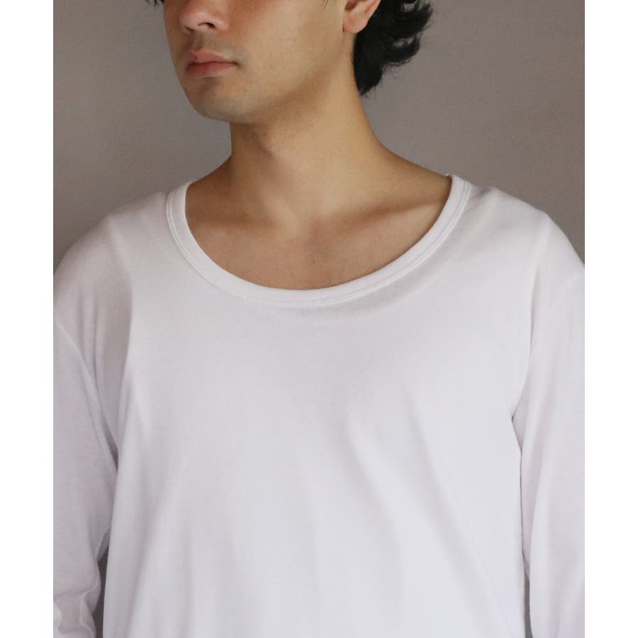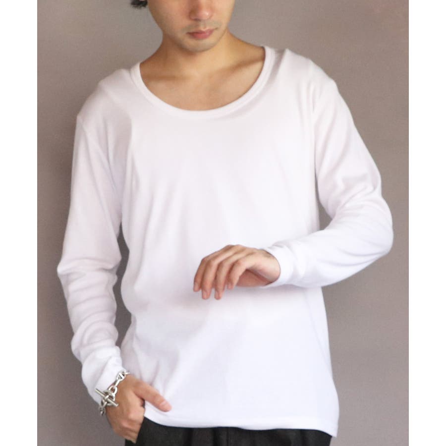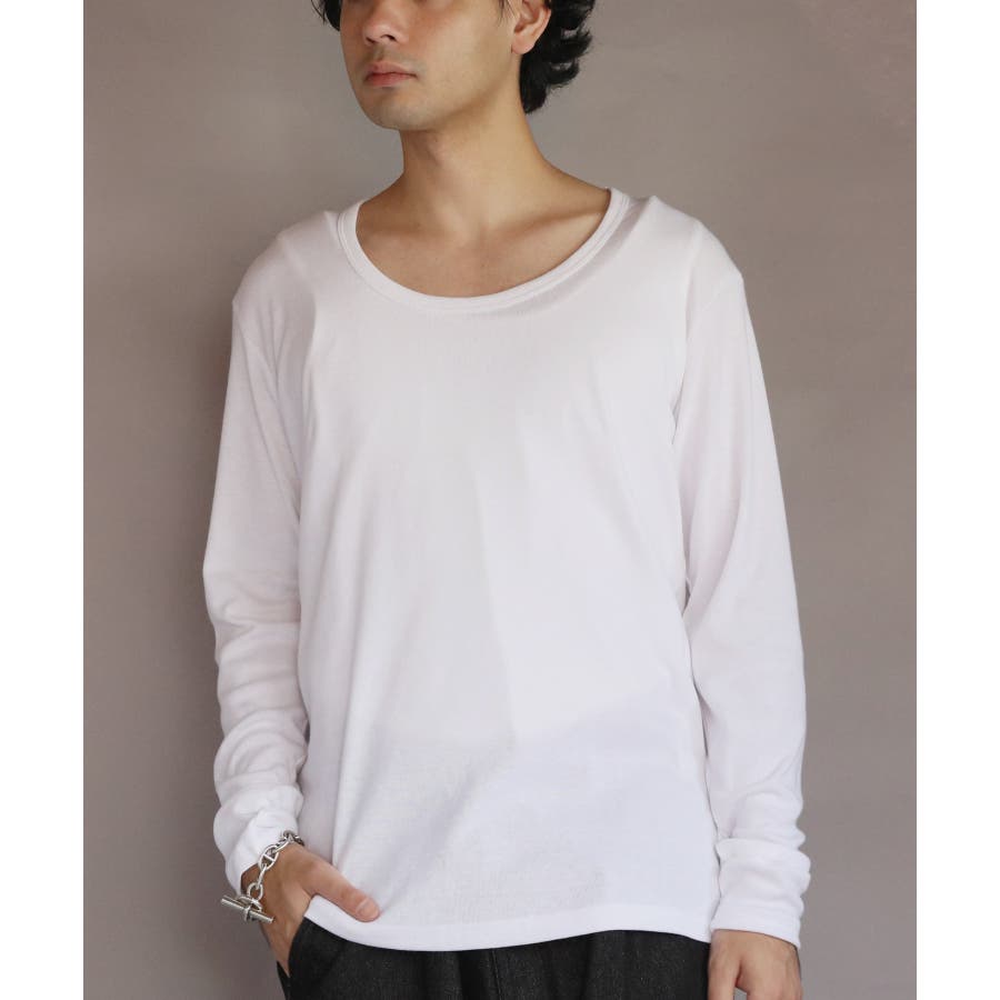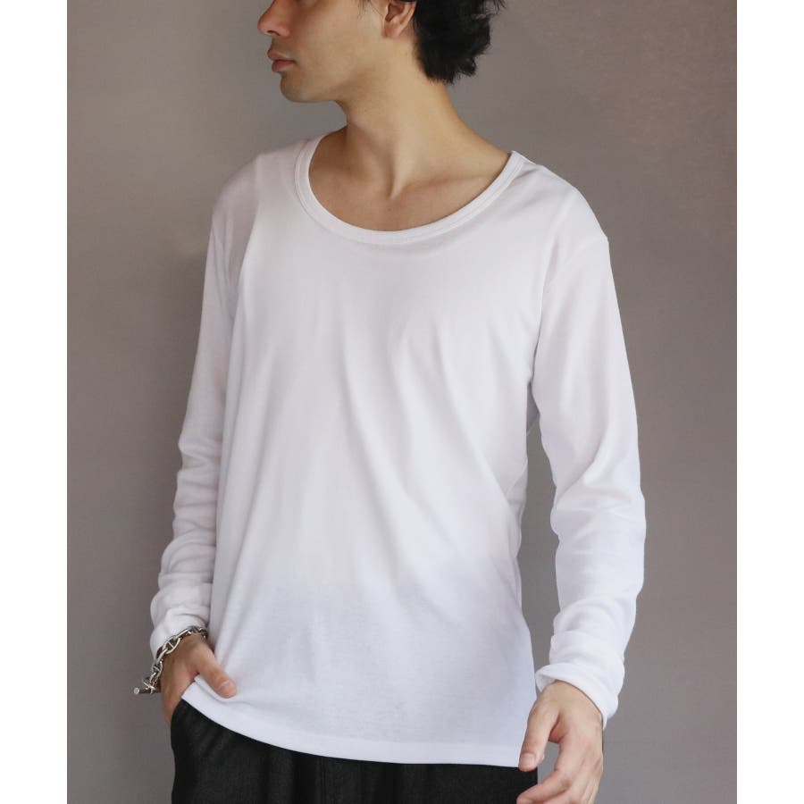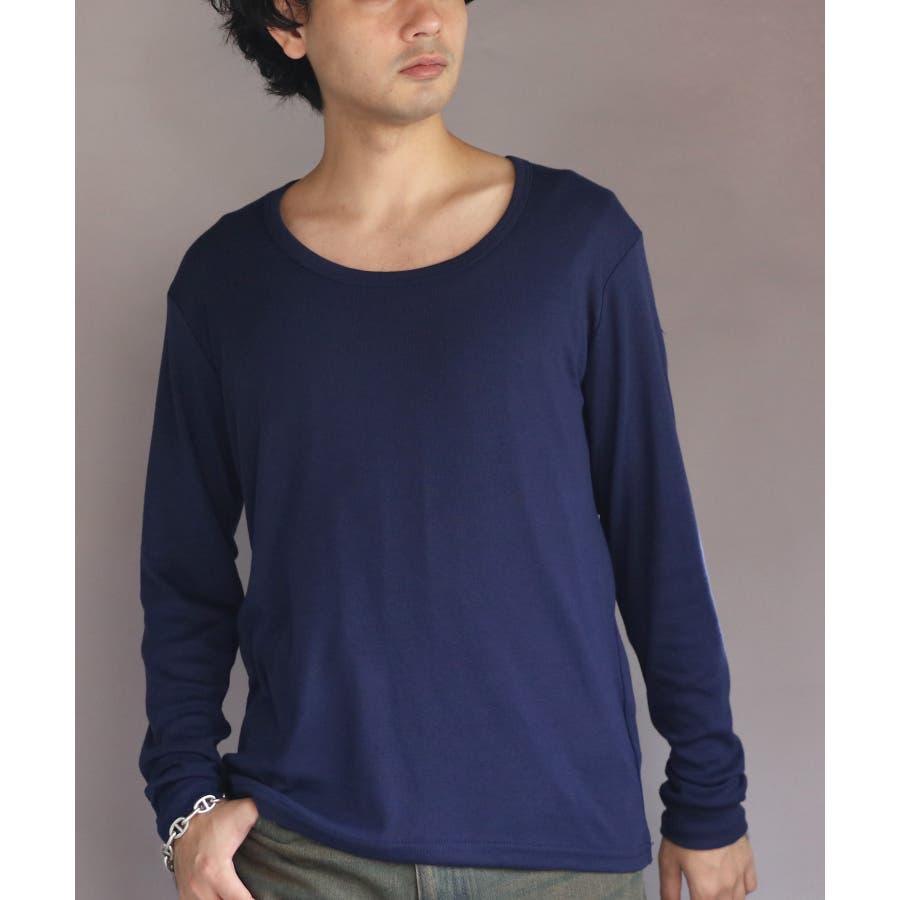 Uネック長袖Tシャツ メンズ ロングTシャツ ロンT インナー