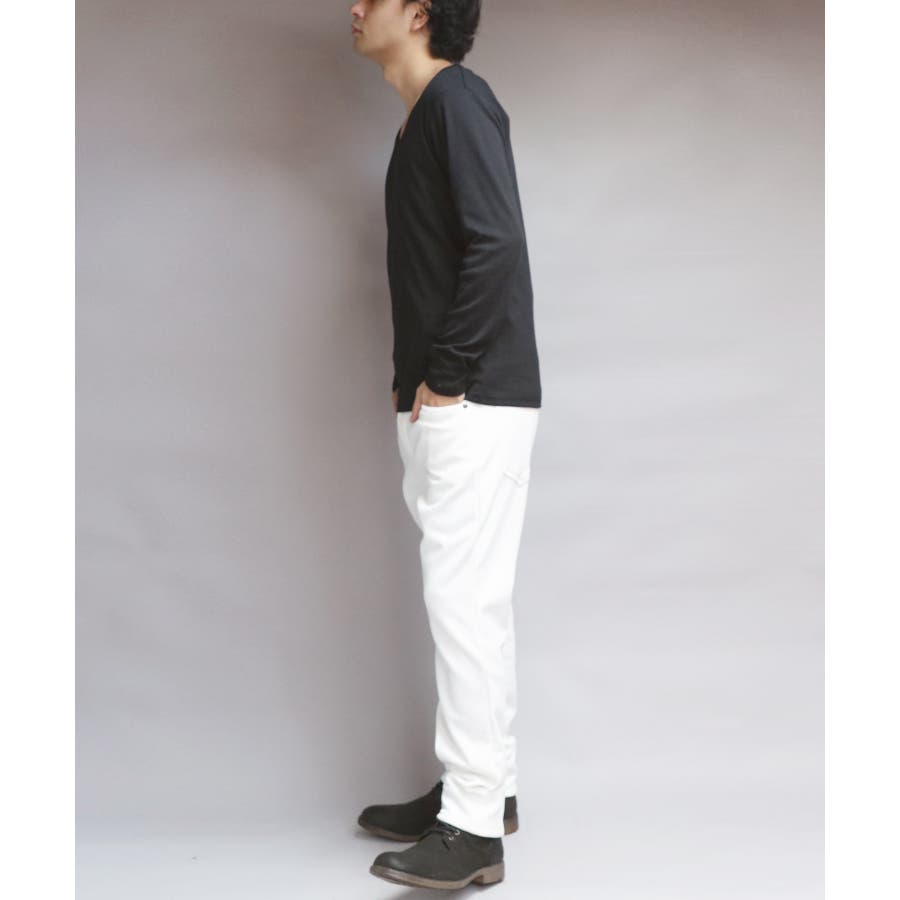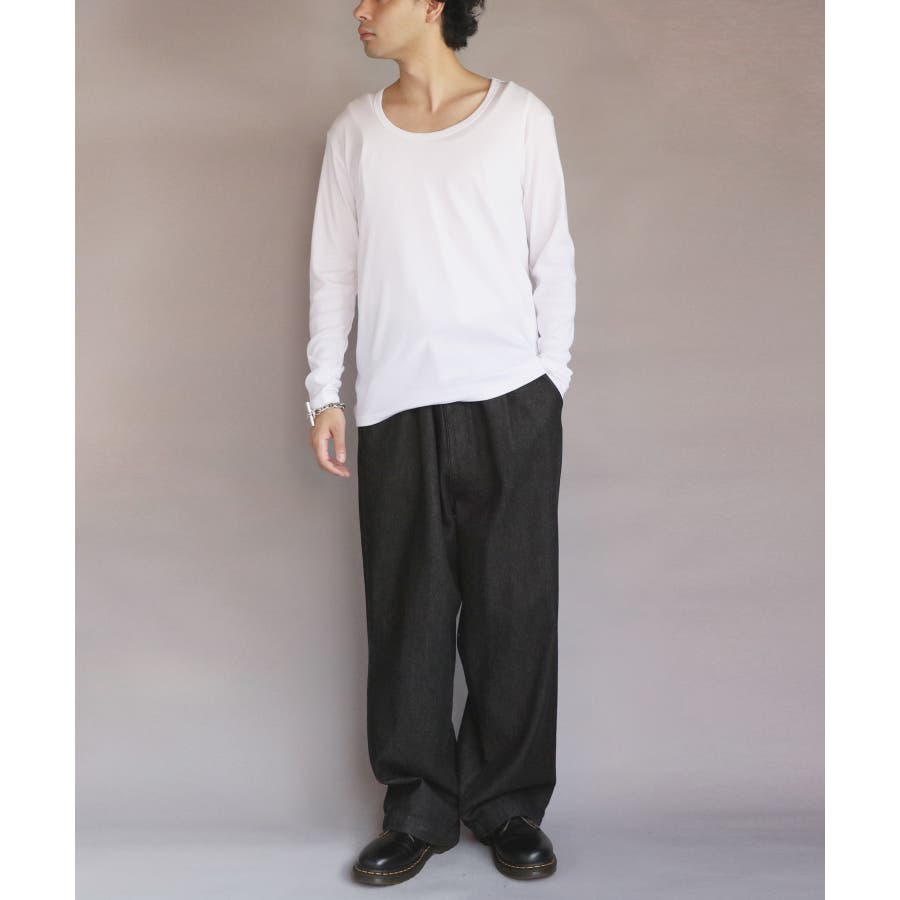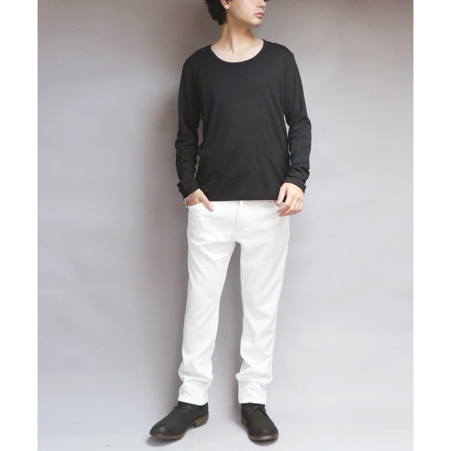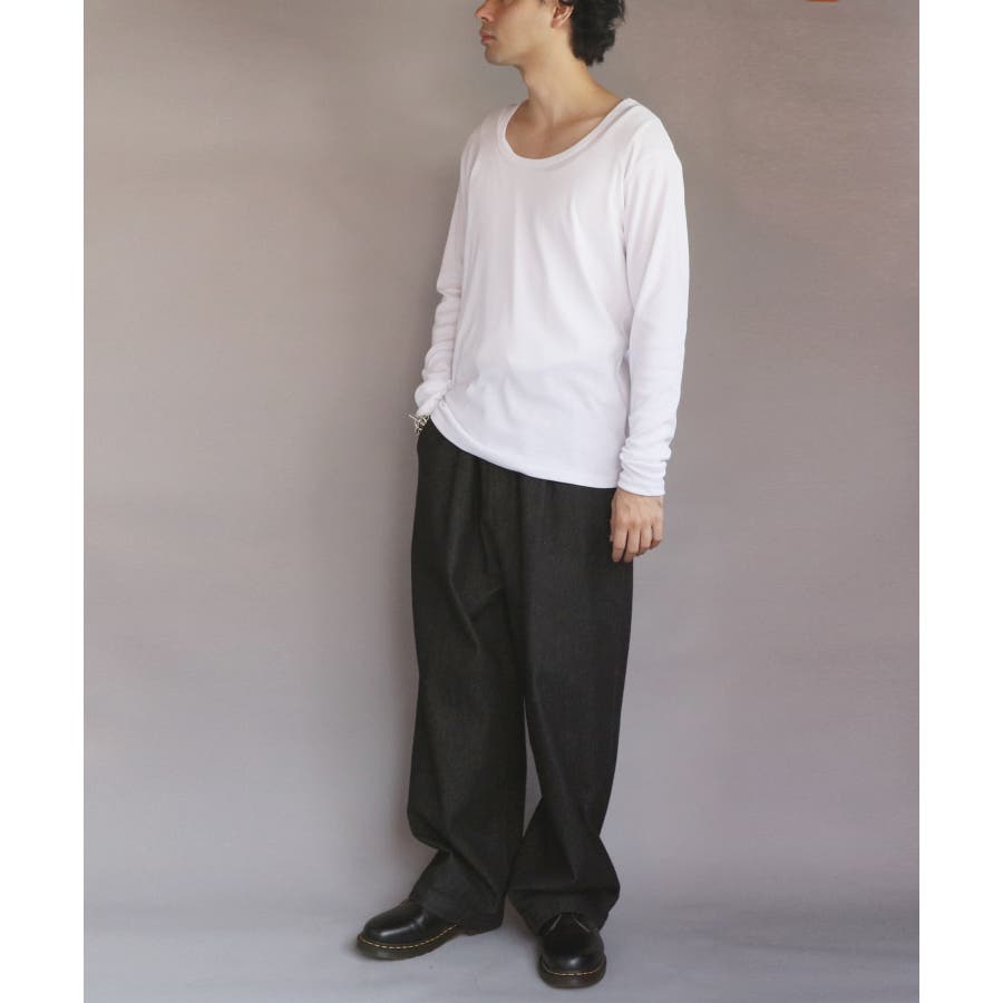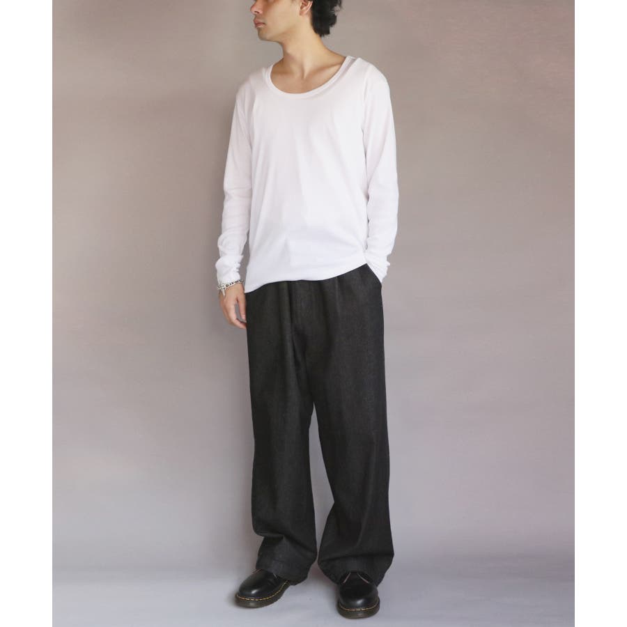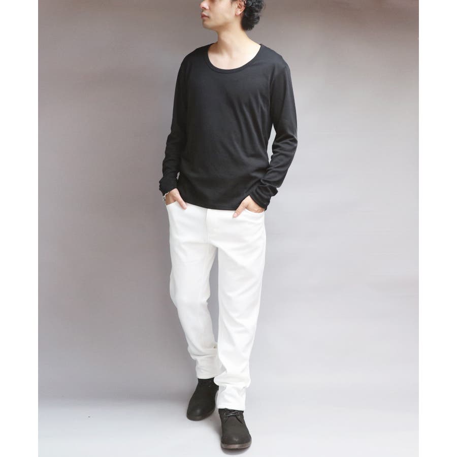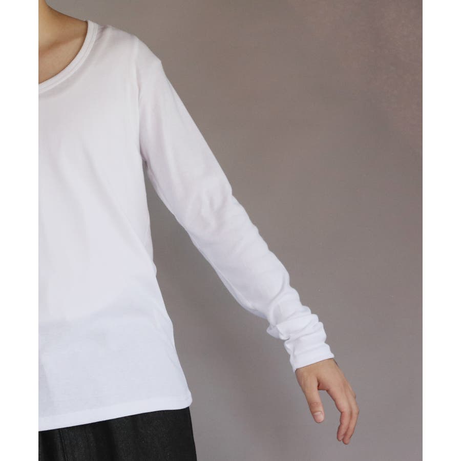 Uネック長袖Tシャツ メンズ ロングTシャツ ロンT インナー