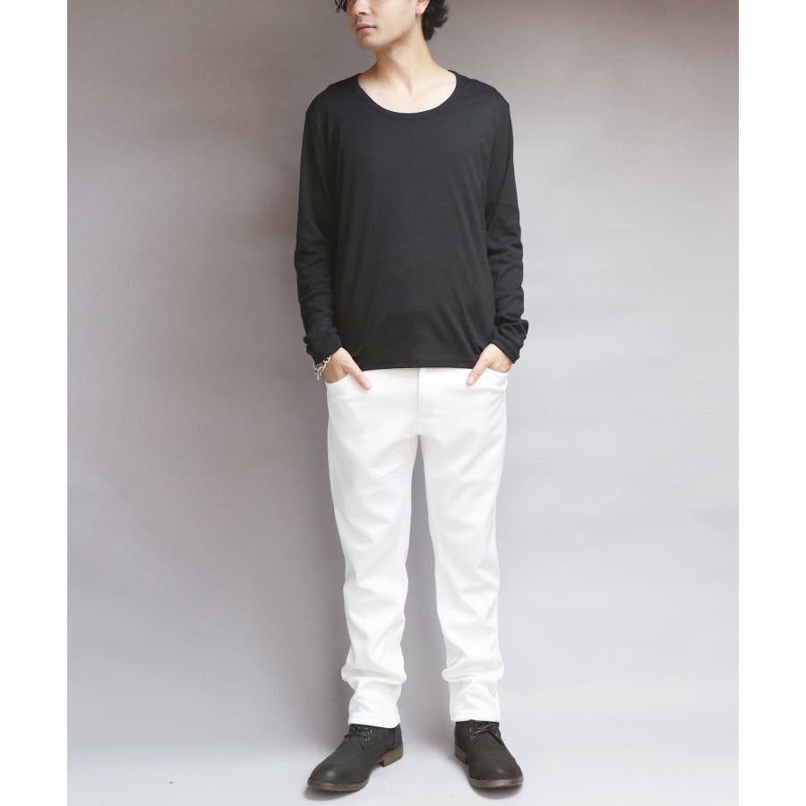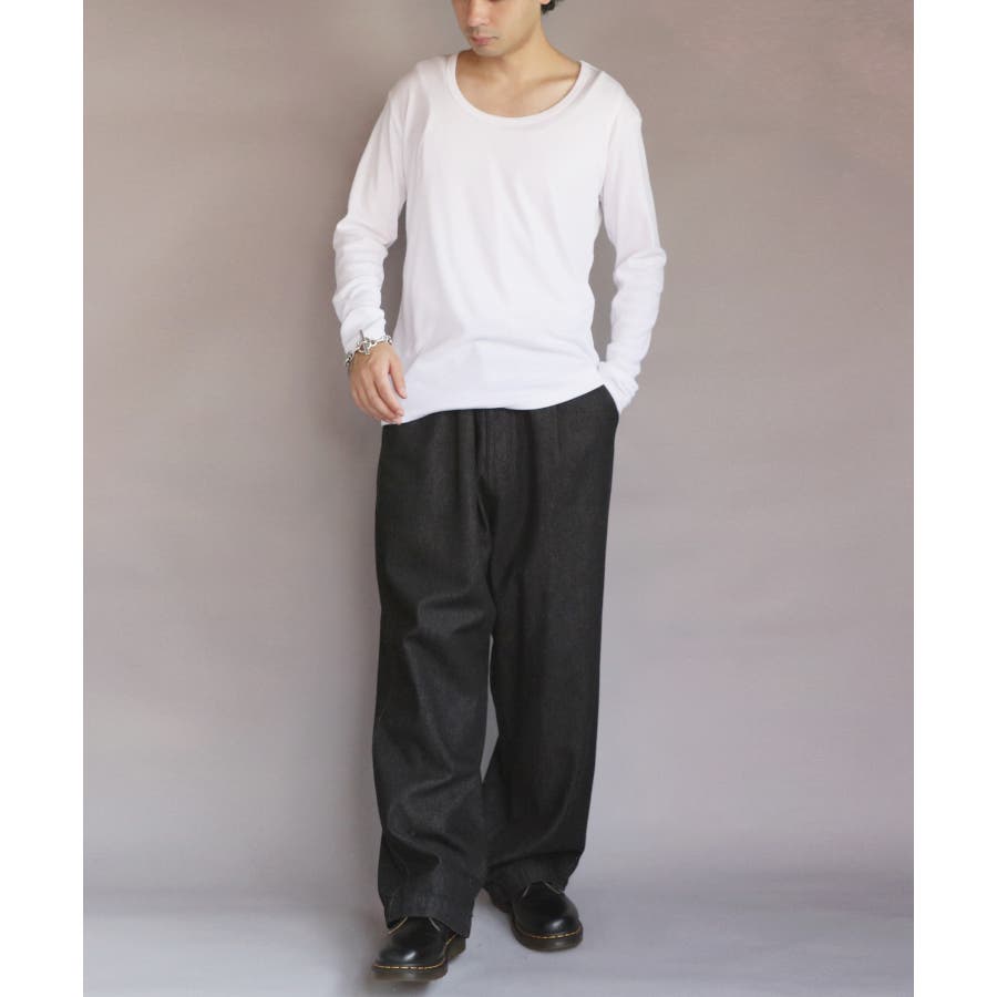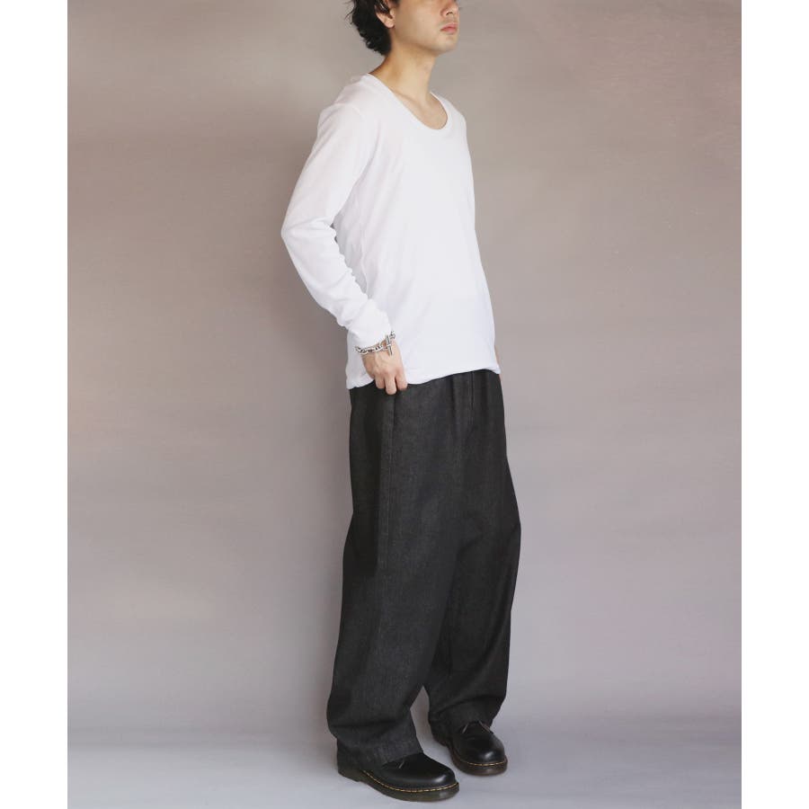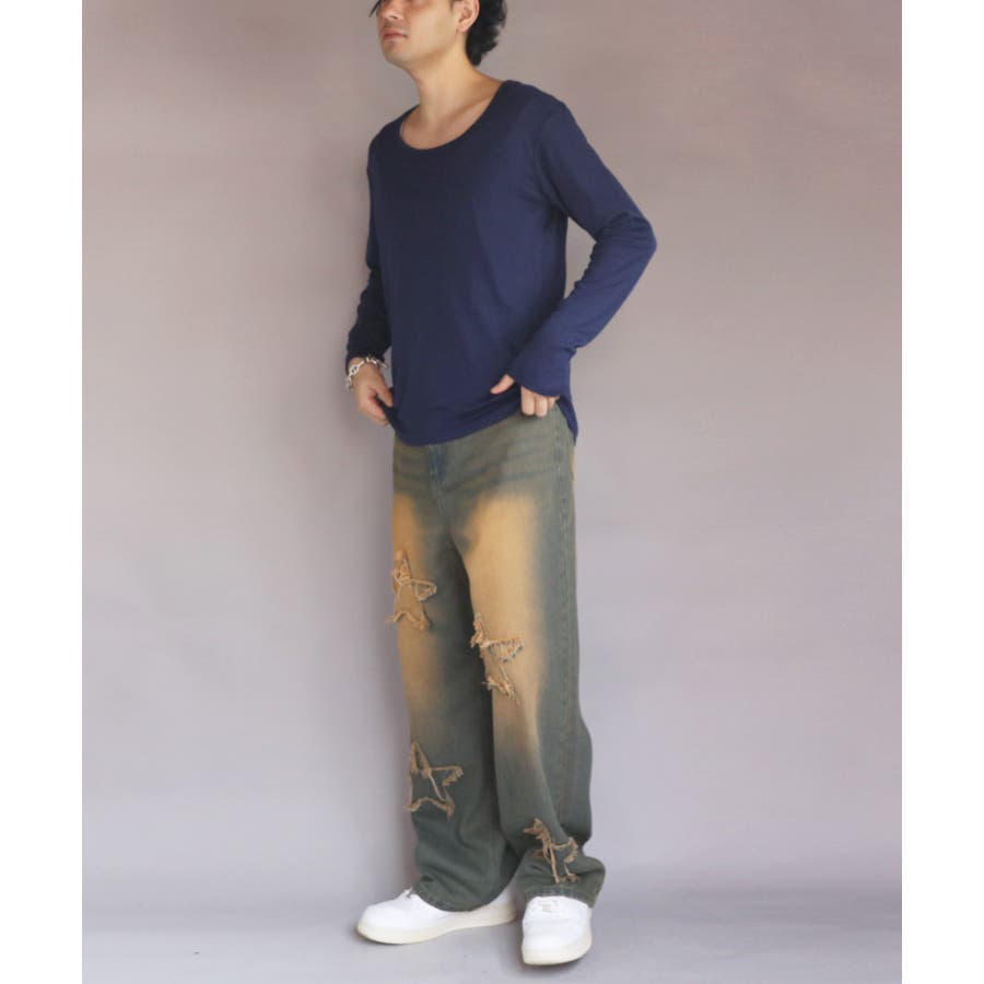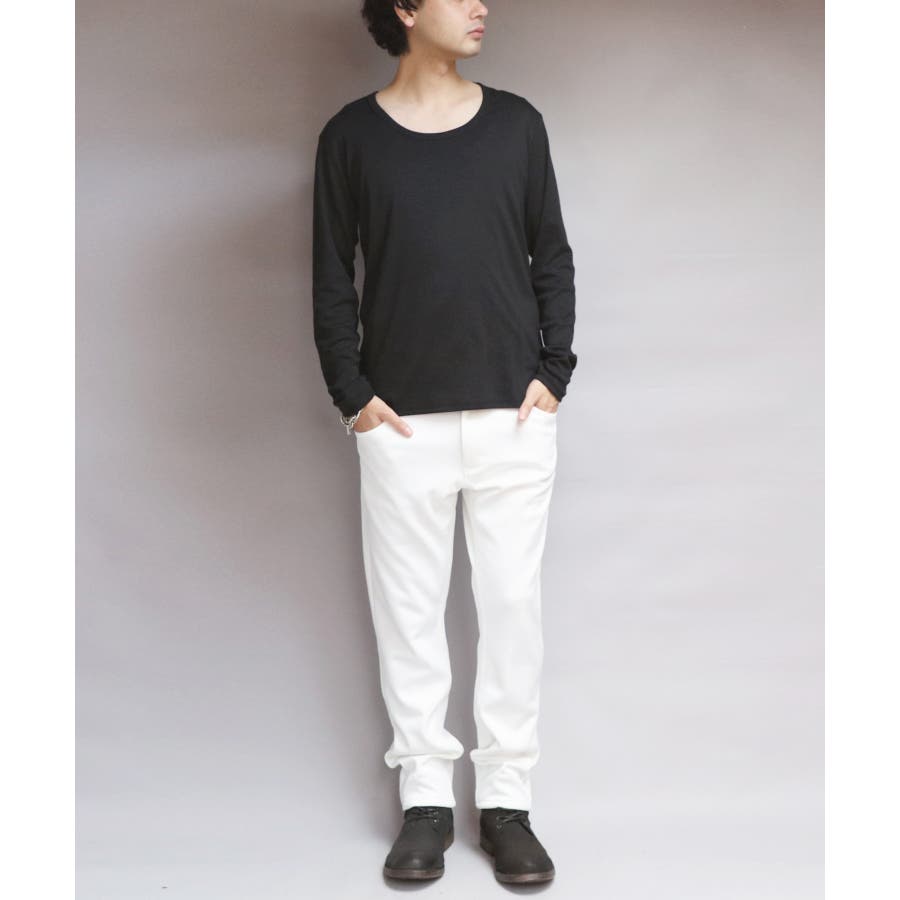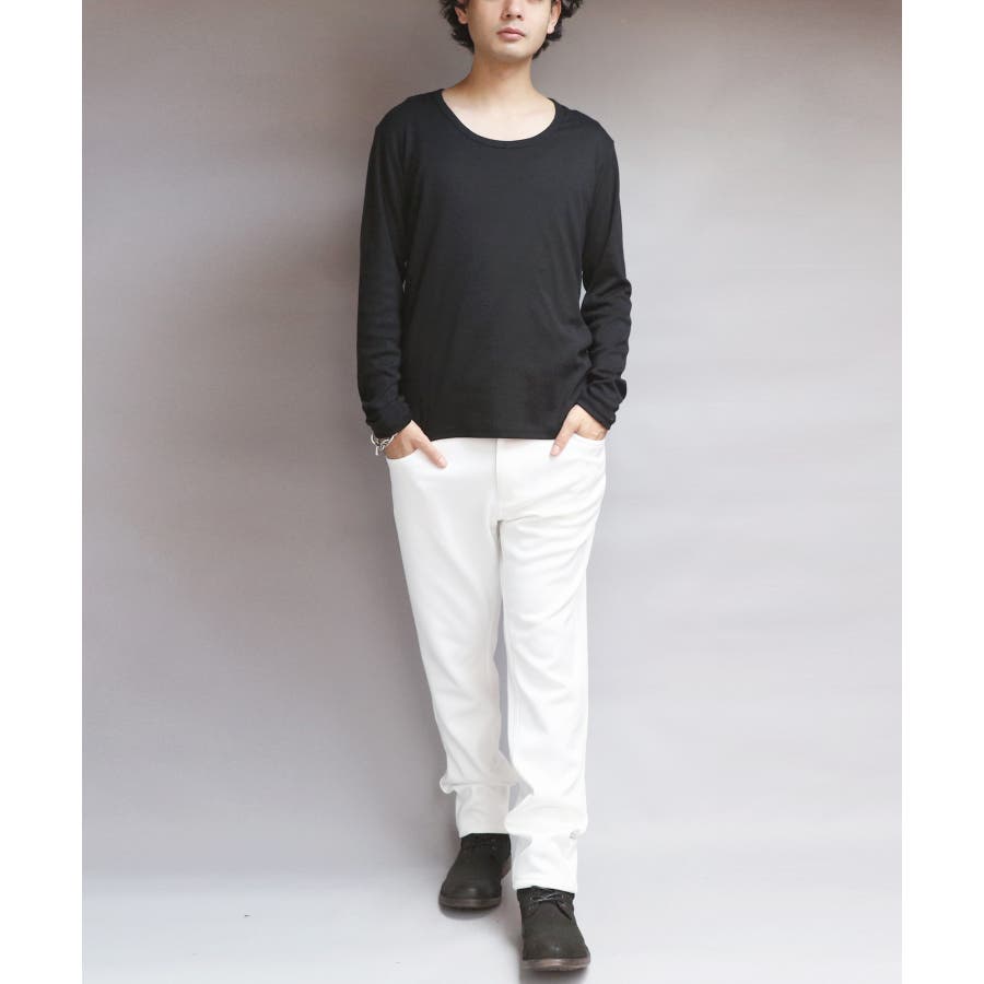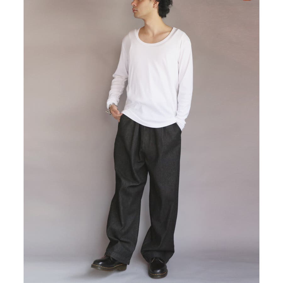 Uネック長袖Tシャツ メンズ ロングTシャツ ロンT インナー