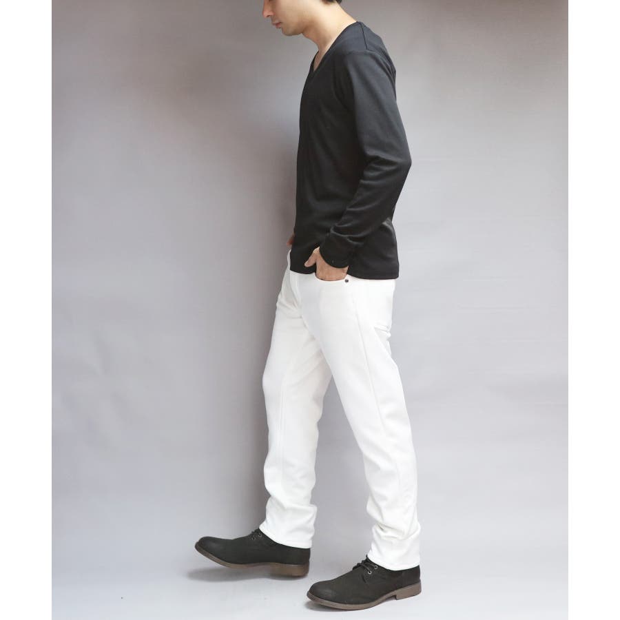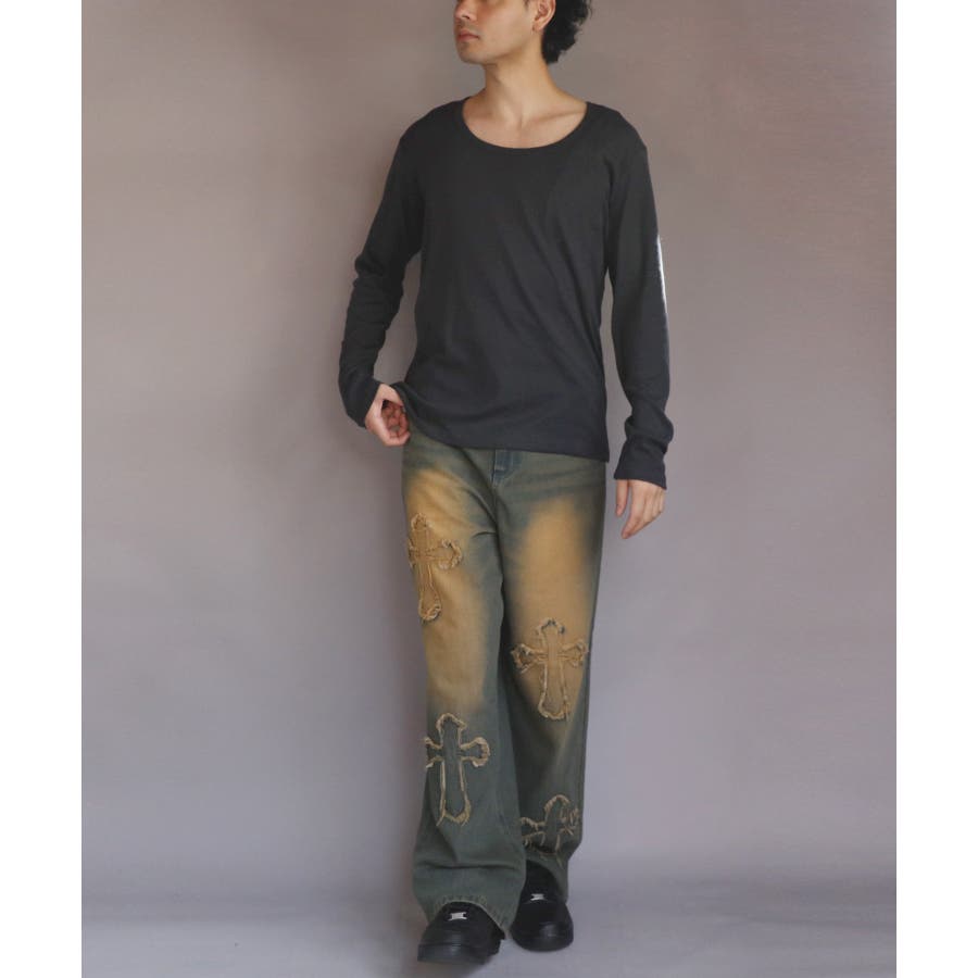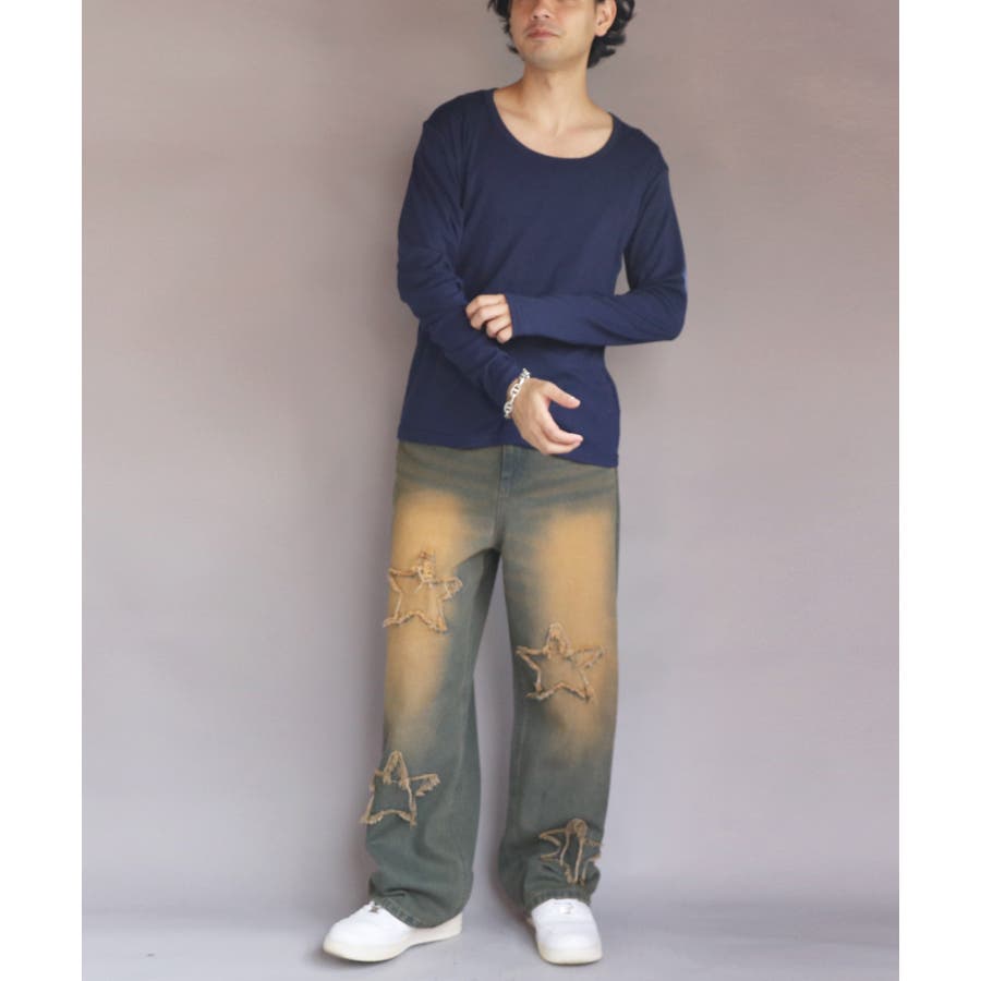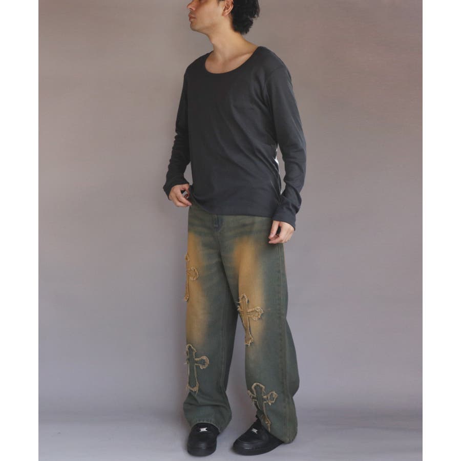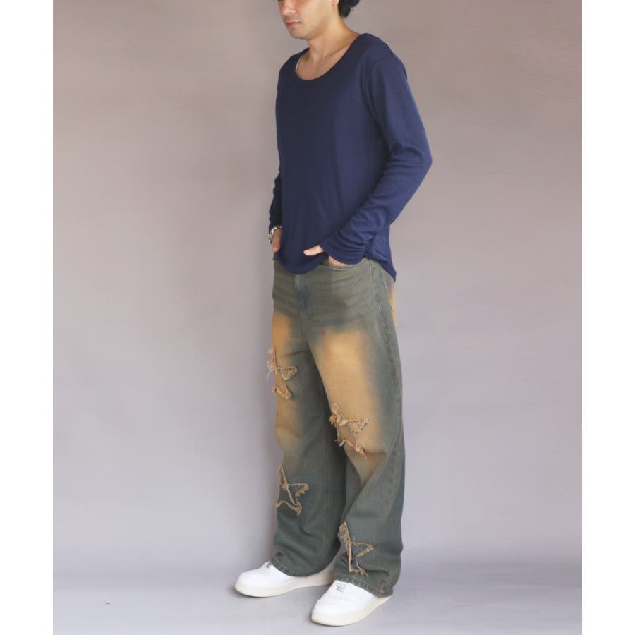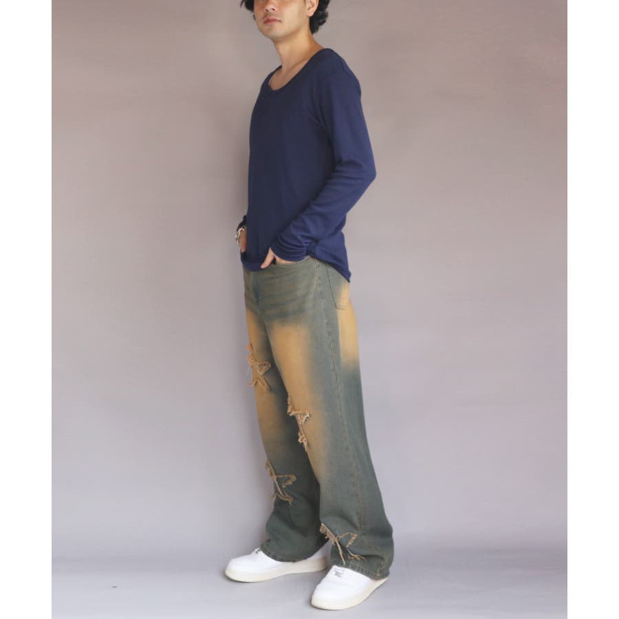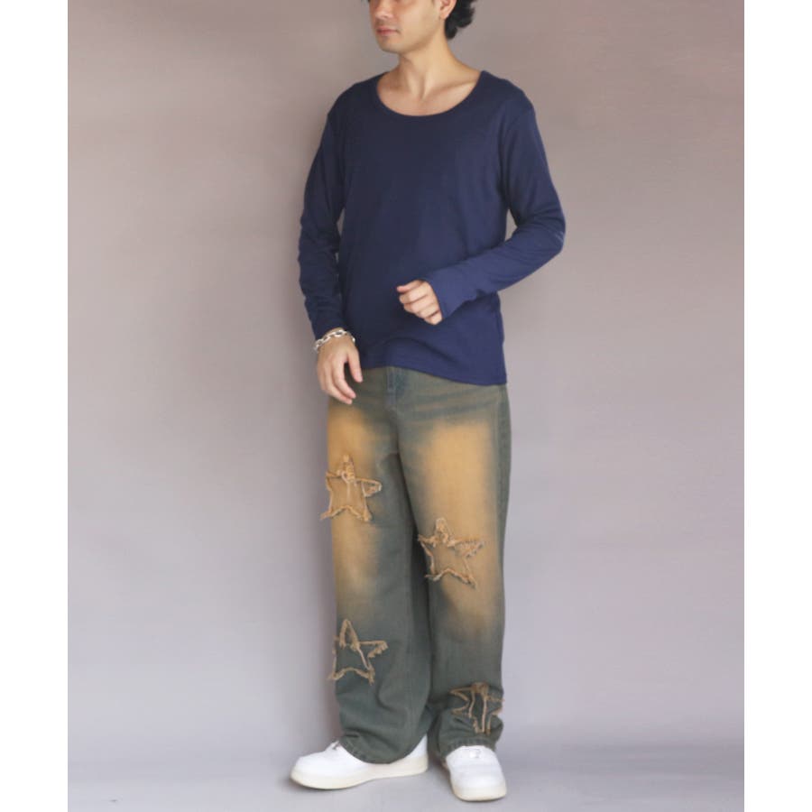 Uネック長袖Tシャツ メンズ ロングTシャツ ロンT インナー