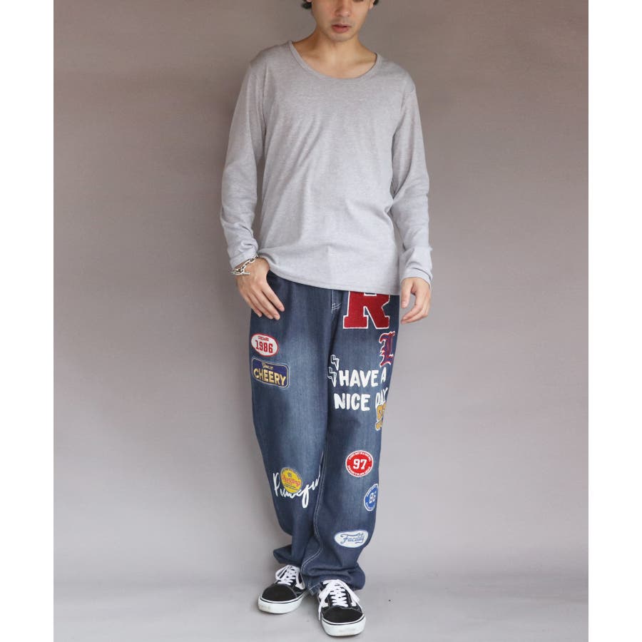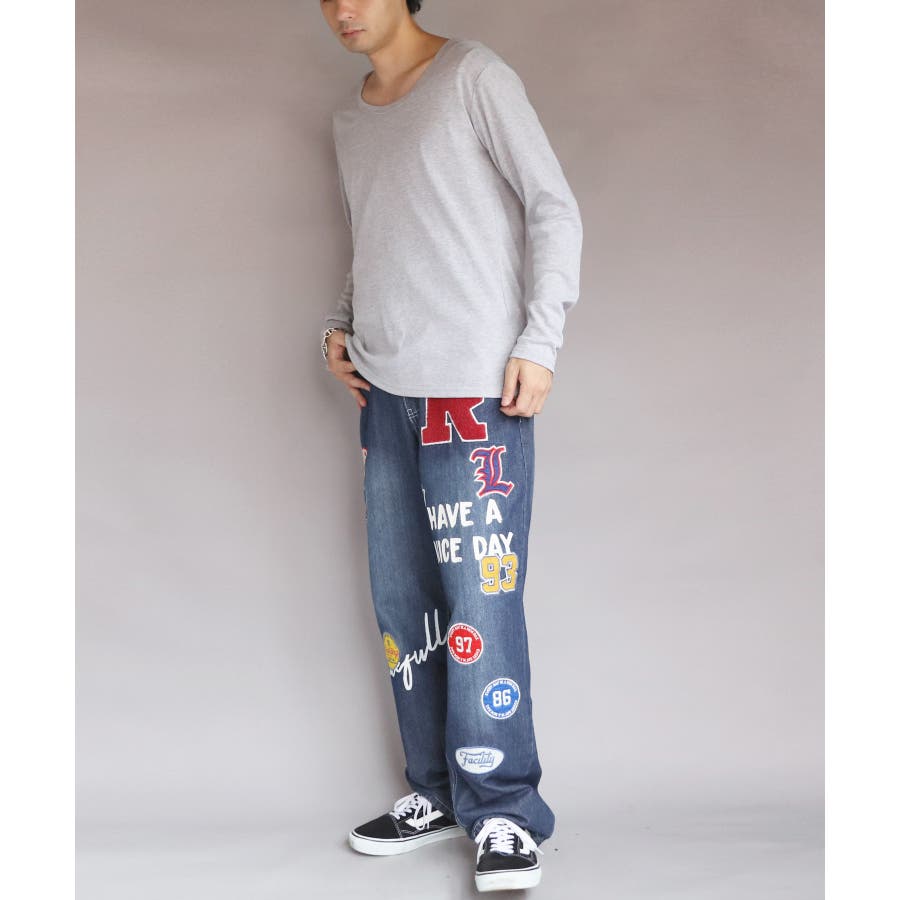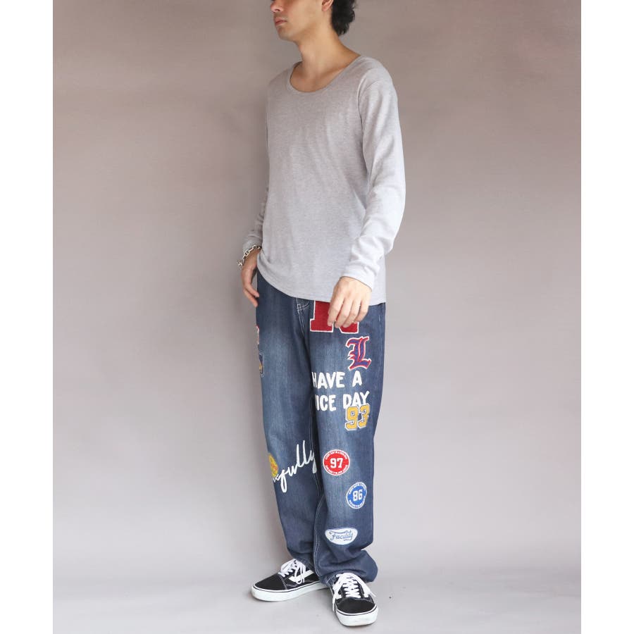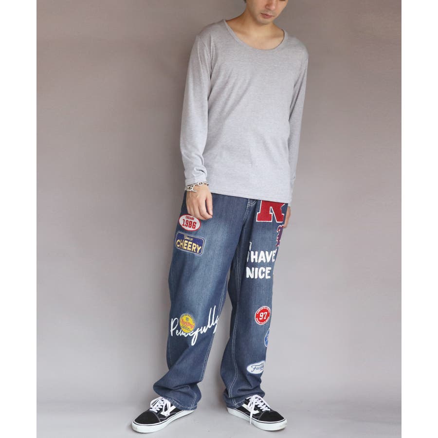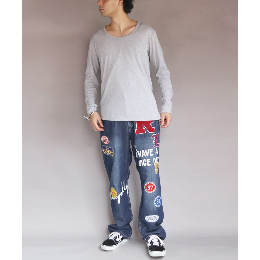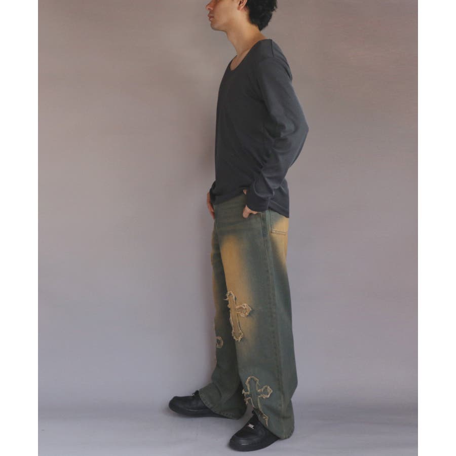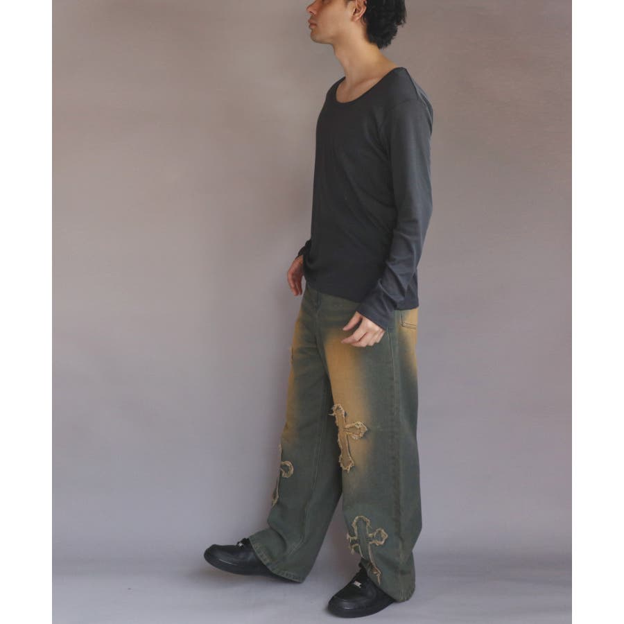 Uネック長袖Tシャツ メンズ ロングTシャツ ロンT インナー