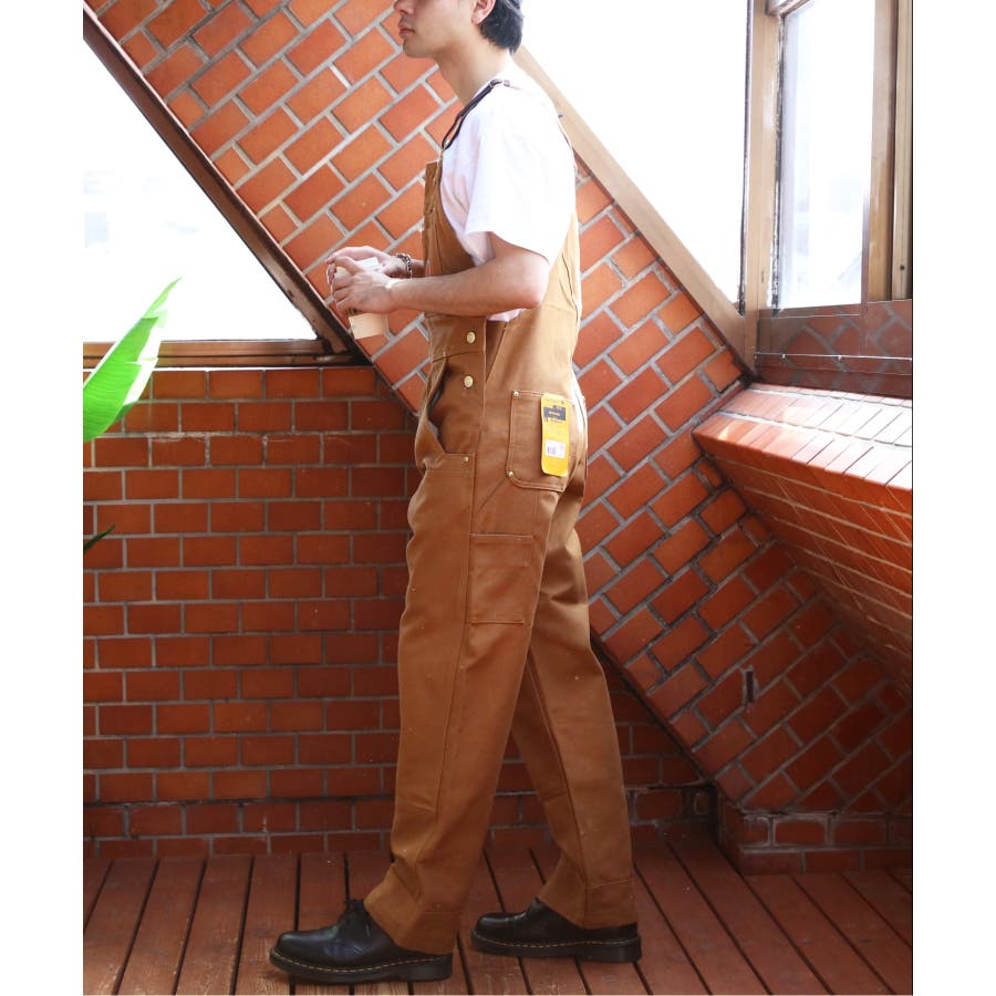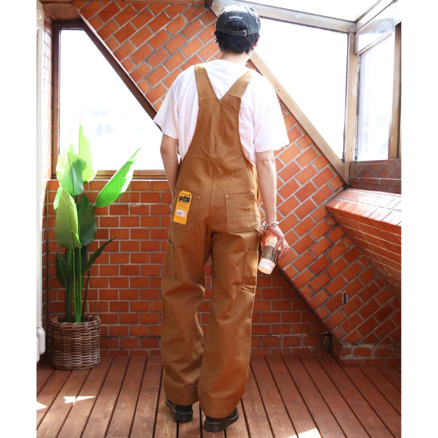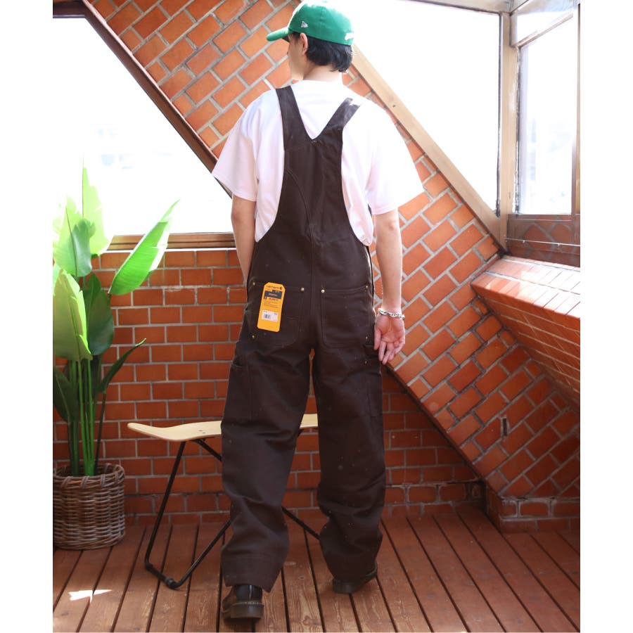 ワークだけでなくストリートやファッションの世界で広く知られるカーハートより『ダックオーバーオール』のご紹介です。カーハートの人気オーバーオール「R01」が新たにリニューアルされ、後継モデル「102776」として多機能オーバーオールが登場しました。12オンスの肉厚でしっかりとした生地感のコットンダック地を使用したUSA企画のオーバーオールです。ジップ付きの胸ポケットにはペンやスマホが収納でき、バックポケットは二重に補強されています。また、右脚部分のハンマーループなど、充実した収納力を誇ります。調節可能なゴム製サスペンダーには金具式のフックが付いており、膝部分はダブルニー仕様で、耐久性を重視した作りです。ヒップからモモ周りに余裕があり、動きやすさを確保したゆったりとしたシルエットで、オーバーサイズのトップスとも相性抜群です。ワークブランドらしい多機能性と耐久性を兼ね備えたオーバーオールです。仕事着だけでなく普段使いやアウトドアシーンにも最適です。ユニセックスデザインなので、男女問わず着用できます。
