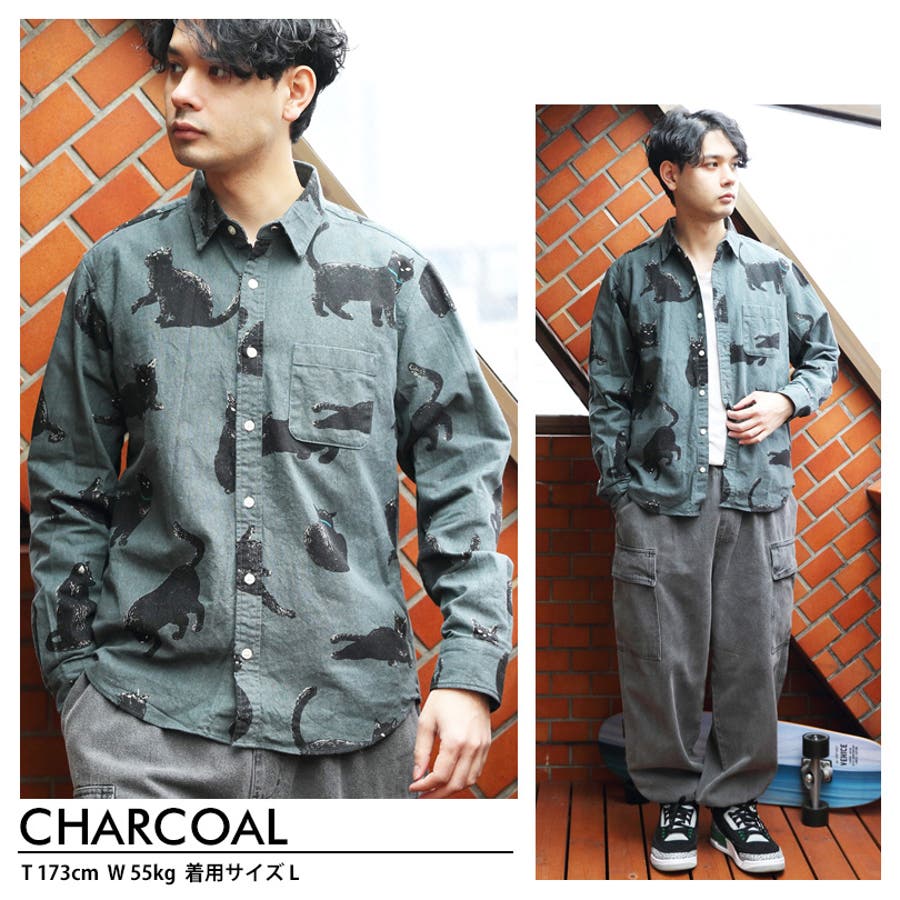 これ一枚でこなれたスタイリングが完成する CIAO 国産 総柄 黒猫 長袖 シャツ のご紹介です。さっと羽織るとオシャレなシャツから 日本製 総柄 黒猫プリント 長袖 シャツ が登場。可愛らしい 黒ねこを全面にプリントしたデザインは、街中で目を惹くこと間違いなし。シャツの色それぞれに、違うカラーの首輪の色がアクセントになっています。コットン × リネン のミックス素材で、さらっとした肌触りが魅力です。しっかり厚みがあるので 春~秋にかけては 一枚で着ていただくのはもちろん、タンクトップやTシャツの上にライトアウター感覚で着ていただいても◎ タイトなシルエットで 冬にはセーターやカーディガンのインナーとしても着ぶくれせずスッキリ着ていただけます。生地調達から縫製、仕上げまでの全工程を国内で行い、裁断、縫製、仕上げなど各分野の職人の技術が詰まった MADE IN JAPAN ならではのクオリティ です。今期大人気 日本製 柄シャツ ロングシャツ トップス をこの機会にぜひチェックしてください。