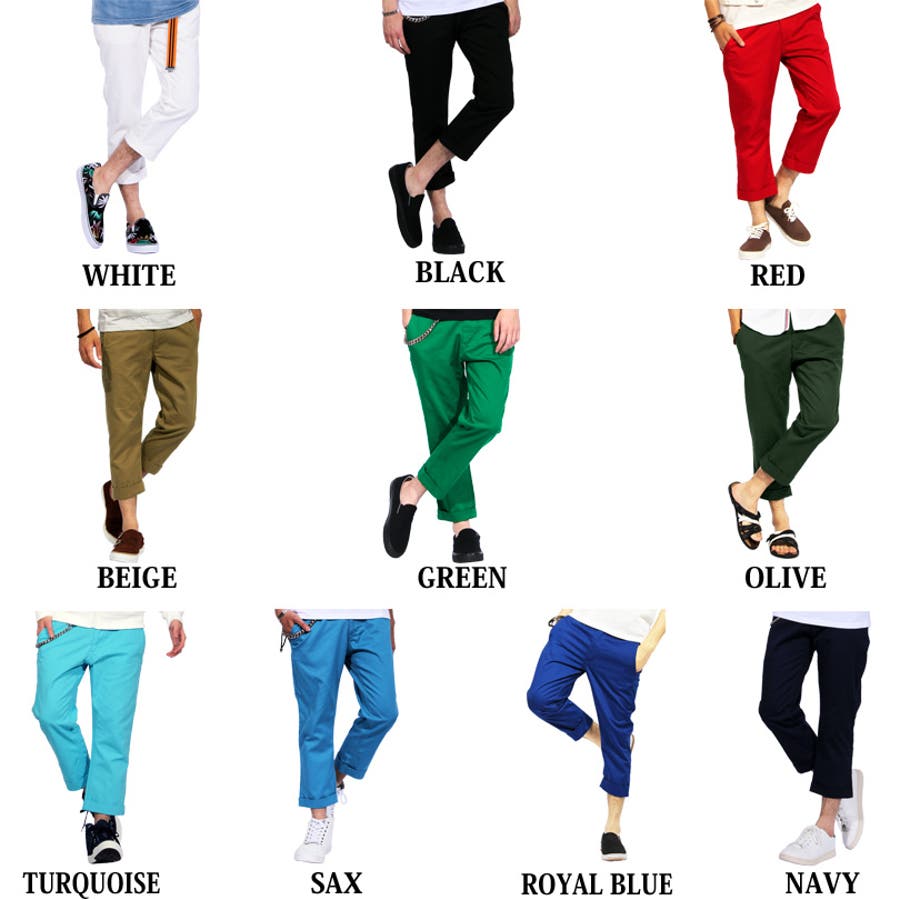 トレンドのストリートスタイルを楽しめる カラフル クロップドパンツ チノパンが登場。タイト過ぎずゆる過ぎない程よいサイズ感がこなれ感を出してくれる カラフル チノパンツ クロップド パンツは、何本も持っておきたいアイテムです。コットン100%で履き心地抜群なだけでなく、無駄な装飾を省いたシンプルなデザインがコーディネートを一気に品格ある大人の雰囲気にしてくれます。ひざが隠れる程よいクロップド丈が、短いショーツで足を出すのに抵抗がある方にもおすすめです。フタなし左釦止めのピスポケット等拘りのディティールが、カジュアルからキレイめまで幅広いスタイルに対応してくれます。カラーは定番人気 カラフル な全10色、サイズは S M L XL と豊富にご用意いたしました。ベーシックなデザインが愛され続けている カラークロップド丈 チノパンツ をこの機会にぜひチェックしてさい。