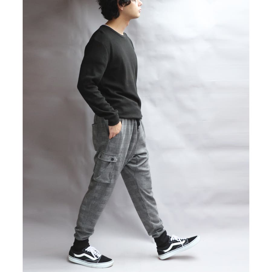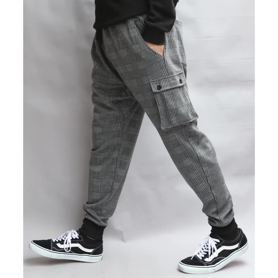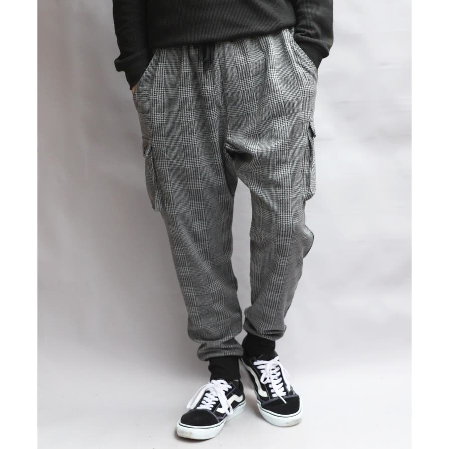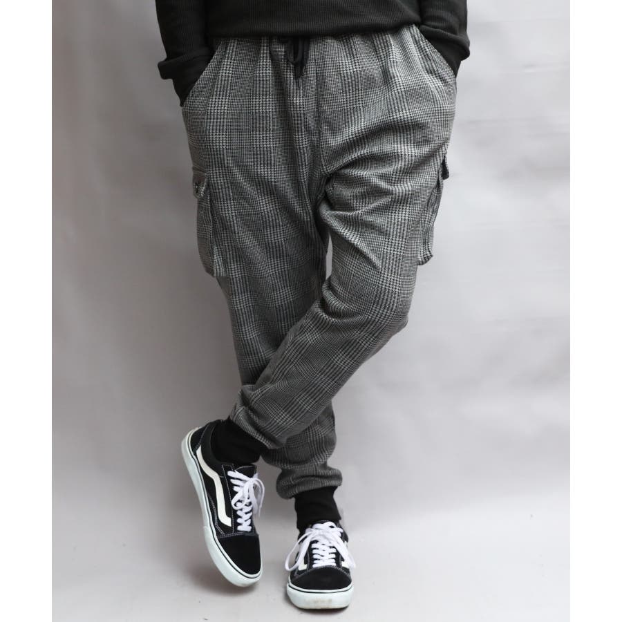 カジュアルスタイルにぴったりな「ポンチサルエルカーゴパンツ」のご紹介です。ストリートスタイルスポーティスタイルにおすすめのチェックパンツの登場。伸縮性のある柔らかな着心地は、デイリーはもちろん運動やリラックスタイムに重宝します。ジョガーパンツのシルエットにサイドポケットを追加し機能性も◎伸縮性がとてもあり、より良い着心地を実現。
