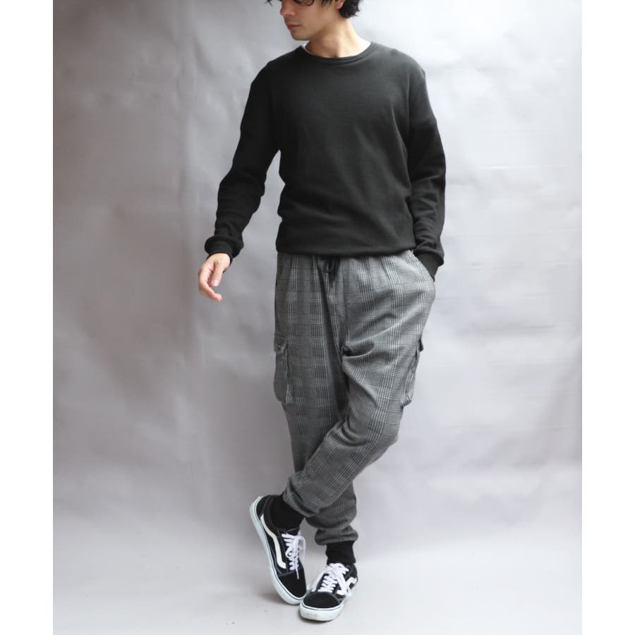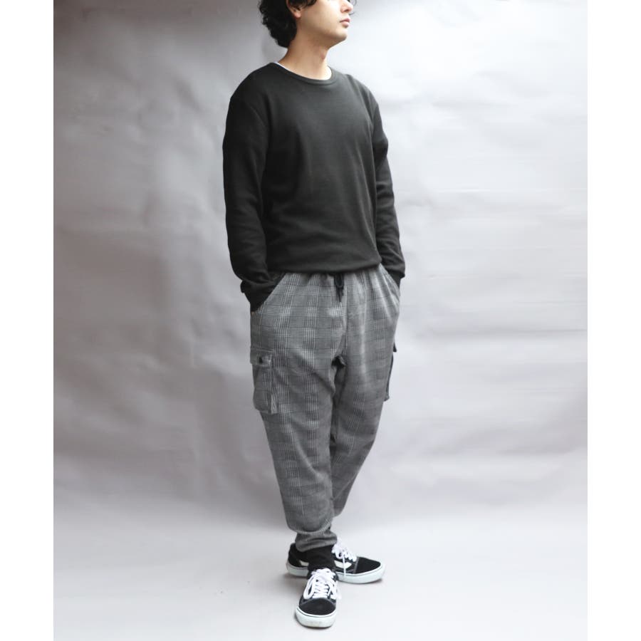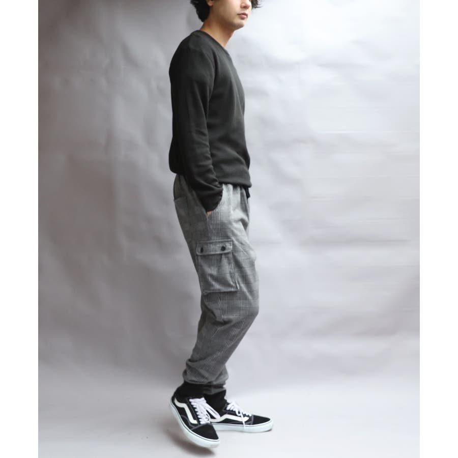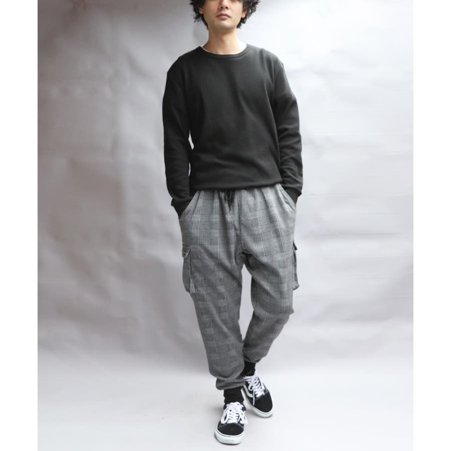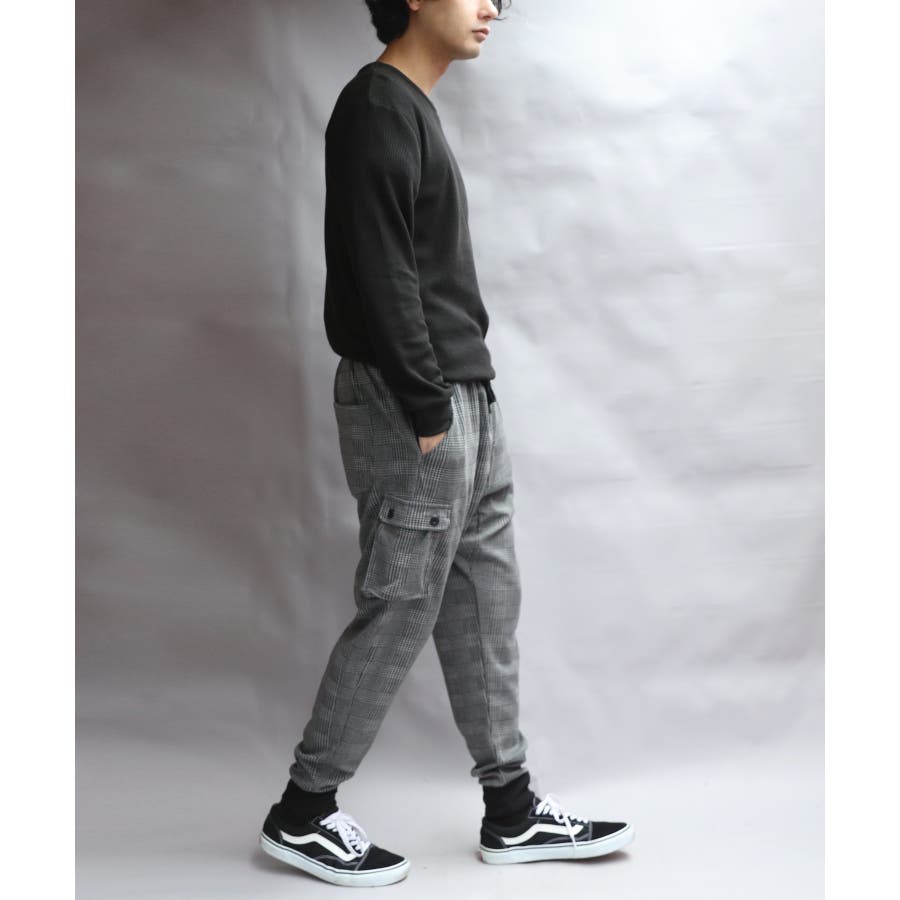 カジュアルスタイルにぴったりな「ポンチサルエルカーゴパンツ」のご紹介です。ストリートスタイルスポーティスタイルにおすすめのチェックパンツの登場。伸縮性のある柔らかな着心地は、デイリーはもちろん運動やリラックスタイムに重宝します。ジョガーパンツのシルエットにサイドポケットを追加し機能性も◎伸縮性がとてもあり、より良い着心地を実現。