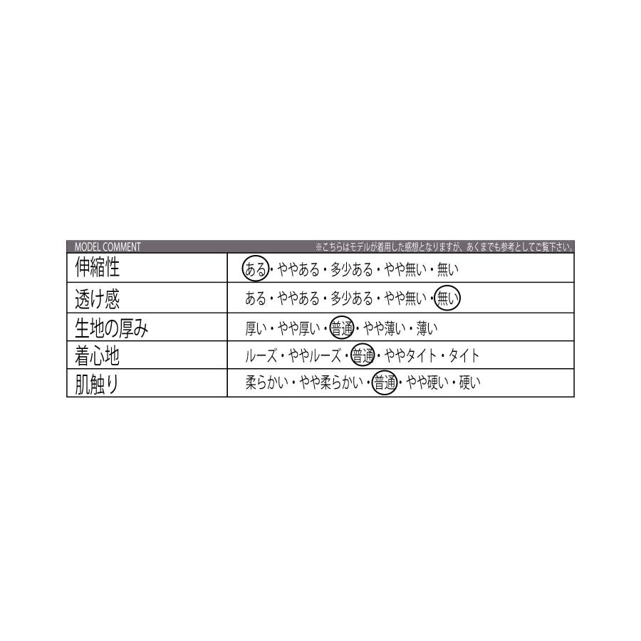 伸縮性…ある 透け感…無い 生地の厚み…普通 着心地…普通 肌触り…普通