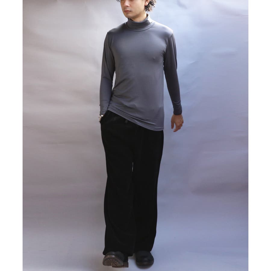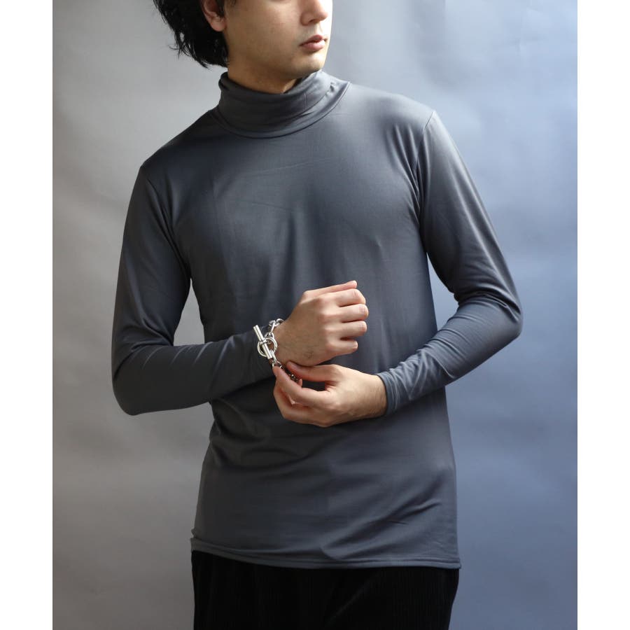 シャツやトレーナー、ヘビーアウターのインナーとして大活躍間違いなしな『裏起毛ストレッチタートルネック』が登場ぽかぽか暖かい裏起毛素材を使用。薄手でありながら防寒性に優れています。裏起毛素材なので薄手ながらも、着た瞬間から暖かさを感じることが出来ます。シルクのようなさらっと肌触りなので着心地も抜群です。シャツやニットのインナーに入れる事で冬でも暖かく過ごすことが出来ます。スリムな細身シルエットなので、着膨れすることなくスタイリッシュなコーディネートが完成します。シワにも強く、防臭加工もされているので汗をかいても快適に過ごすことが出来ます。冬のお出かけだけでなくビジネスシーンや部屋着としても活躍。