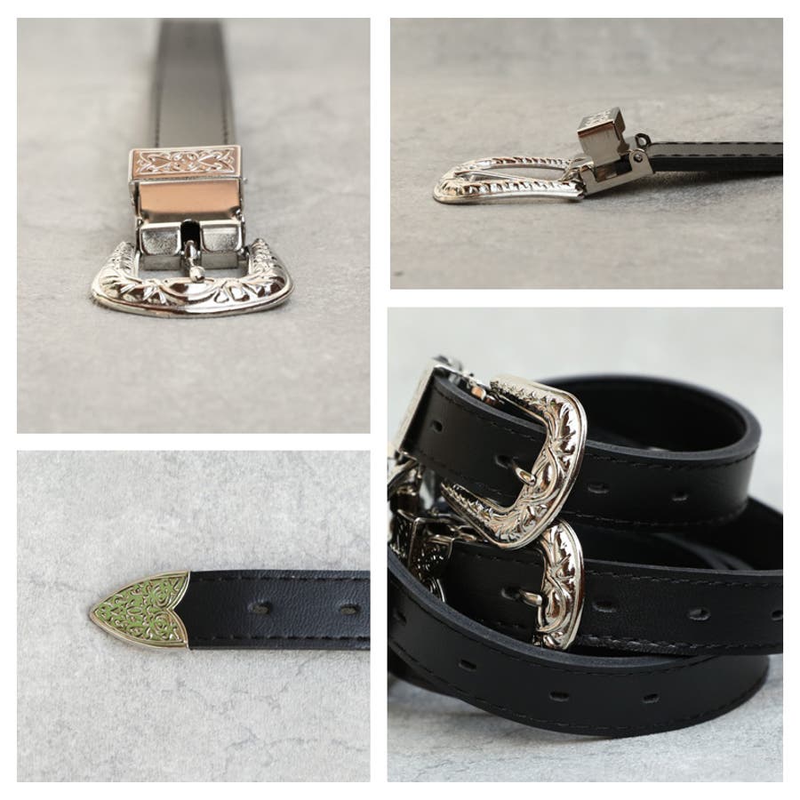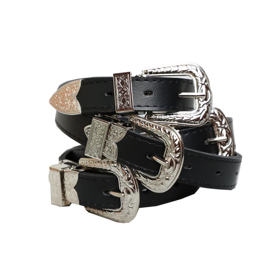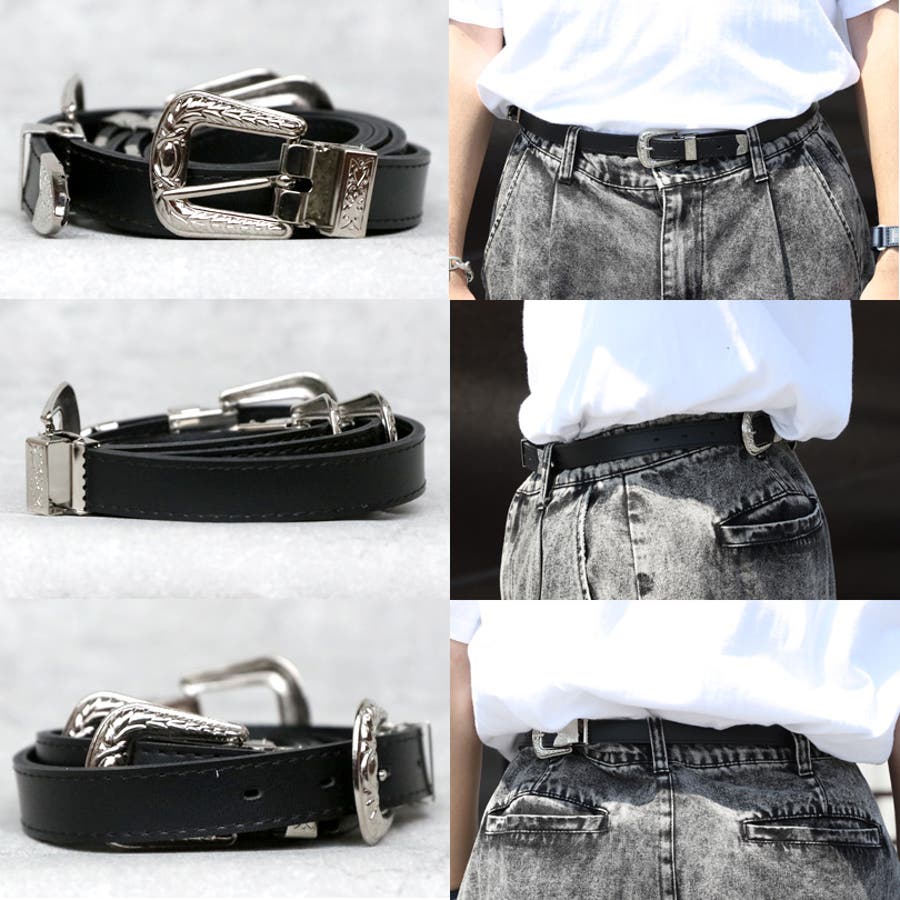 コーデのポイントになるウエスタンレザーバックルツナギベルトのご紹介です。寂しくなりがちなウエストに1点プラスすることで、コーテでのアクセントになるウエスタンレザーベルトが入荷しました。4本のバックルはタックインスタイルにぴったりのアイテム。オールシーズン使えるので一つ持っていると重宝します。また、シンプルなワンピースやチュニックのポイント使いにもぴったりなので、男性のみならず女性の方にもおすすめです。4本のウエスタンベルトが連結した特徴的なデザインです。70sファッションを意識したフレアパンツや柄シャツ、ブーツ等との相性も良く、トレンドスタイルのポイントにお使いいただけます。長さ調節が可能ですので、使う人の体型やお好みに合わせて調整して頂けます。