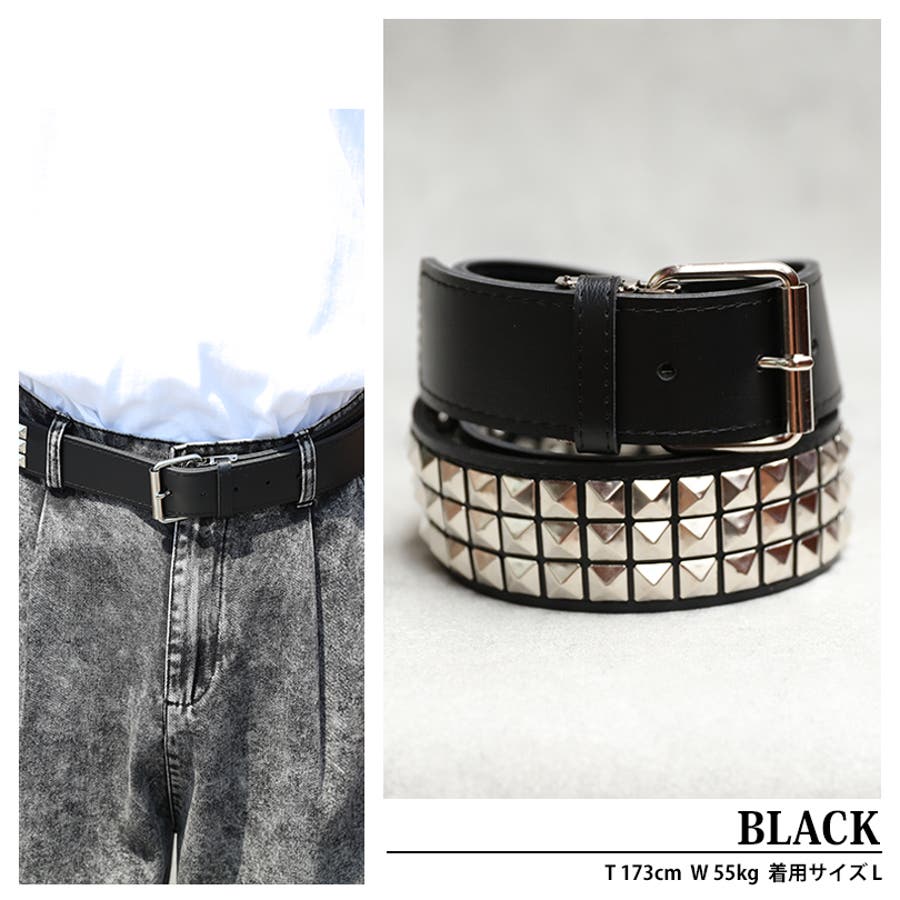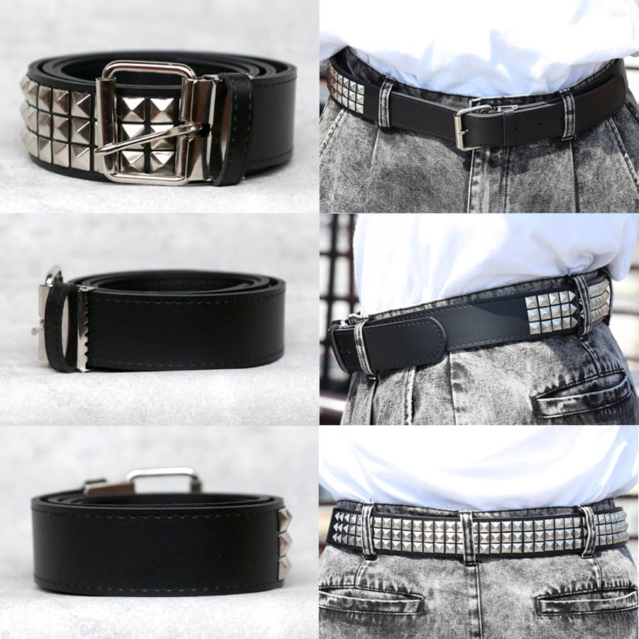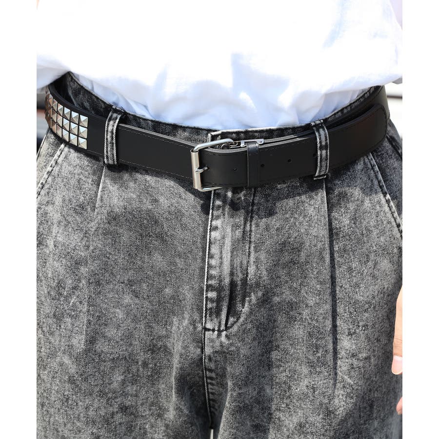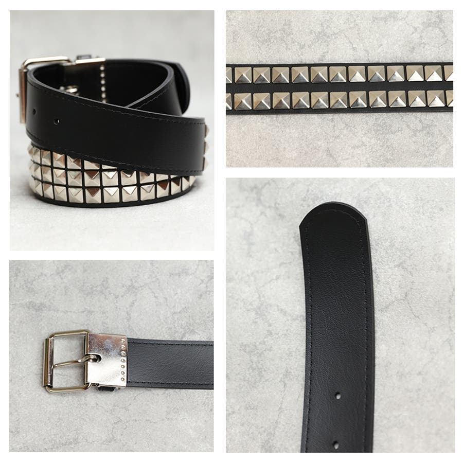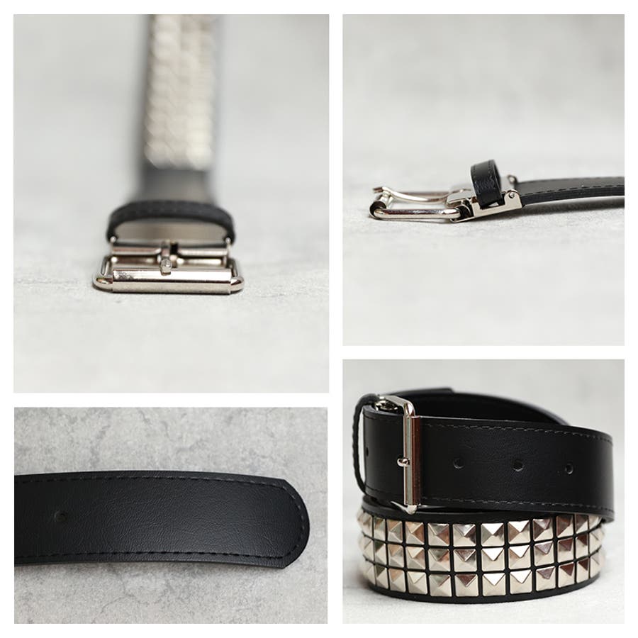 アメカジ系ロック系に大人気、『スタッズベルトレザー合皮3連バックルベルト』のご紹介です。毎日のコーデに是非持っておきたい新作スタッズベルトレザー合皮バックルベルトが入荷しました。丁寧に打ち込まれたスタッズは非常に高級感があり、まさに本格派向けの仕上がりとなっております。丹念に光沢仕上げされた厚手の合皮で、着けるほど腰のラインに馴染んでくるのも魅力。ヴィンテージのような雰囲気を創造させてくれるレザー素材も味わいがあり、アメカジ・ロック系スタイル好きにはたまらない出来です。様々なスタッズを無駄なくデザインすることにより派手過ぎず、大人カジュアルには最適な逸品です。長さ調節が可能ですので、使う人の体型やお好みに合わせて調整して頂けます。大きめバックルはタックインスタイルにぴったりのアイテム。オールシーズン使えるので一つ持っていると重宝します。
