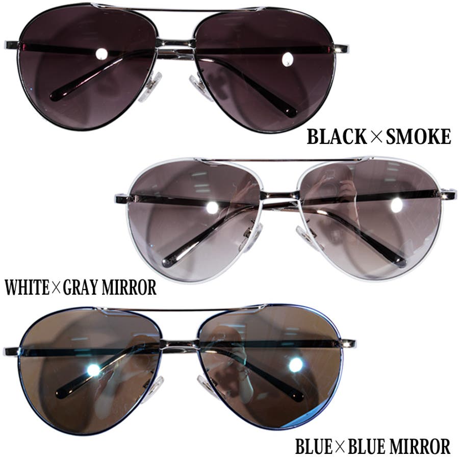 ブラック×スモーク 黒 灰 ホワイト×グレーミラー 白 ブルー×ブルーミラー 青