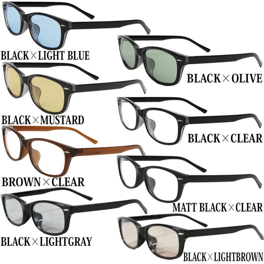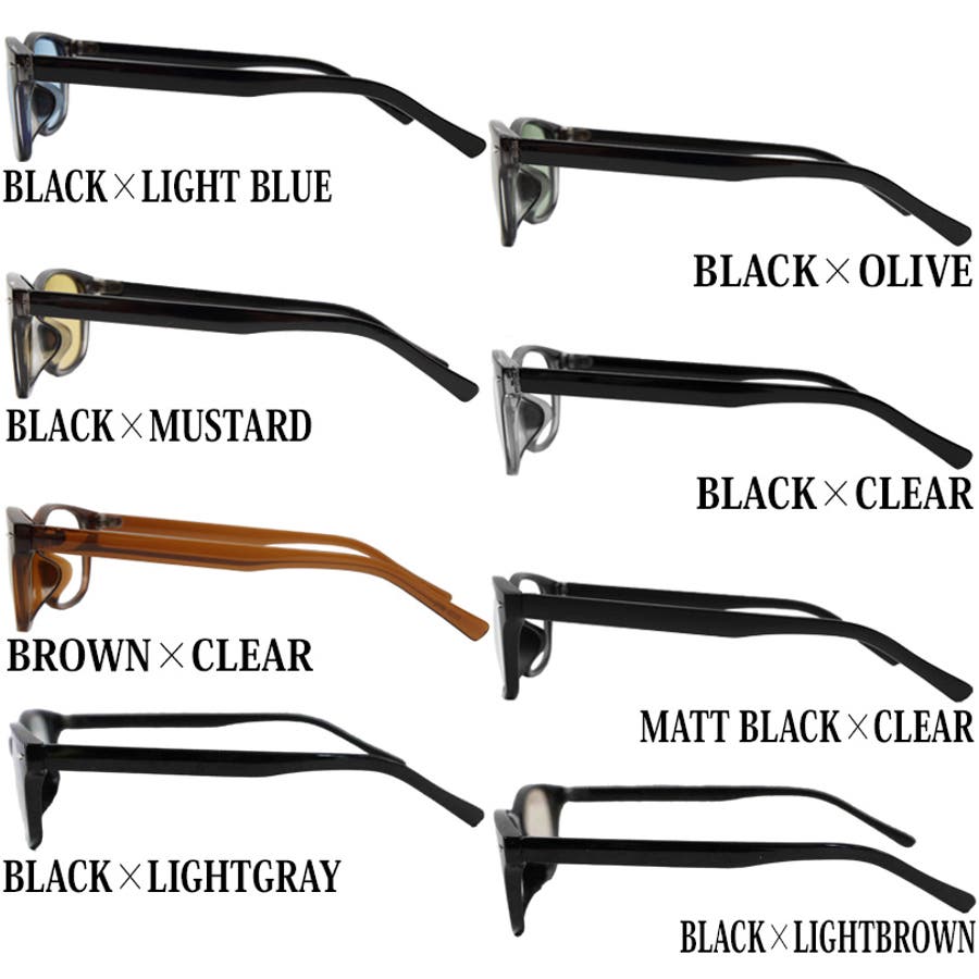 ブラック×ライトブルー ブラック×オリーブ ブラック×マスタード ブラック×クリアー ブラウン×クリアー マットブラック×クリアー ブラック×ライトグレー ブラック×ライトブラウン