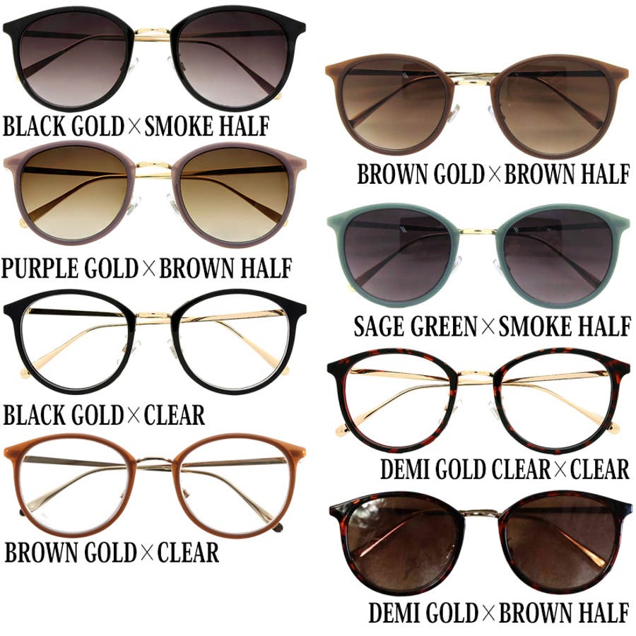 ブラックゴールド×スモークハーフ ブラウンゴールド×ブラウンハーフ パープルゴールド×ブラウンハーフ セージグリーン×スモークハーフ ブラックゴールド×クリア デミゴールドクリア×クリア ブラウンゴールド×クリア