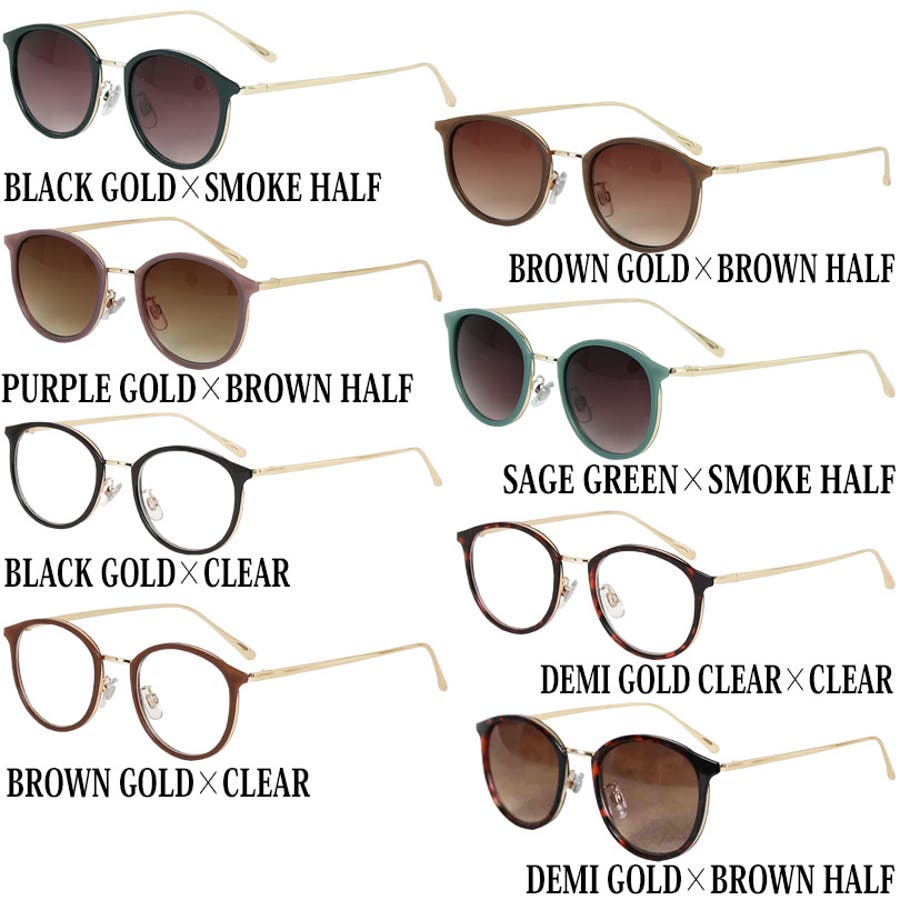 | カラー | ブラックゴールド×スモークハーフ / ブラウンゴールド×ブラウンハーフ / パープルゴールド×ブラウンハーフ / セージグリーン×スモークハーフ / ブラックゴールド×クリア / デミゴールドクリア×クリア / ブラウンゴールド×クリア / デミゴールド×ブラウンハーフ |