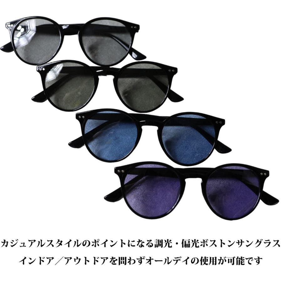 ボストンサングラス メンズ レディース 調光 偏光 専用ケース付き