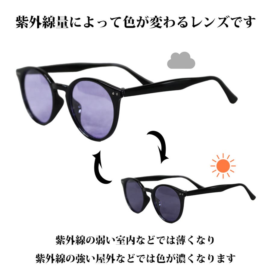 紫外線の量によって色が変化する『調光・偏光ボストンサングラス』のご紹介です。大人カジュアルスタイルのポイントになる調光・偏光ボストンサングラスが入荷しました。プライベートはもちろん、リゾートやアウトドアバカンスにもおススメ。どんなスタイルにも合う落ち着いたカラーから、コーディネートのアクセントにぴったりのインパクトあるカラーまで大人の遊び心をくすぐるラインナップです。紫外線量によって色が変わるレンズです。紫外線の強い屋外などでは色が濃くなり、紫外線の弱い室内などでは薄くなります。インドア/アウトドアを問わずオールデイの使用が可能です。専用ケース付きなので、レンズに傷がつくのを防いでくれるだけでなく、カバンの中での収納も安心。Tシャツにデニムを合わせたシンプルスタイルに、プラスすればこなれた大人カジュアルスタイルに。アロハシャツにショートパンツやワンピース等のリゾートファッションにおすすめ。