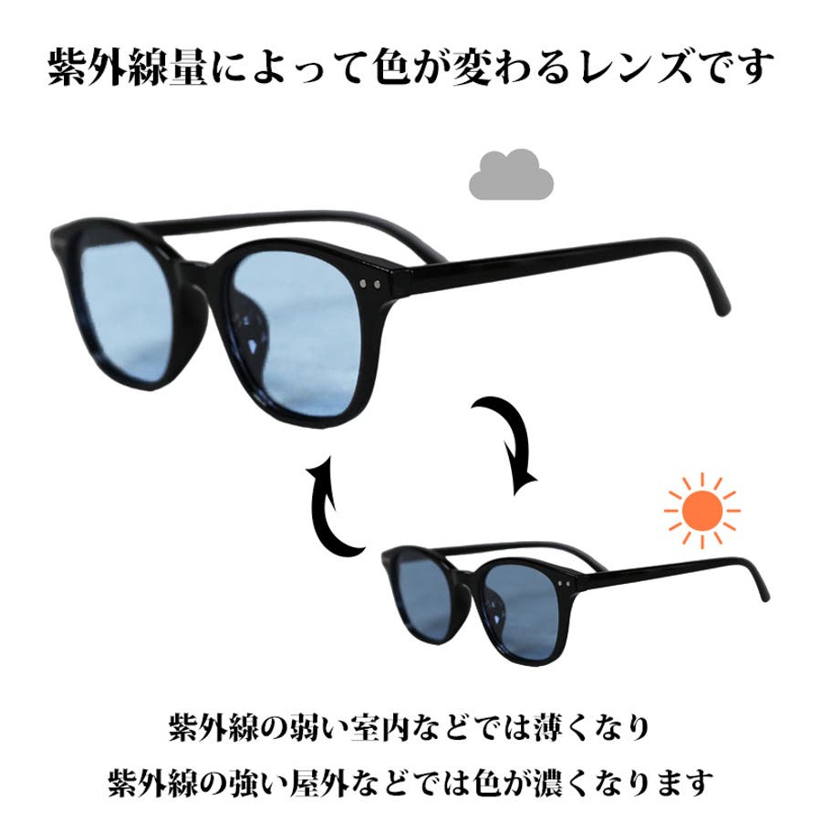 ウェリントンサングラス 調光 偏光 UVカット 専用ケース付き