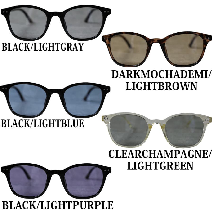プラスチック 可視光線透過率:ブラック/ライトグレー19% ダークモカデミ/ライトブラウン24% ブラック/ライトブルー14% クリアシャンパン/ライトグリーン17% ブラック/ライトパープル13%