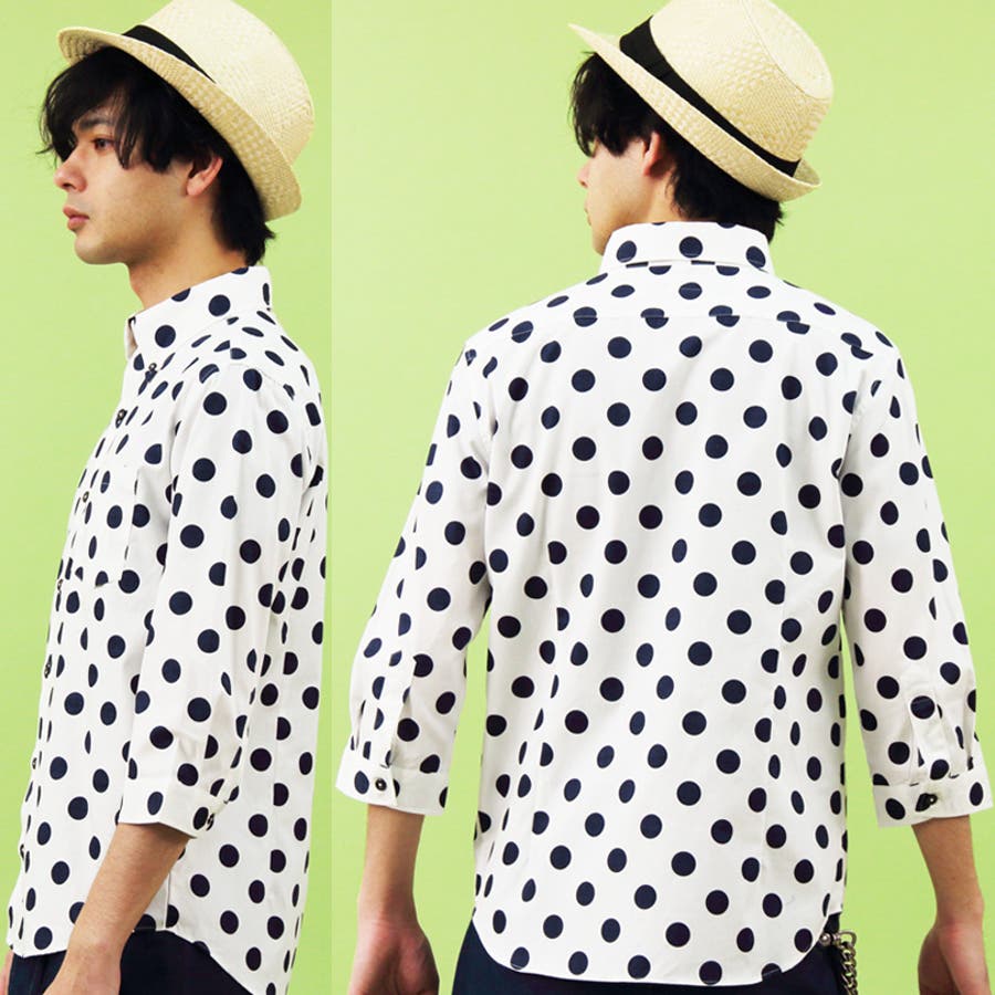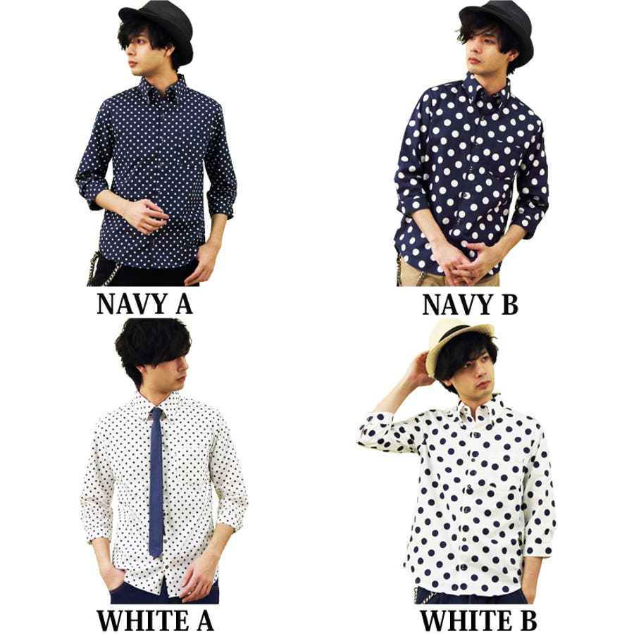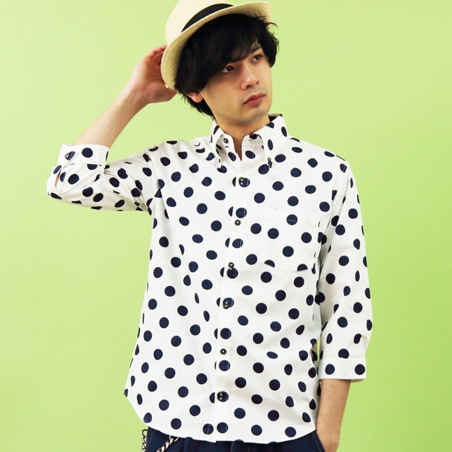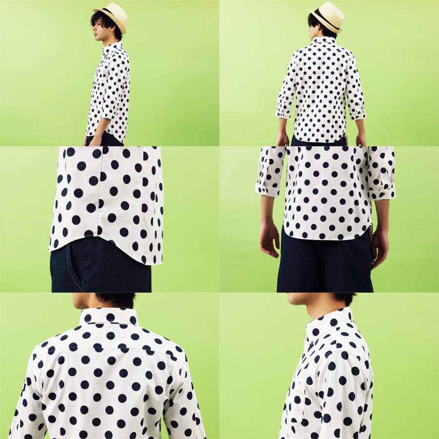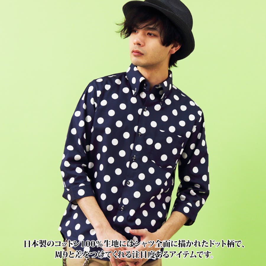 アメカジ系 きれい目 ストリートスタイル に大人気 国産 ドット柄 長袖シャツ のご紹介です。日本製 総柄 ドット 水玉柄 7分袖シャツ トップス が入荷しました。 日本製 の コットン100% 生地にはシャツ全面に描かれた ドット柄 で、周りと差をつけてくれる 注目度 ある アイテム です。初夏の羽織ものとしても良い大人の爽やかさを兼ね備えた タイト な シルエット に仕上がったトップスです。コーデ に取り入れやすく Tシャツ カットソー 等に羽織ってもバッチリ決まります。 水玉シャツ は、様々なスタイルに重宝するので手に入れておきたい逸品。カラーは コーディネート に合わせやすい 定番人気 ネイビー ホワイト でそれぞれ 小さいドット(Aタイプ)と大きいドット(Bタイプ)の 全4タイプ をご用意いたしました。 大人気 ドット柄 7分袖 シャツ カジュアルシャツ をこの機会にぜひチェックして下さい。