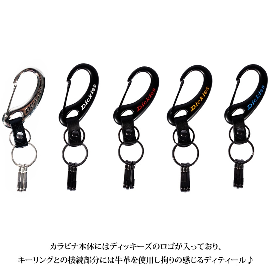 アメカジ系 アウトドア系 に大人気! 新作 Dickies 革 カラビナ キーリング のご紹介です♪当店 定番人気 ディッキーズシリーズ から Dickies ロゴ レザー キーチェーン カラビナが入荷しました!!シンプルなデザインでどんなスタイルにも合わせやすく、使い勝手抜群の逸品★デニムのベルトループやバックパック等に着けてコーデのポイントに◎カラビナ本体にはディッキーズのロゴが入っており、キーリングとの接続部分には牛革を使用し拘りの感じるディティール♪♪カラーはコーディネート のポイントになる 定番人気 豊富な全5色をご用意いたしました!! 通勤 通学 などオールシーズン使える今期イチオシディッキーズ ロゴ入り キーリング をこの機会にぜひチェックして下さい!!