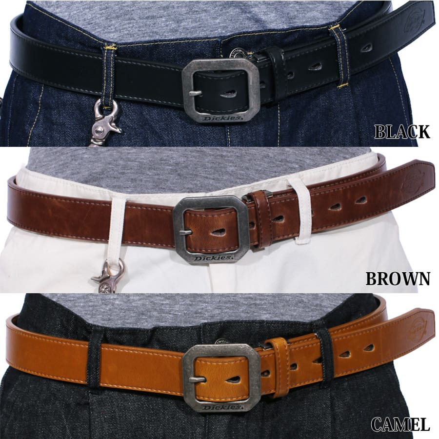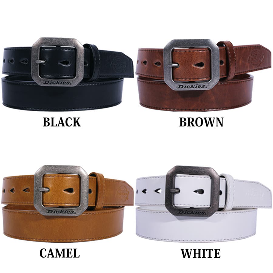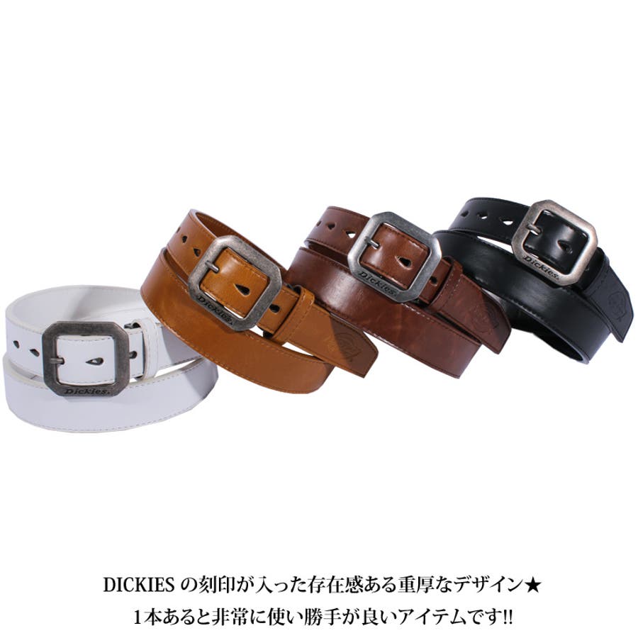 アメカジ系 キレカジ系 に大人気! Dickies PUレザーベルト フェイクレザー バックル ベルト メンズのご紹介です♪アメカジブランドとして根強い人気を誇る Dickies ディッキーズ 合成皮革 スクエア バックルベルトが入荷しました!! 無駄な装飾がないシンプルで上質な フェイクレザー 素材のベルトなので、 ビジネスシーン や 披露宴等のフォーマルにも使える大人スタイル♪もちろんカジュアルなスタイルにも合いますので、1本あると非常に使い勝手が良いアイテムです★艶を抑えたバックルは DICKIESの刻印が入った存在感ある重厚なデザインとなっております!!シンプルなデザインと味わい深いカラーで ジーンズ カーゴ チノパンなど何にでも合わせやすく、ファッションアイテムとして大活躍!! 長さ調節が可能ですので、使う人の体型やお好みに合わせて調整して頂けます!! カラーは どんなスタイルにもマッチする ブラック ブラウンキャメル ホワイト 全4色をご用意◎ バイカー系 サロン系 にもピッタリな Dickies 合成皮革 合皮 バックル レザーベルト 革をこの機会にぜひチェックして下さい!!