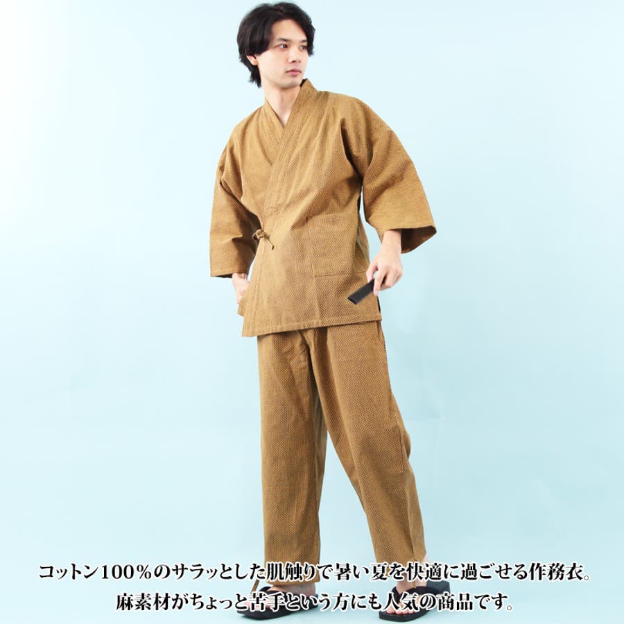 休日のゆとり感を演出してくれる 作務衣 さむえ 綿 和 作業着 のご紹介です。コットン 100% のサラッとした肌触りで暑い夏を快適に過ごせる コットン作務衣。麻 素材 がちょっと苦手...という方にも人気の商品です。動きやすく 作業がしやすい夏の カジュアルウェアに最適な 一枚です。花火大会 や お祭り に着ていくのも良く、夏の 粋 な ファッションとしてもオススメです。ルームウェア、ちょっとした外出にも重宝する上着 ズボンの セットアップ の 作務衣は暑い日を快適に乗り越えるためのマストアイテム。父の日や ギフト にも喜ばれる 作務衣 サムエ サムイ 和装 甚平 部屋着をお探しの方は是非チェックして下さい。