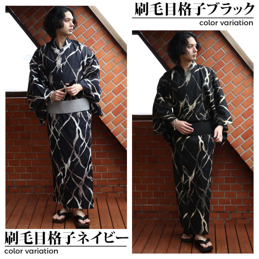 【刷毛目格子(紺)】浴衣 単品 浴衣