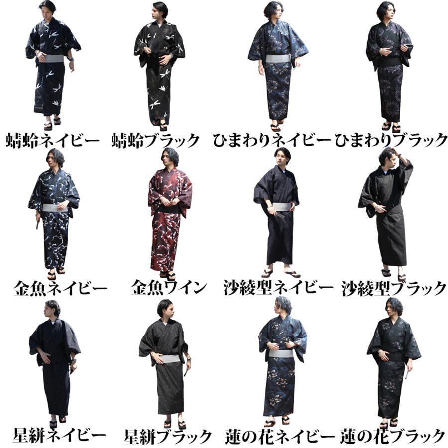 夏の風物詩 綿 本格派 浴衣 単品 仕立て上がり メンズ スタイリッシュ 浴衣 が登場。夏 花火大会 イベント に洗練された大人の浴衣として 綿 柄物 総柄 浴衣 がおすすめ。清涼感のある コットン のサラッとした肌触りに張りのある生地感が、夏の時期にピッタリ。 時代や流行に左右されない 伝統的で粋なデザインは長く着ていただけます。 マンネリ気味になりやすい浴衣 コーデ も ハット や ストール 履物 を取り入れるだけで、一気に ファッション性UP 。何枚でも欲しくなる ネイビー ブラック ベージュ ワイン ひまわり 蜻蛉 金魚 沙綾型 柄等 の 24タイプをご用意しました。レジャーシーン 海 夏のイベント にも合う 男性 浴衣 単品 をぜひチェックして下さい。※浴衣単品の商品となります。