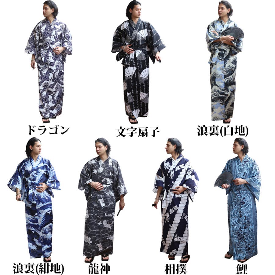夏花火大会イベントに洗練された大人の浴衣として日本製帯付き浴衣がおすすめ。清涼感のあるコットンのサラッとした肌触りに張りのある生地感が、夏の時期にピッタリ。個性的でスタイリッシュなデザインは、人と違うお洒落な浴衣を追求したい方におススメ。時代や流行に左右されない粋なデザインで長く着ていただける逸品です。何枚でも欲しくなるドラゴン、文字扇子、浪裏(白地)、浪裏(紺地)、龍神、相撲、鯉の7色をご用意。「使い勝手の良いのが欲しいけど普通の浴衣は退屈」と言う方にはもってこいの逸品です。
