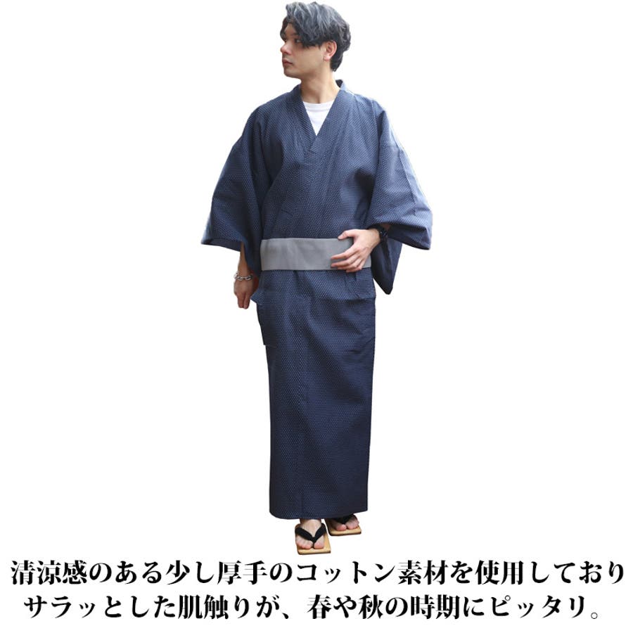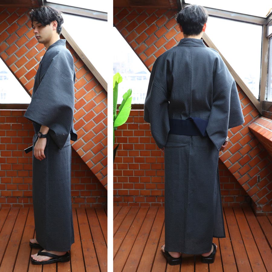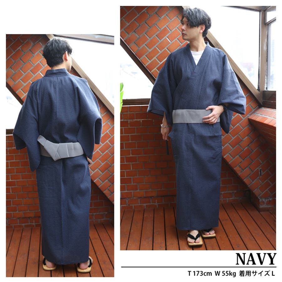 花火大会やお祭り ルームウェアにもおすすめ 綿 単品 仕立て上がり メンズ スタイリッシュ 刺子織り ドット 水玉 浴衣 が登場。花火大会 イベント に洗練された大人の浴衣として 刺し子織り 綿 総柄 モダン 浴衣 がおすすめ。清涼感のある 少し厚手の コットン素材を使用しており サラッとした肌触りが、春や秋の時期にピッタリ。刺し子(さしこ)の織り柄で表現することで、スタイリッシュな雰囲気と遊び心を表現しています。お洒落な浴衣を追求したい方におススメ。シンプルなのでどんな帯とも相性抜群です。「使い勝手の良いのが欲しいけど普通の浴衣は退屈」と言う方にはもってこいの逸品です。時代や流行に左右されない 粋なデザインで長く着ていただける逸品です。ドット 男性 浴衣 単品売り をぜひチェックして下さい。