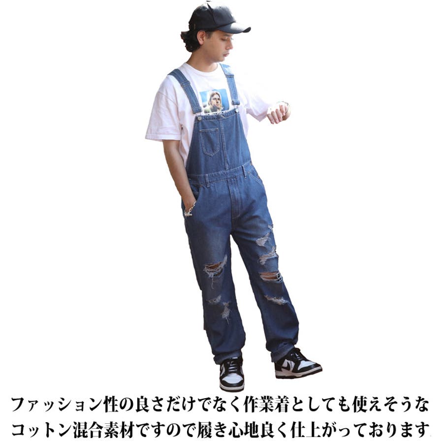 リラックス感のある クラッシュ加工 デニム オーバーオール つなぎ の 登場です。当店では通年通して人気の デニム生地 ダメージ加工 サロペット ツナギ です。ファッション性の良さだけでなく 作業着 としても使えそうな コットン 混合素材ですので履き心地が良く、ボトムス部分はゆったりとした ワイド なサイズ感により履き疲れしません。肩ひも調節が出来るタイプなので、好きな位置に合わせてジャストにもルーズにもご着用可能です。オールシーズンヘビロテのが出来るので、コレ1枚あれば大活躍してくれること間違いナシ。また、 太もも 膝 周りのダメージに当て布がないタイプなので、柄物のスパッツなどを重ね着した レイヤード スタイルにするのが今期のトレンドです。カラーは デニム と言えばこの色と言っても過言ではない 定番人気 ブルー インディゴ 全2色をご用意いたしました。デザイン性も完璧な デニム オーバーオール コットン つなぎ パンツ をこの機会にぜひチェックして下さい。