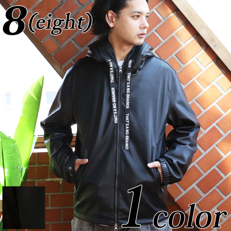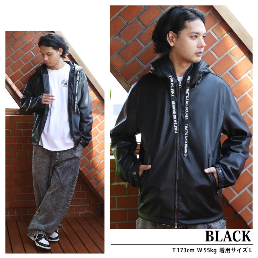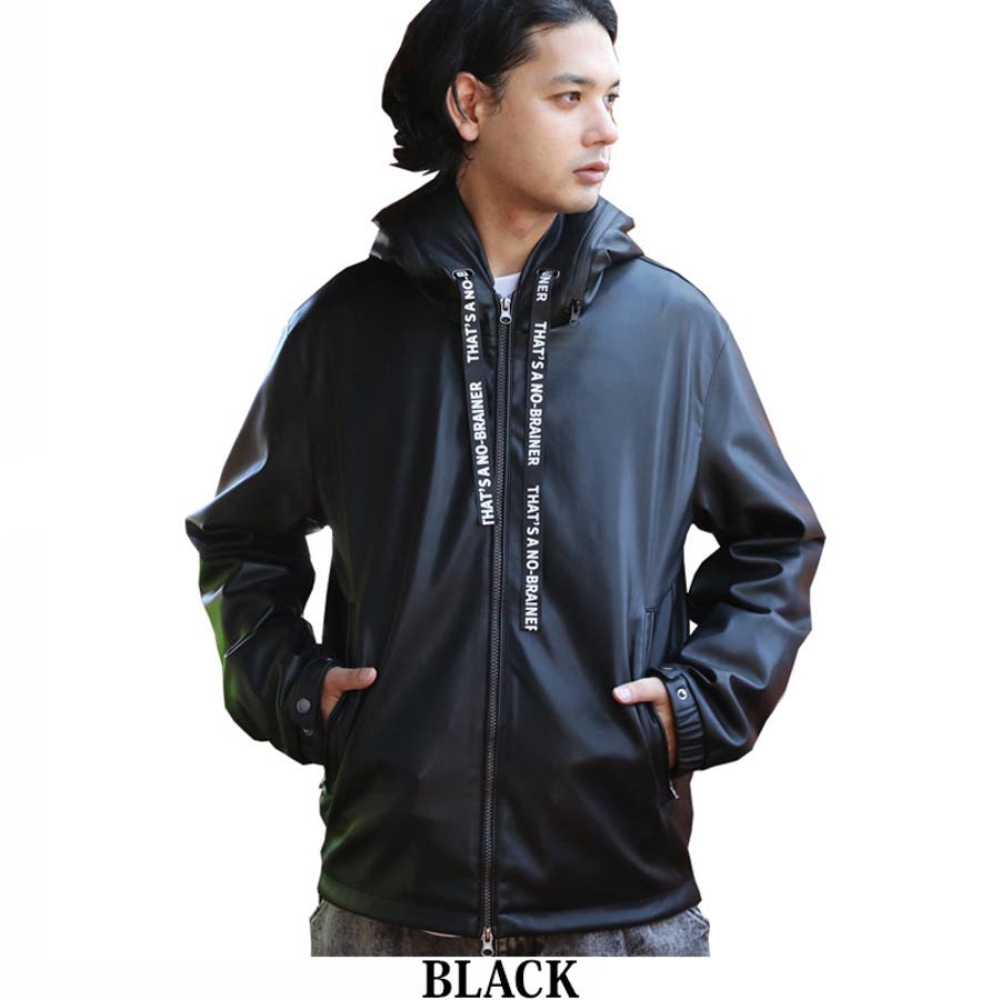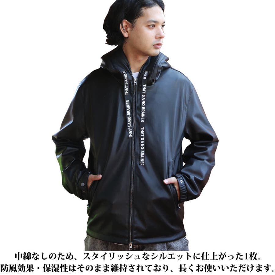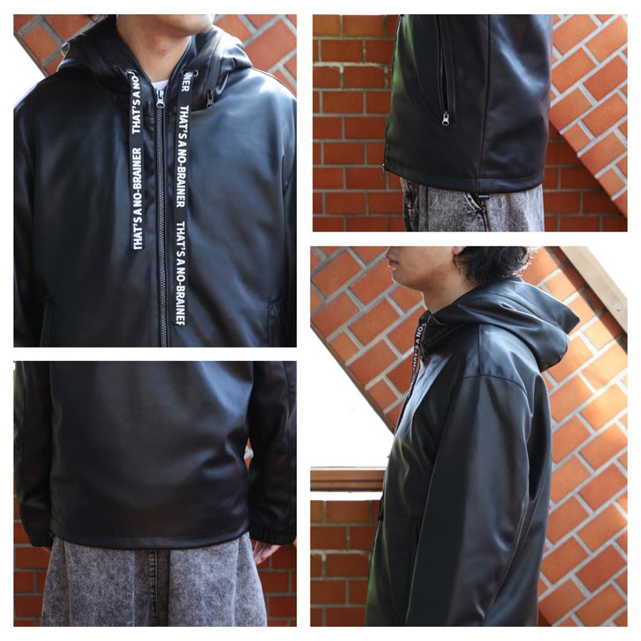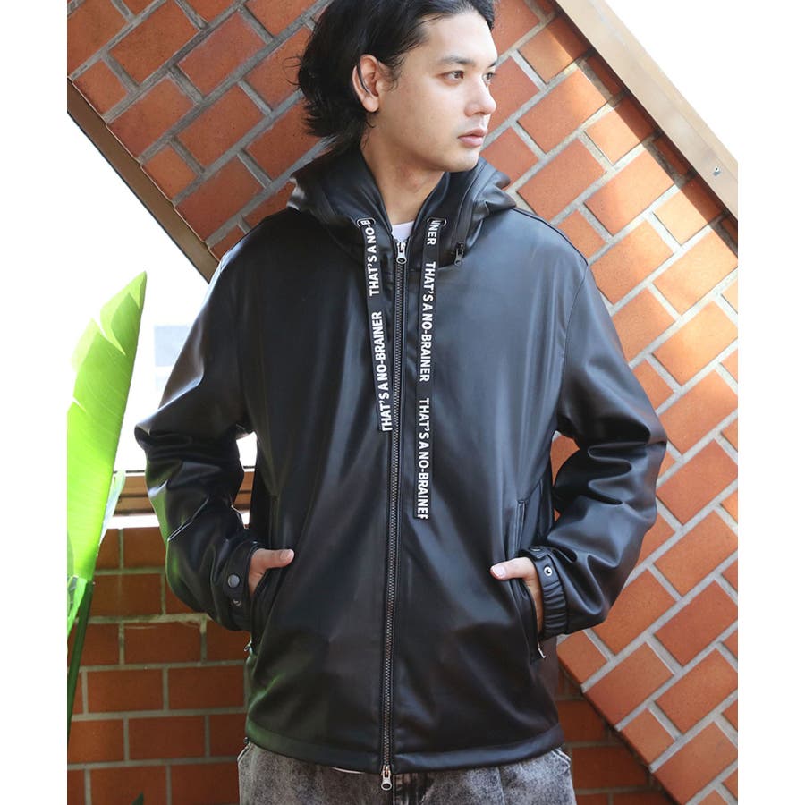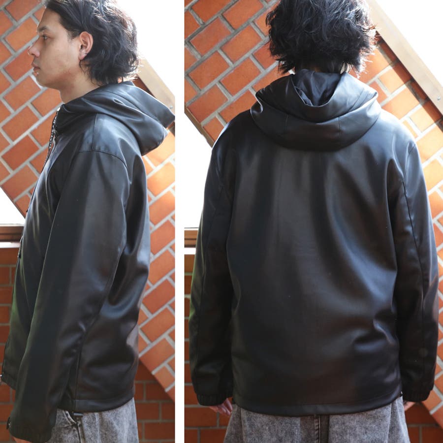 ストリートコーデに大人気なフードブルゾンがイミテーションレザーで登場。中綿なしのため、スタイリッシュなシルエットに仕上がった1枚。防風効果・保湿性はそのまま維持されており、秋~冬にかけ長くお使いいただけます。表面は柔らかい合成皮革になっており、裏地付きでサラッと羽織りやすいです。どんなボトムスにも合わせやすく、ワイドパンツやスキニーとの相性も抜群です。デニムやカーゴパンツを合わせたストリートスタイルがおすすめ。フード周りがファスナーになっており、開けると太字のロゴが目を惹きます。コーディネートやその日の気分に合わせて2通りの着用が楽しめます。また、フードの紐部分は太目のロゴが入っているため、それだけでもインパクトのあるデザインになっています。裾部分にはドローコードがついており、様々なシルエットに調節可能です。メンズだけでなく、レディース、ペアでも着られるユニセックスデザインです。