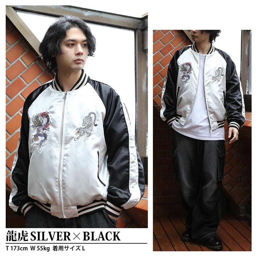 ストリート・アメカジスタイルにおすすめ『スカジャン』のご紹介です。大人気刺繍スカジャンがカラー・刺繍・デザインをバージョンアップし、バリエーション豊富に新登場。光沢のあるサテン生地を採用し、インパクト大の和柄刺繍を丁寧に施した高級感あふれるアイテムです。スカジャンならではの伝統的な生地で、サラッと滑らかで肌触りも抜群。袖通しがよく、程よい厚みなので重ね着がしやすく、スタイルを問わず気軽に羽織ることができる一着です。メンズはもちろんレディースでも、ゆるい着こなしが楽しめるユニセックスアイテムです。3つのサイズから選択可能なので、ジャストサイズで着たりトレンドのオーバーサイズで着たりと選ぶサイズによってコーデの幅が広がります。お土産やプレゼントにもおすすめです。デニムやチノパンはもちろんワイドパンツやテーパードパンツなど、様々なアイテムと相性抜群。キレイめなスタイルにわざと外しでサッとこちらのスカジャンを羽織るのもおすすめです。女性の方は、パンツスタイルはもちろんワンピースやロングスカートなどに合わせるのもおすすめのスタイルです。