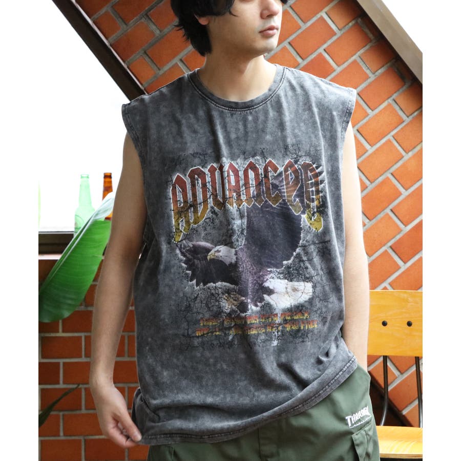 グランジ加工ロックタンクトップ ヴィンテージ ノースリーブ