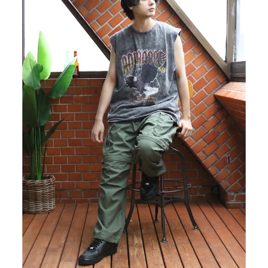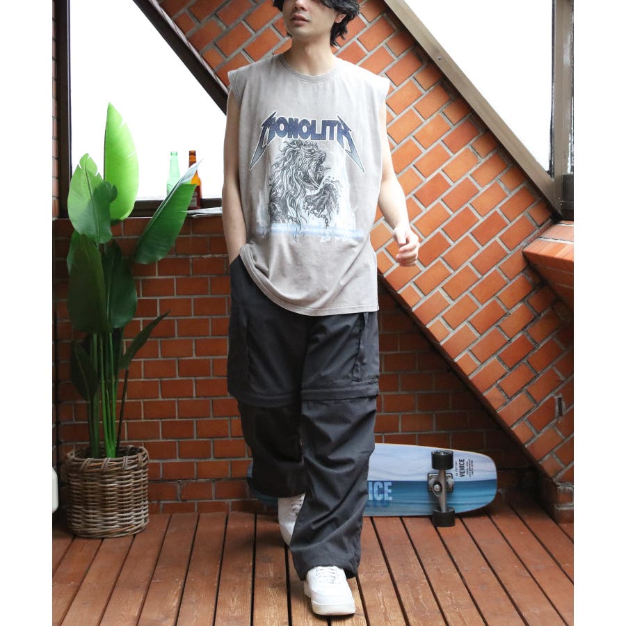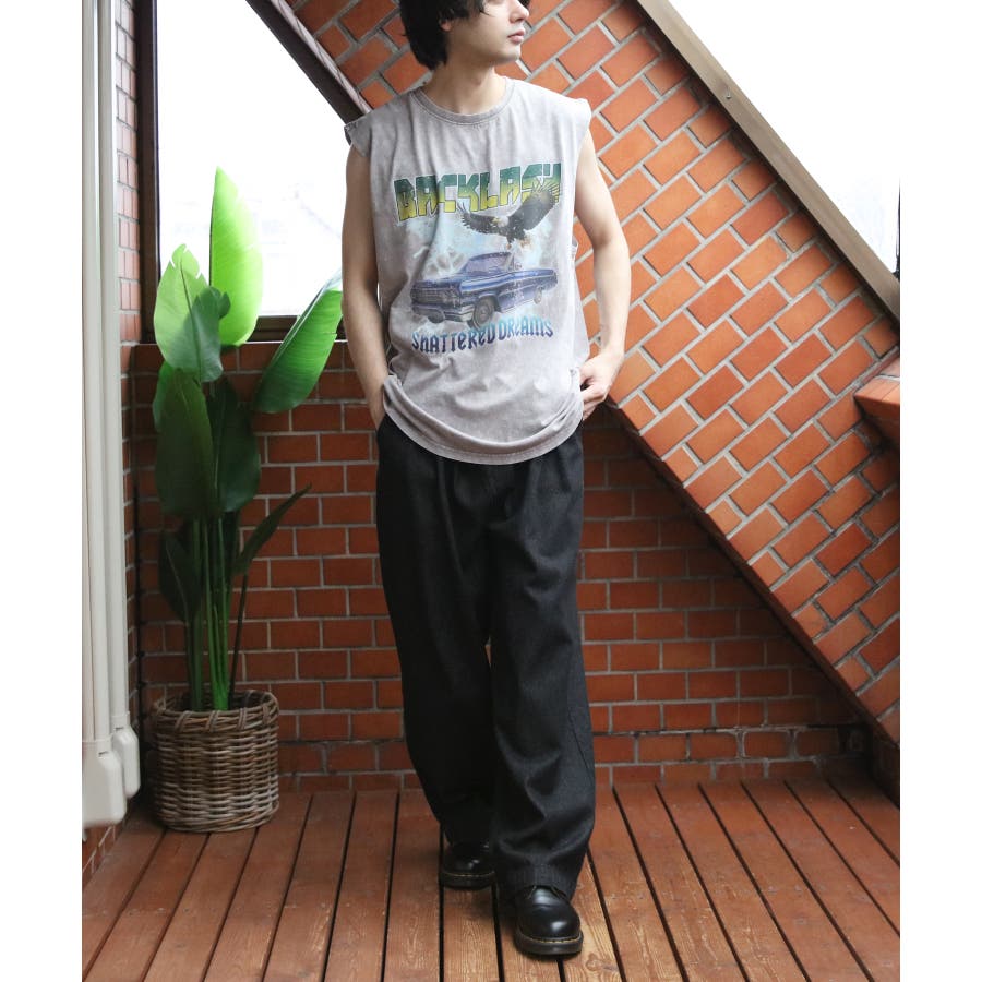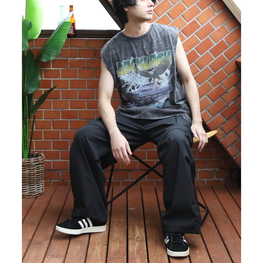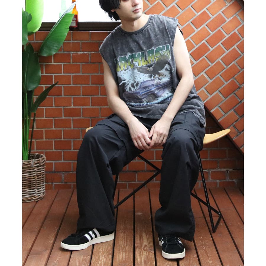 ストリート、古着MIXスタイルにおすすめ『グランジ加工ロックタンクトップ』のご紹介です。昨年人気を博した古着バントT風ノースリーブがバージョンアップし、再登場。ヴィンテージ感あふれる独特の風合いと、ラフでクールなデザインが特徴です。ロックでインパクトのあるデザインに、生地表面に古着っぽく加工を施し、着るだけでトレンド感のあるスタイルが完成します。どこか懐かしく、個性的なスタイルを演出できる一枚です。通気性が良く、軽やかな着心地なので、夏のコーディネートにぴったりです。ライブやフェス、カジュアルなお出かけにもオススメ。デニムとの相性はもちろん、カーゴパンツに合わせたストリートスタイルや、ショート丈のパンツやスカートとも合わせやすく幅広く着こなしができます。