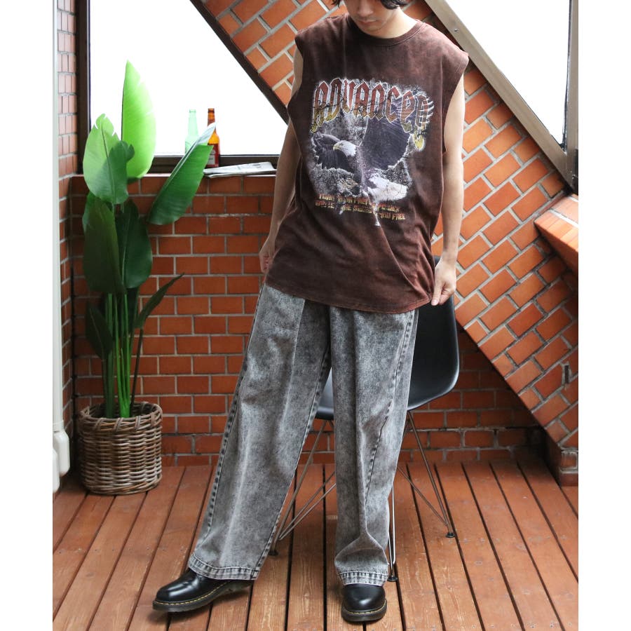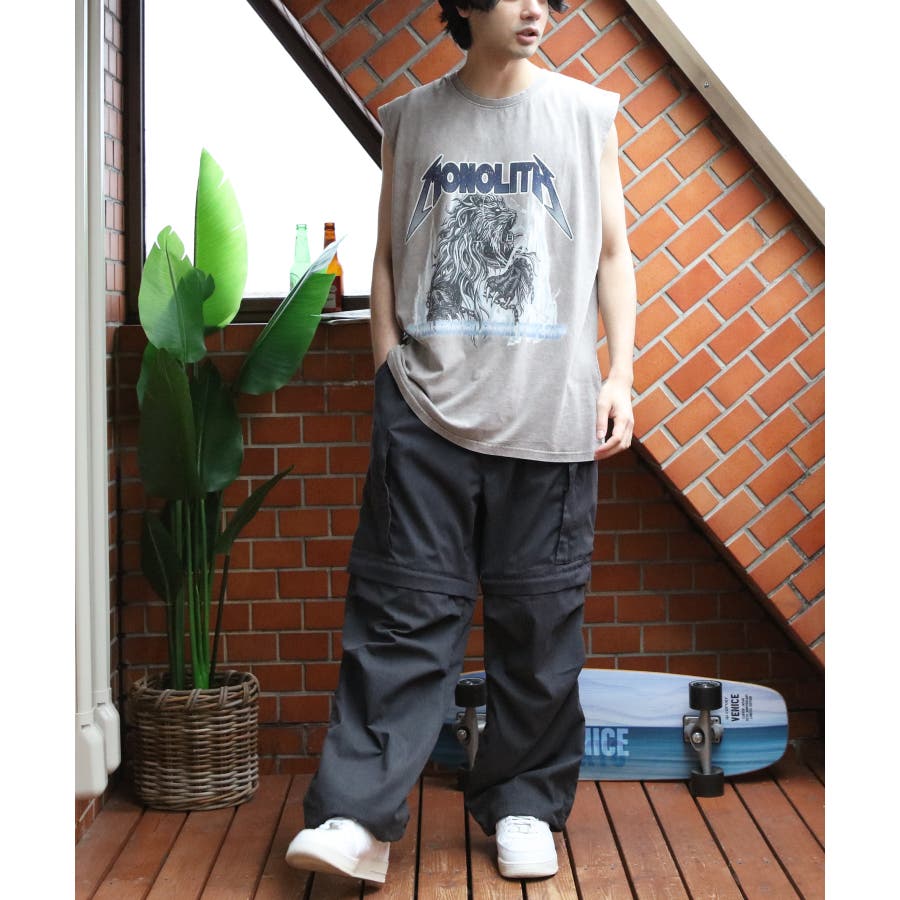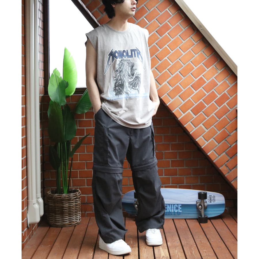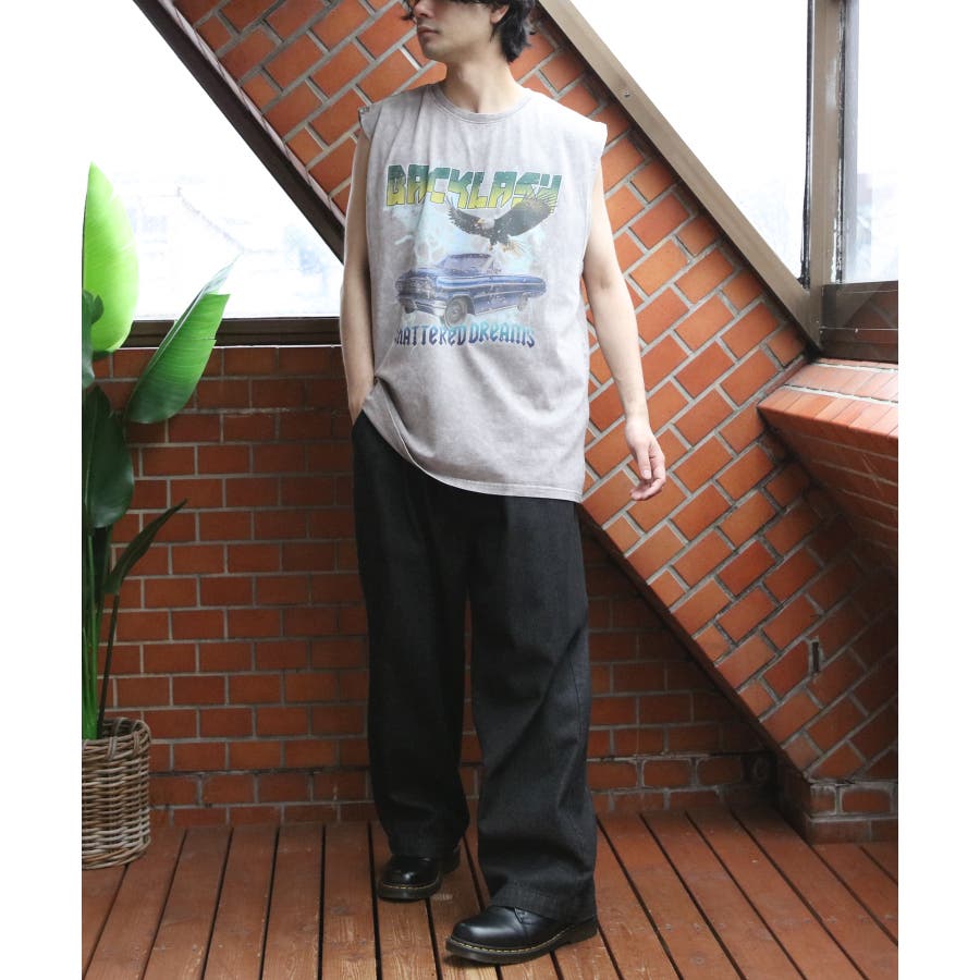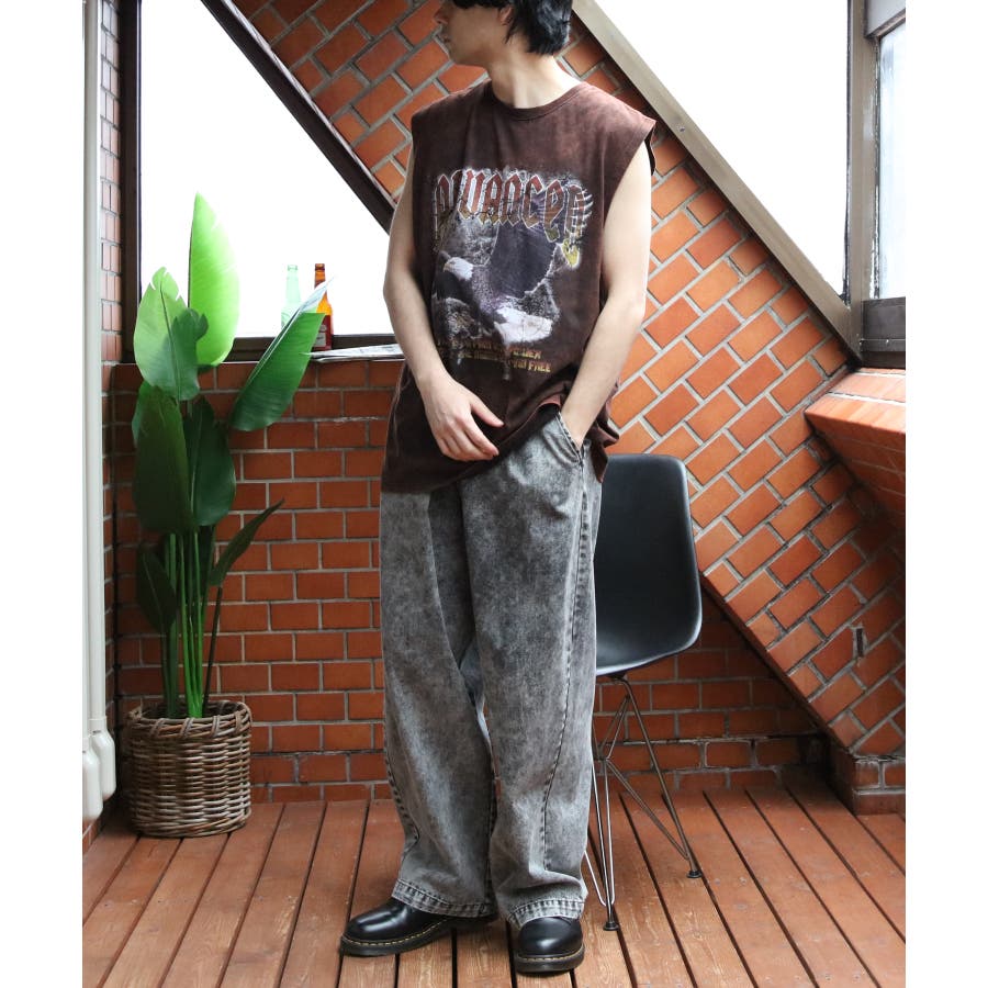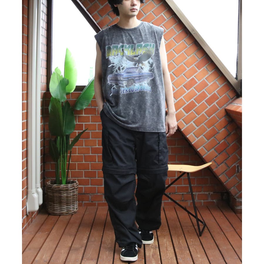 ストリート、古着MIXスタイルにおすすめ『グランジ加工ロックタンクトップ』のご紹介です。昨年人気を博した古着バントT風ノースリーブがバージョンアップし、再登場。ヴィンテージ感あふれる独特の風合いと、ラフでクールなデザインが特徴です。ロックでインパクトのあるデザインに、生地表面に古着っぽく加工を施し、着るだけでトレンド感のあるスタイルが完成します。どこか懐かしく、個性的なスタイルを演出できる一枚です。通気性が良く、軽やかな着心地なので、夏のコーディネートにぴったりです。ライブやフェス、カジュアルなお出かけにもオススメ。デニムとの相性はもちろん、カーゴパンツに合わせたストリートスタイルや、ショート丈のパンツやスカートとも合わせやすく幅広く着こなしができます。