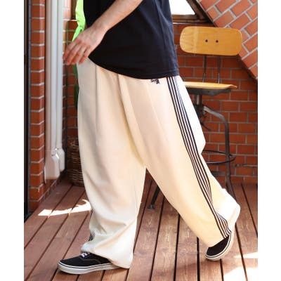 ハチ刺繍入り バルーンパンツ メンズ トラックパンツ サイド ライン
