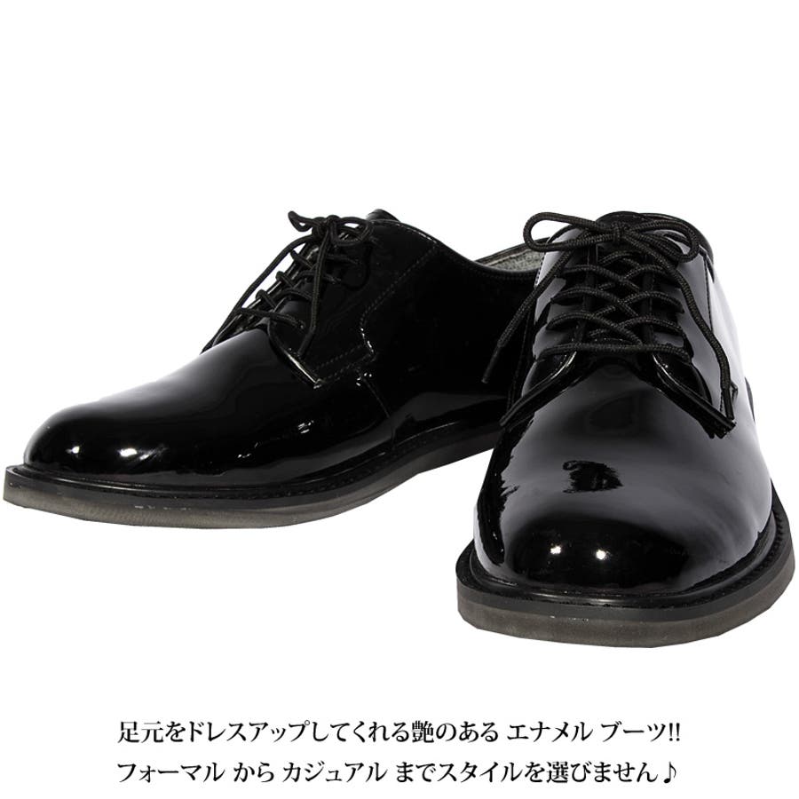 ミリタリー系 アメカジ系 におすすめ! エナメル ミリタリーブーツ ショートブーツ のご紹介です♪足元をドレスアップしてくれる艶のあるエナメル 素材の高級感溢れる レースアップ ローファー シューズ が入荷しました★ベーシックな ローカット ブーツですが、都会的な洗練された タイトなフォルムで足に馴染み、履き心地も抜群なスーパークールな一足◎スタイルを選ばないシンプルなデザインなので ビジネス や 披露宴 などのフォーマル なシーンから カジュアル スタイルまで大活躍間違いなし!! デニム チノパン カーゴパンツなど選ばず何にでも相性の良く合わせられます♪カラーはシックな ブラック をご用意◎今期足元からオシャレに決める エナメルミリタリーブーツ コンバット をこの機会にぜひチェックしてみてください!!