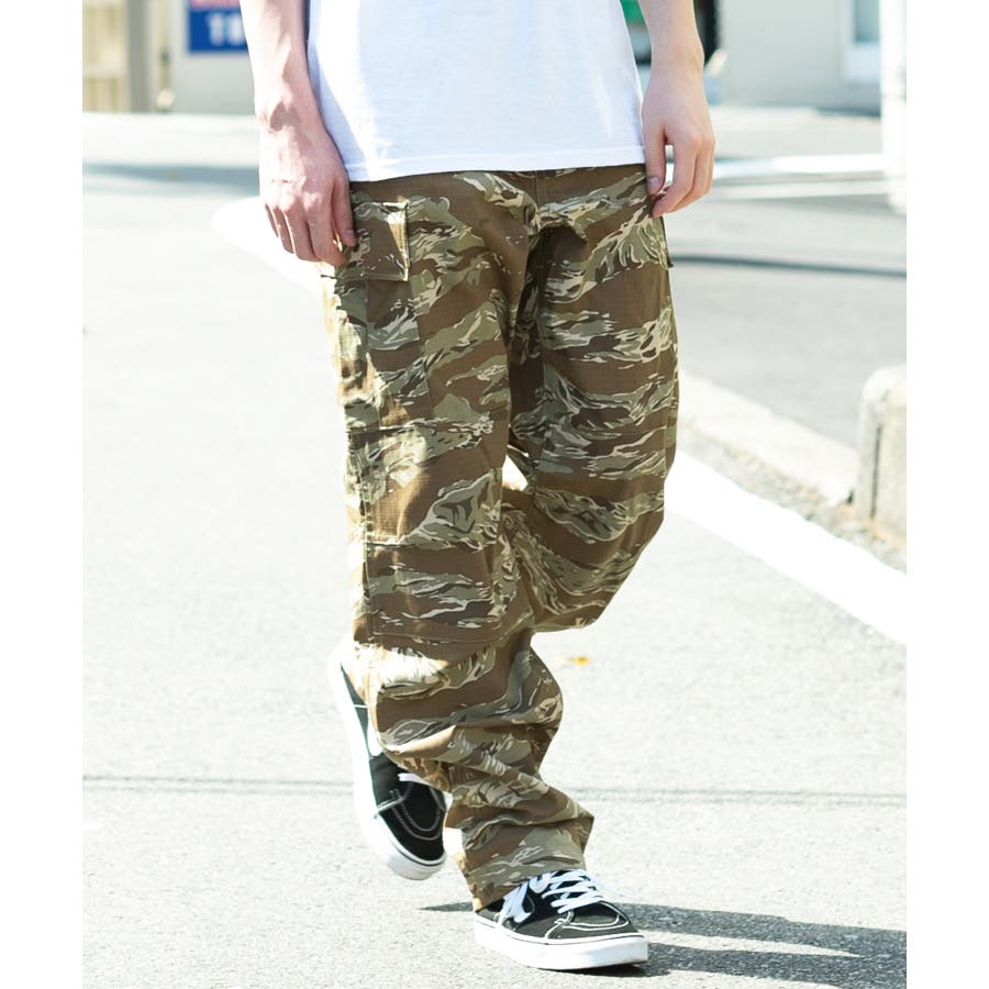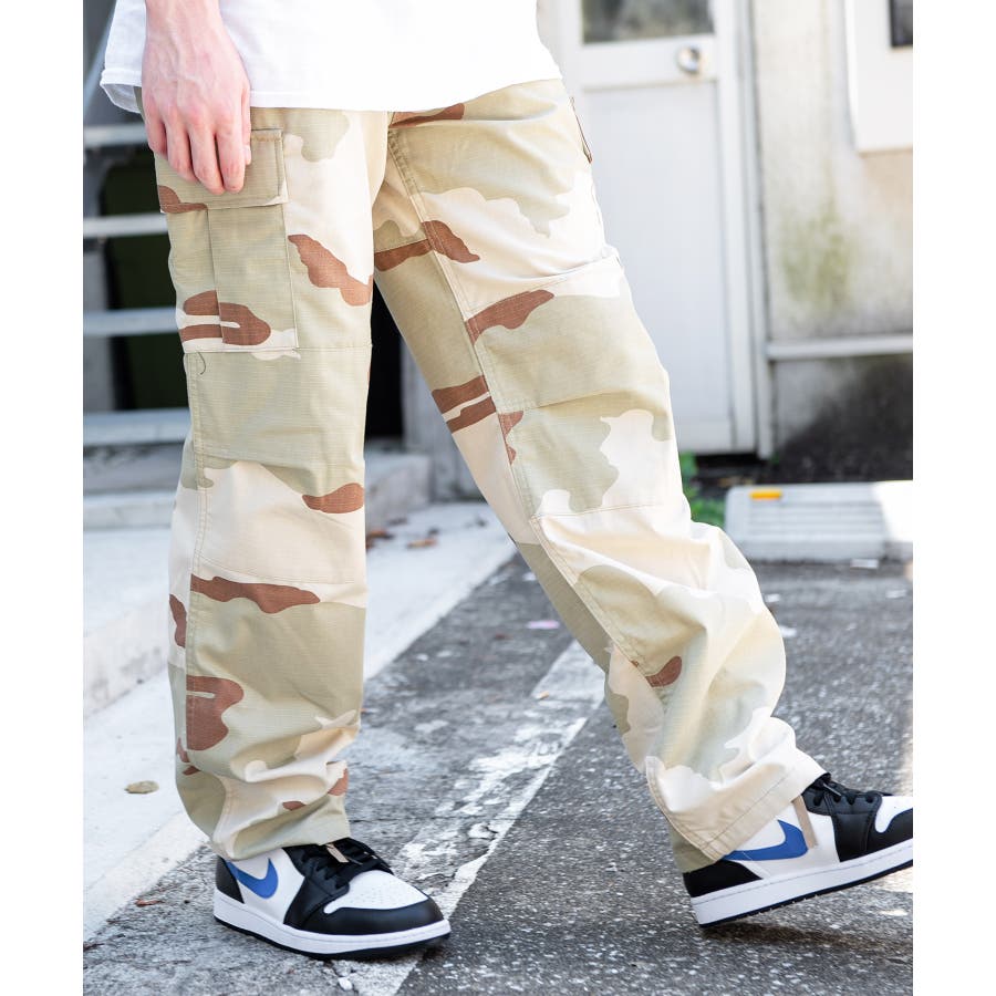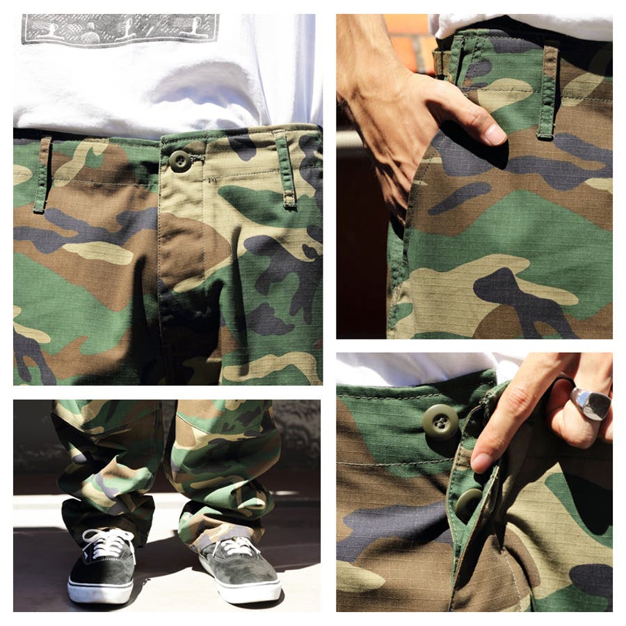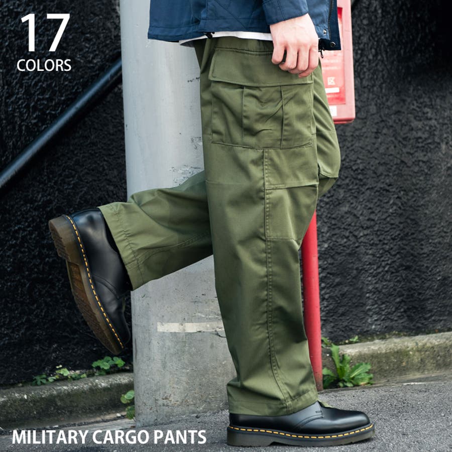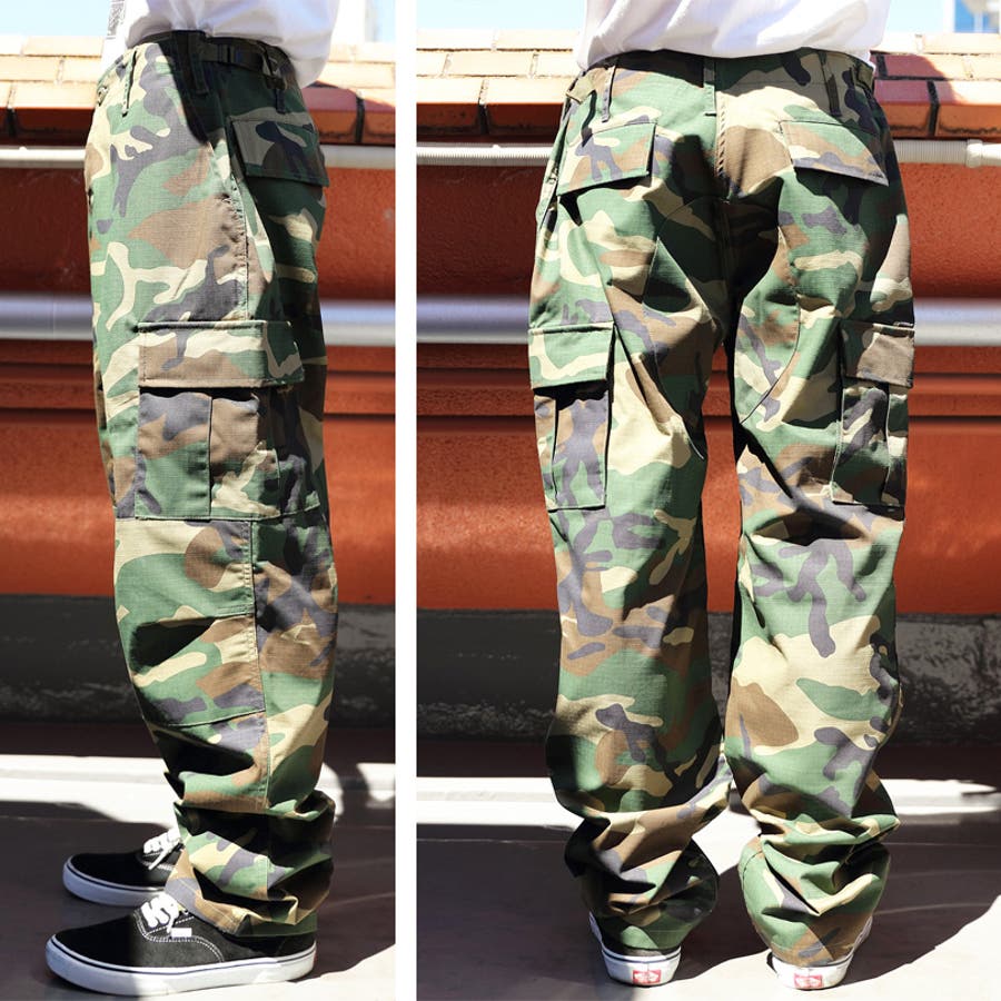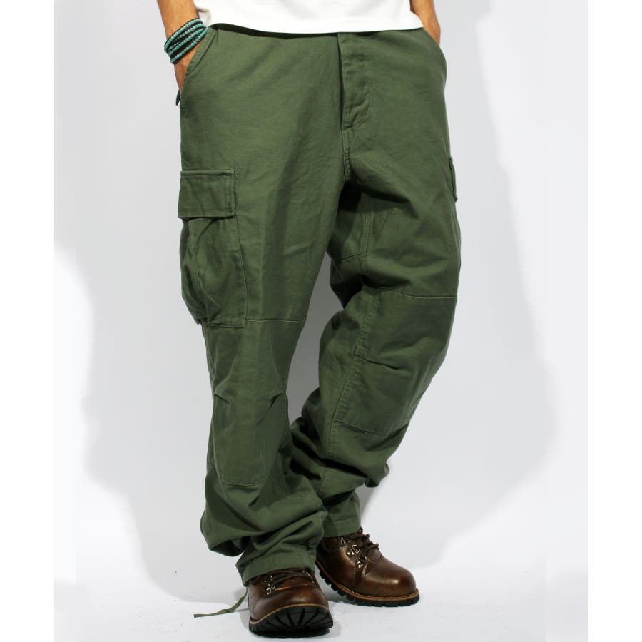 ミリタリー系 アメカジ系 アウトドア系 スタイルにおすすめな BDU カーゴパンツ ワイド ミリタリーパンツ。 BDU とは BATTLE DRESS UNIFORM の略称で、カーゴパンツの基本はこちらの BDUパンツ が元祖のデザインとされています。コチラは 米軍規格 ミルスペック を忠実に再現し、ベーシックでオーソドックスな 6ポケット カーゴ パンツ となります。サイドの大きめポケットと、幅広なシルエットがワイルドで男らしい雰囲気で、 ゆるカジ などラフなコーディネートにおすすめ。スニーカー はもちろん ブーツ と合わせてもオシャレに決まり、様々なファッションを楽しめる カーゴパンツ に仕上がりました。丈夫で高品質な コットン 混合素材(カラーによって異なる)を使用しておりますので、お気に入りのヘビロテボトムスになること間違いなし。デイリーユース から サバイバルゲーム や トレッキング 等の アウトドア スタイルまで幅広くご使用頂けます。カラーは今期大流行の ウッドランド カモフラ柄 など 定番人気 豊富な全17色をご用意しております。