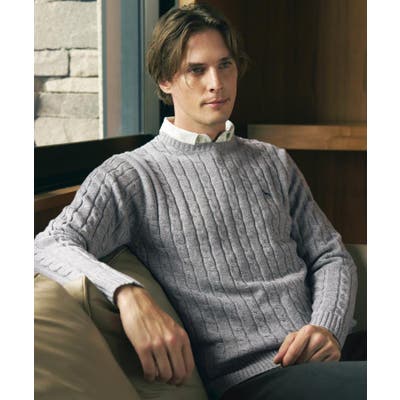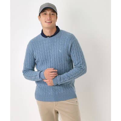 このクルーネックのケーブルニットプルオーバーは、トラッドスタイルの定番として、シンプルながらも洗練された印象を与えます。
