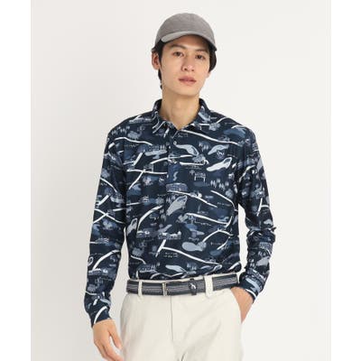 コースマップ柄を総柄で取り入れた長袖ポロシャツは、個性を引き立たせるデザインが秀逸です。