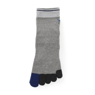 シンプルな無地デザインにトリコロールカラーがアクセントを加えた、5本指のショートソックスです。